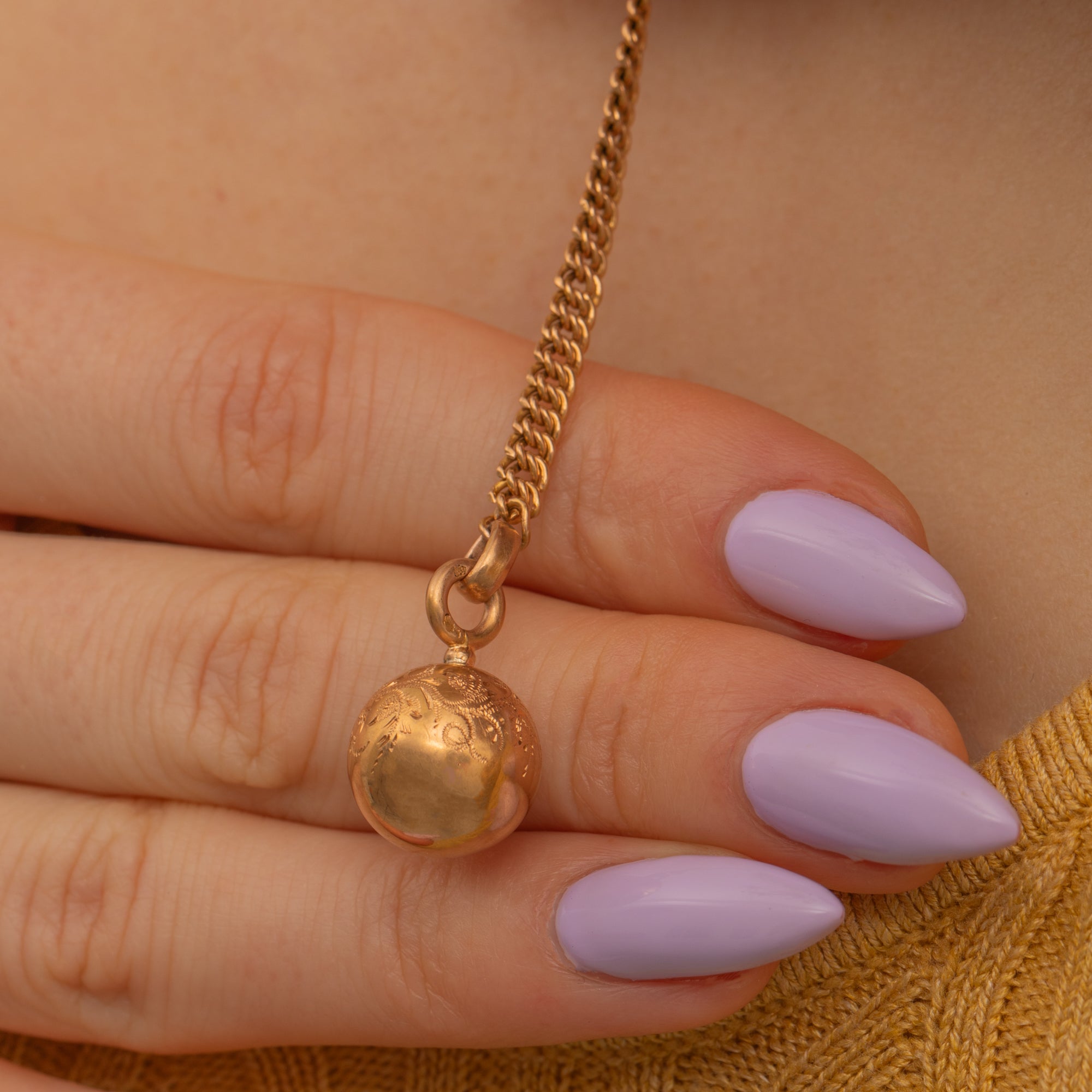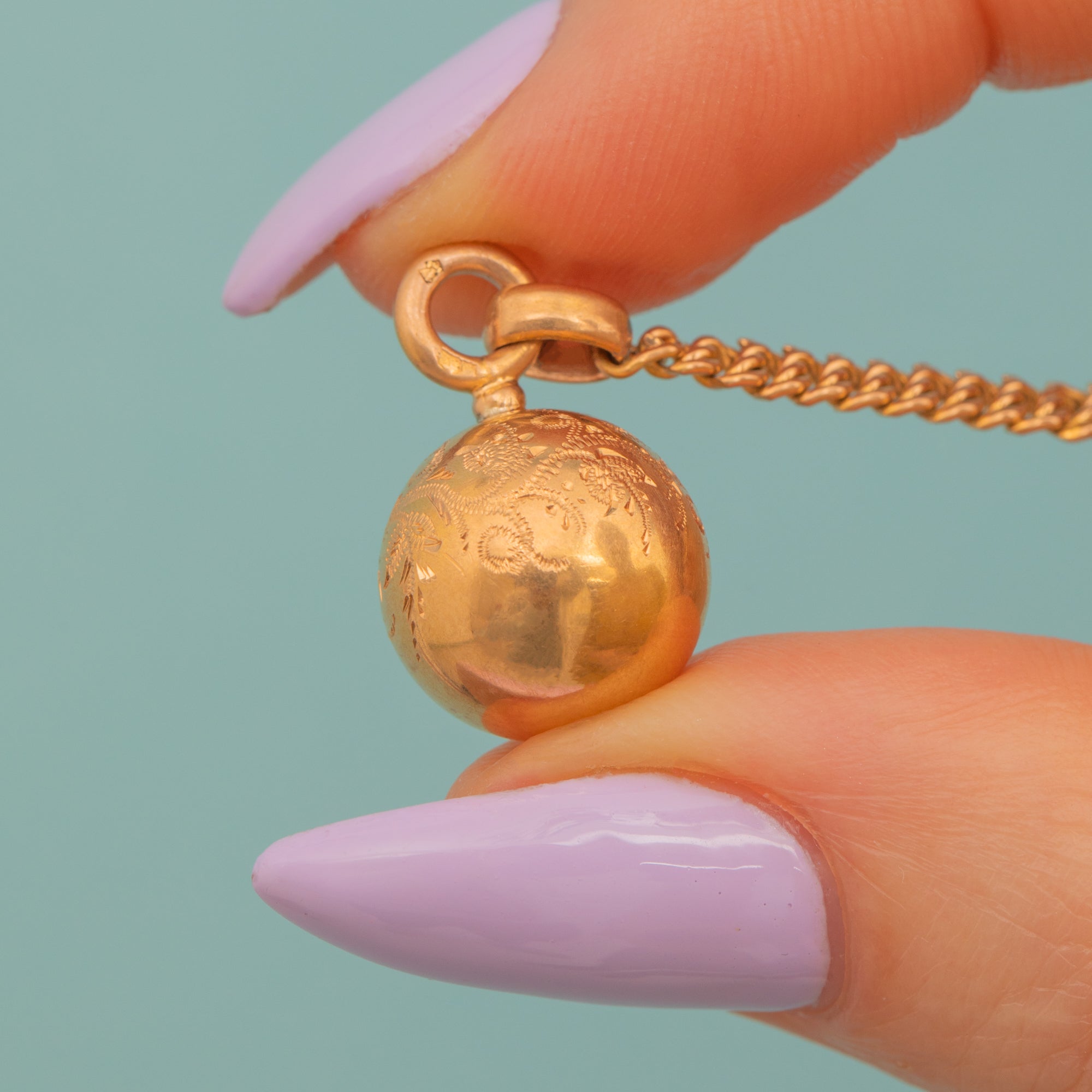 EXCELLENT. With very little to report, this antique French 18ct Gold engraved orb pendant is in pristine condition with the most lavishly saturated tone and no scratches or scuffs, despite being over 100 years old!