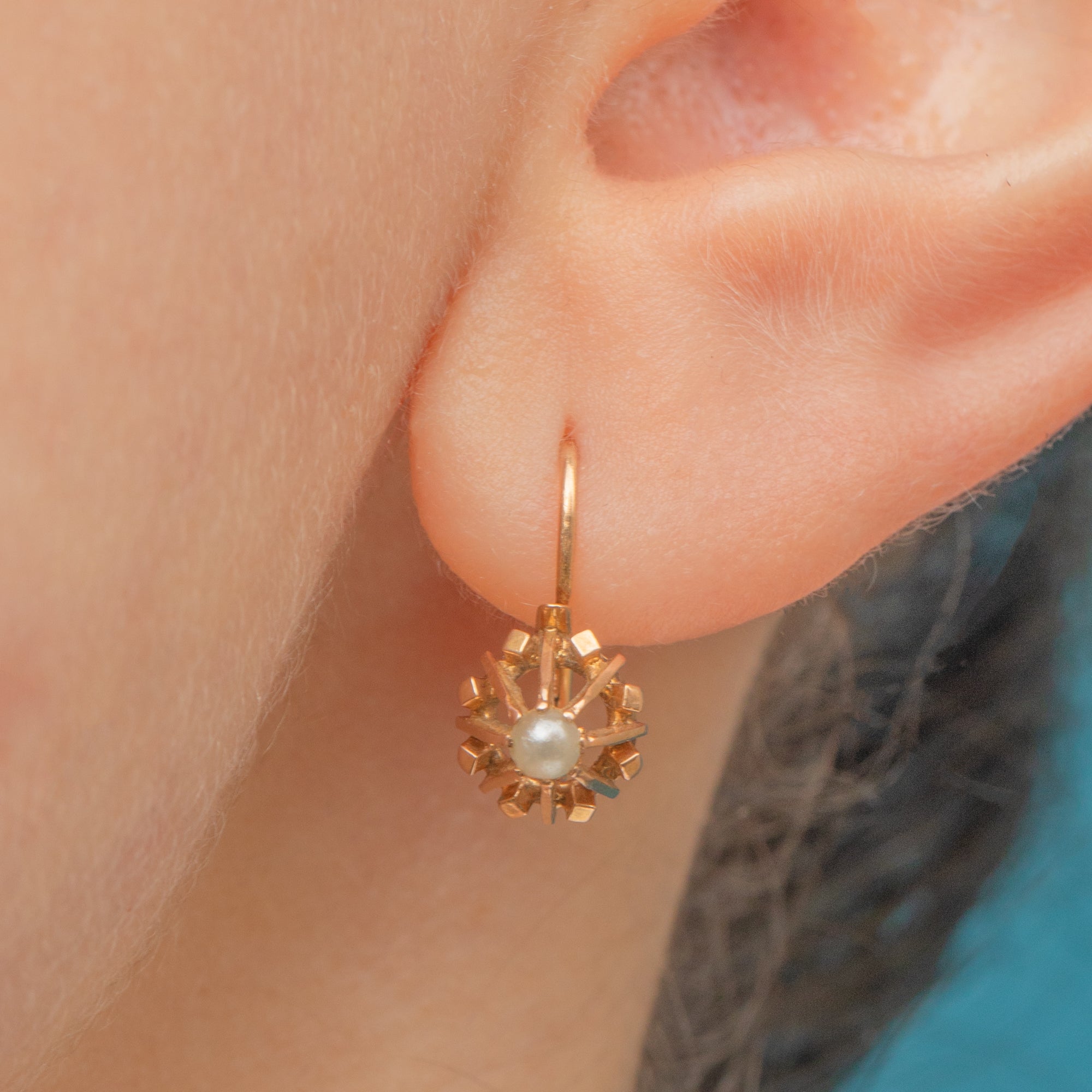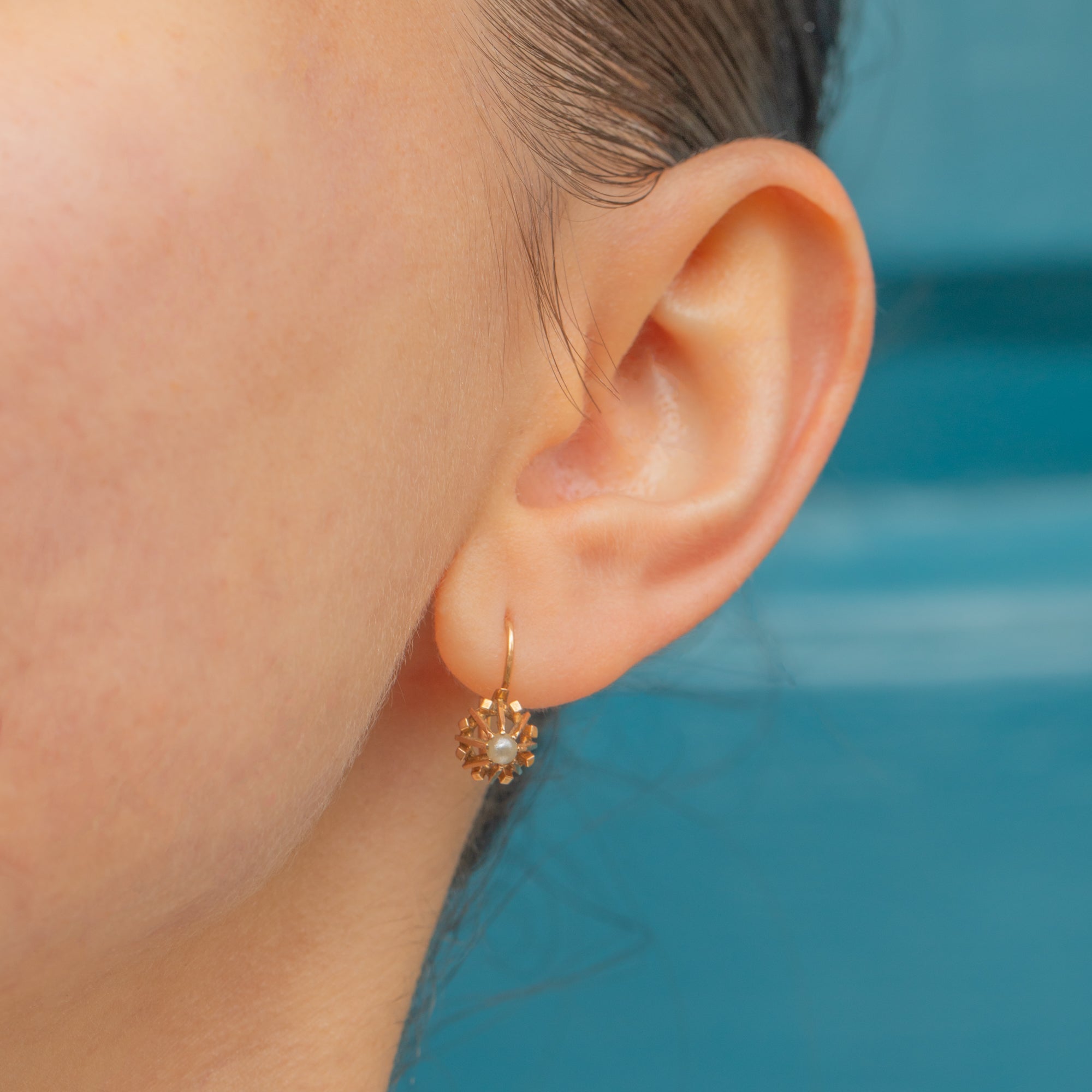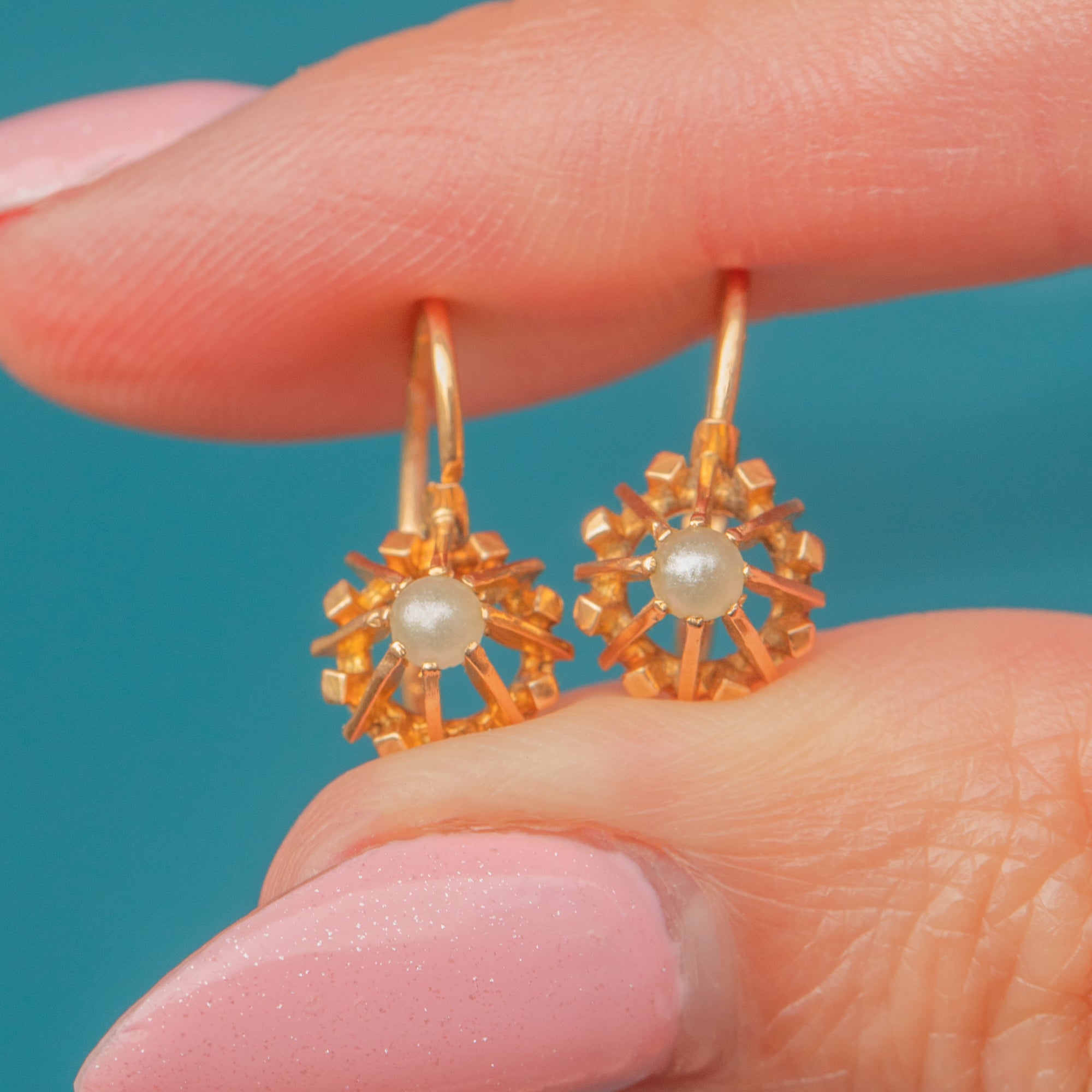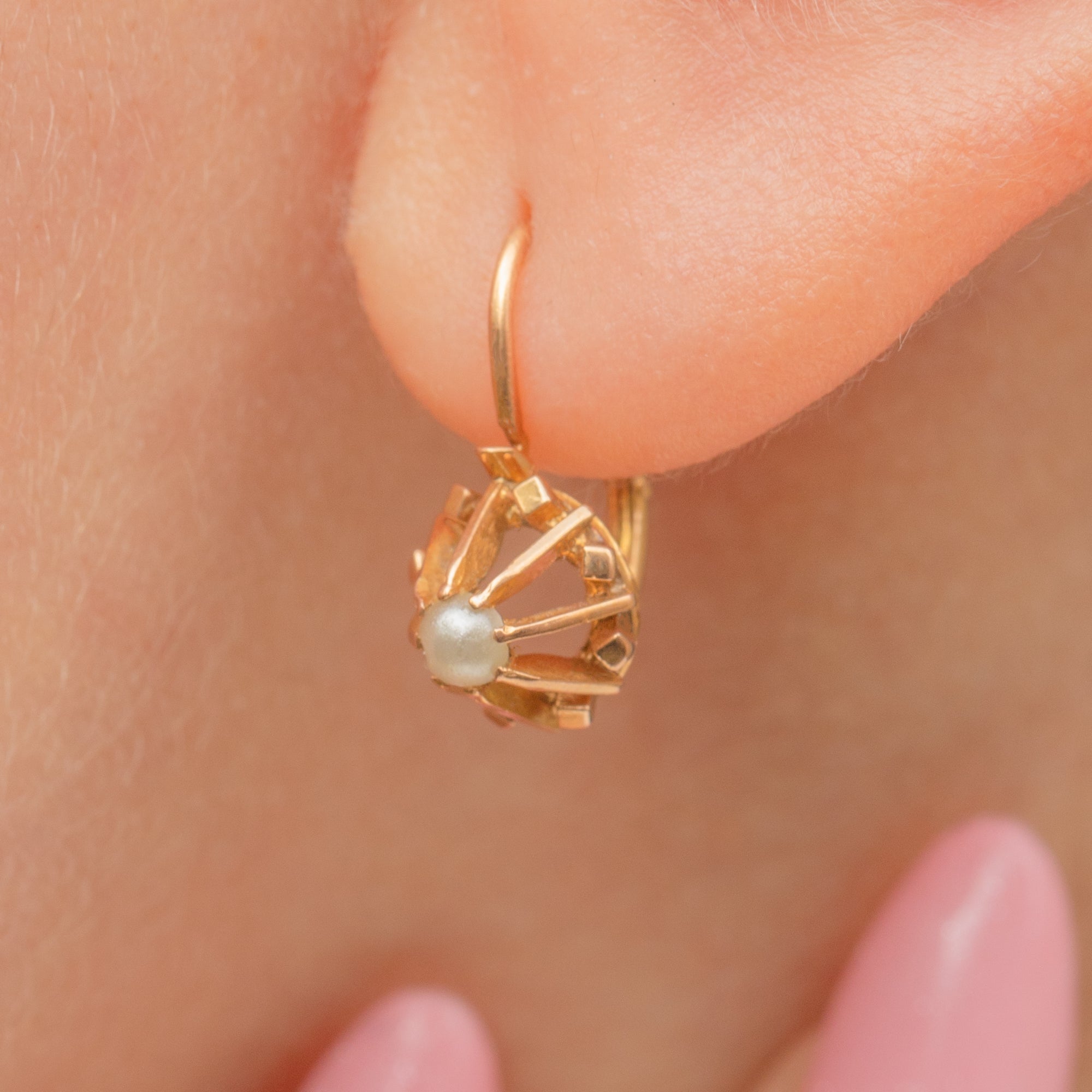 Antique French 18ct Gold Pearl Dormeuse Earrings