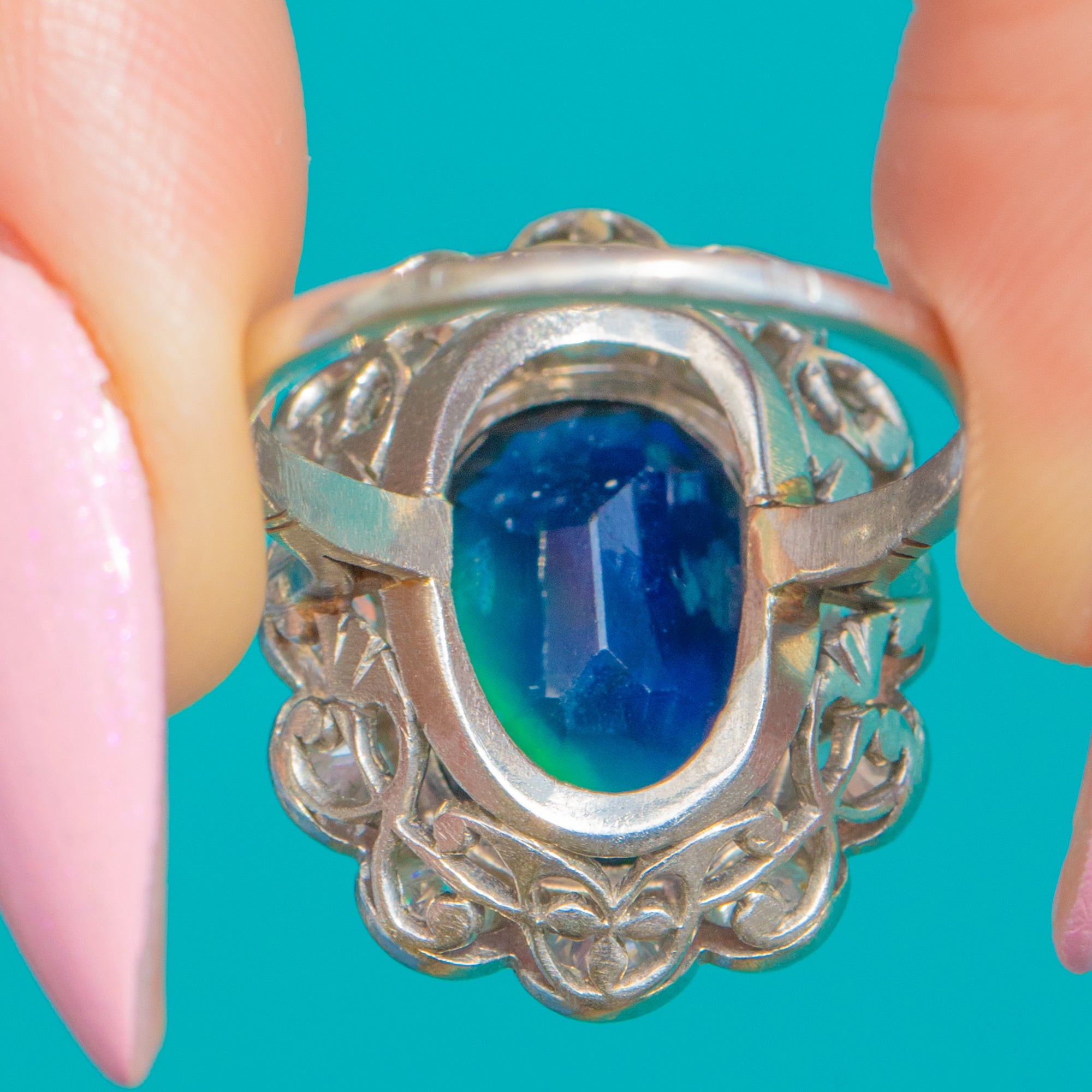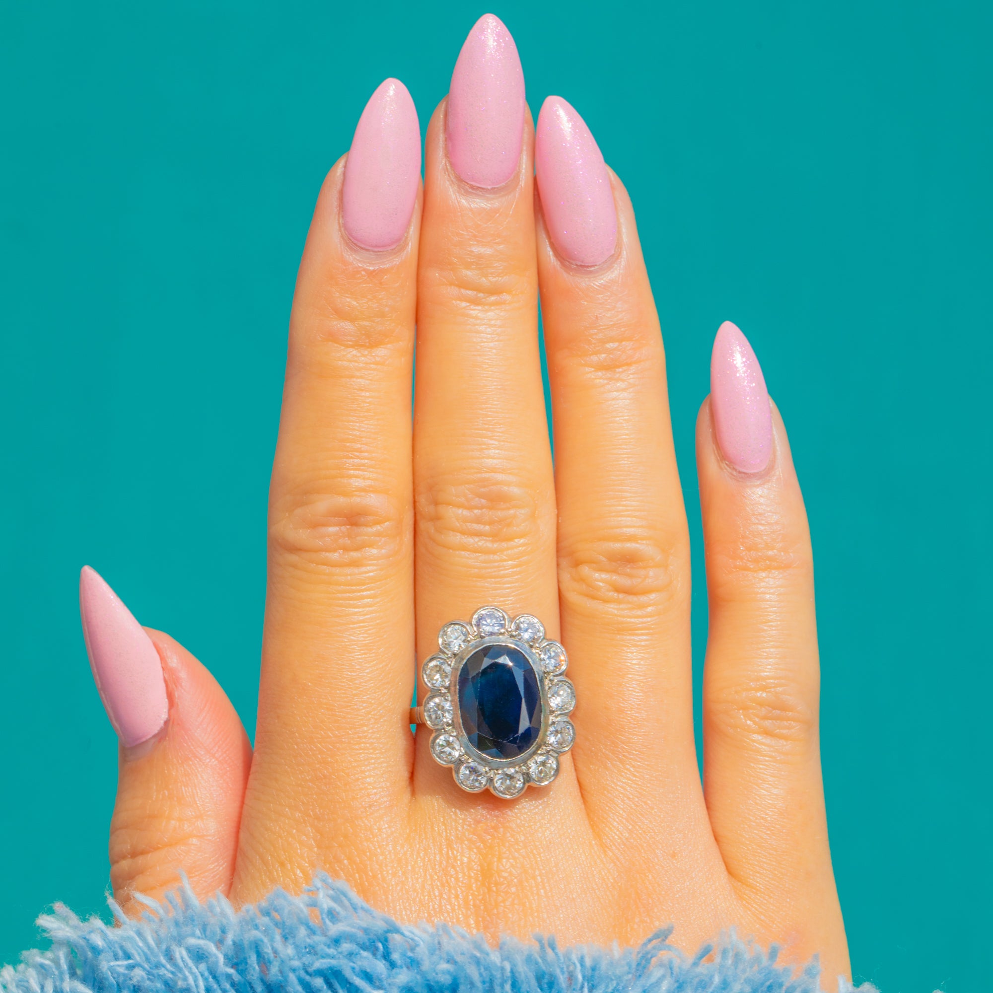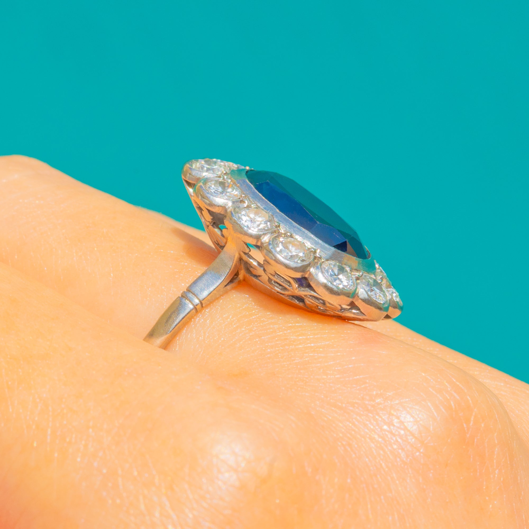 アンティーク フレンチ Art Deco サファイア ダイヤモンド クラスター エンゲージメントリング 5.25ct ナチュラルサファイア