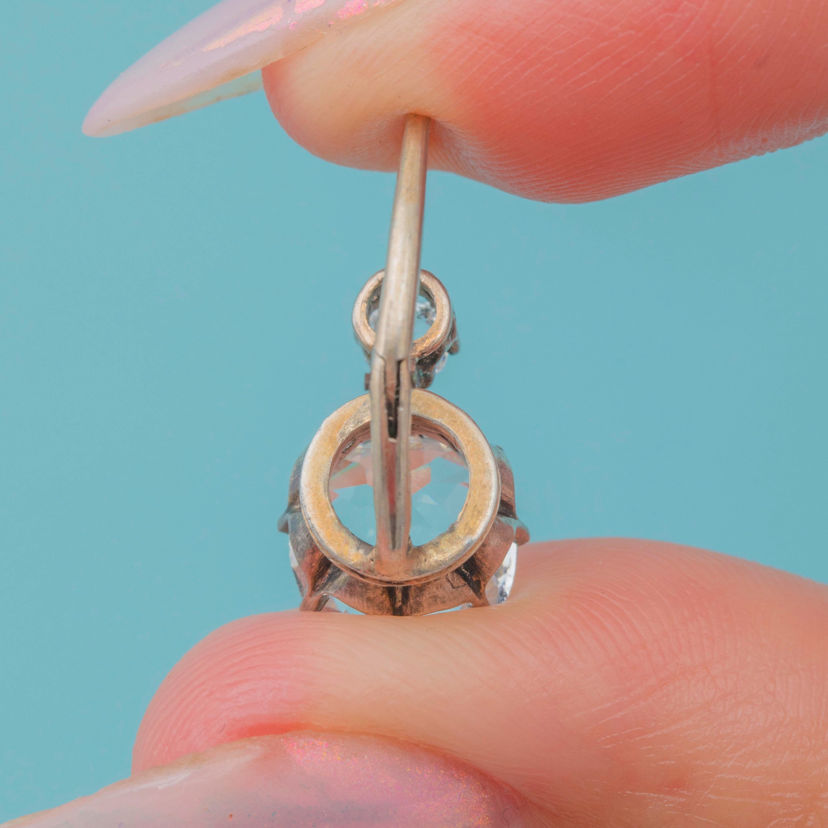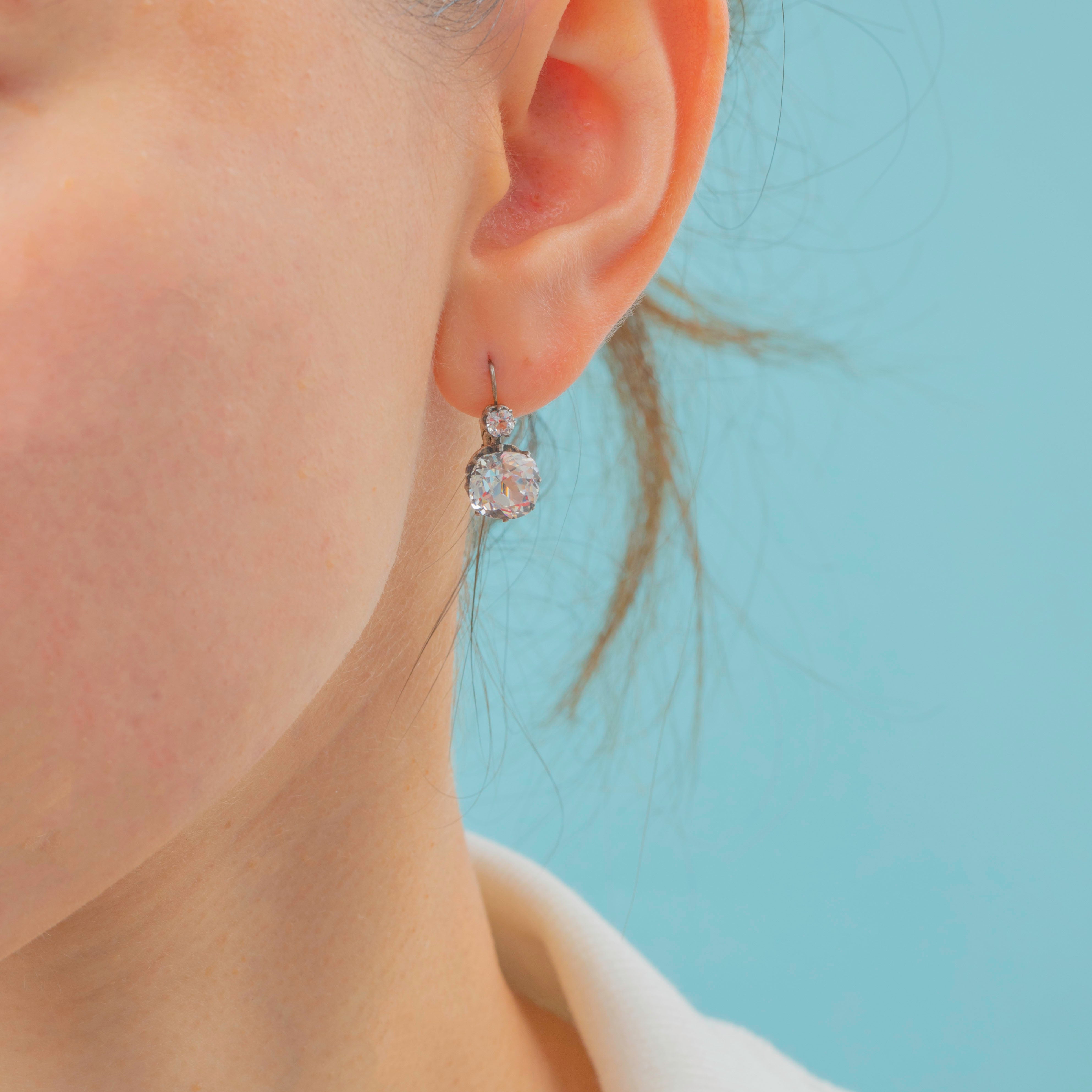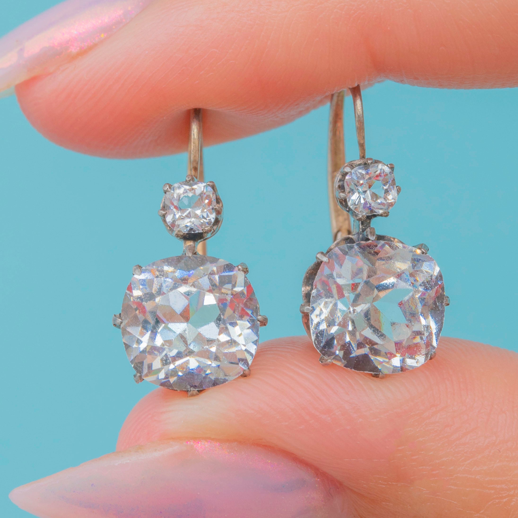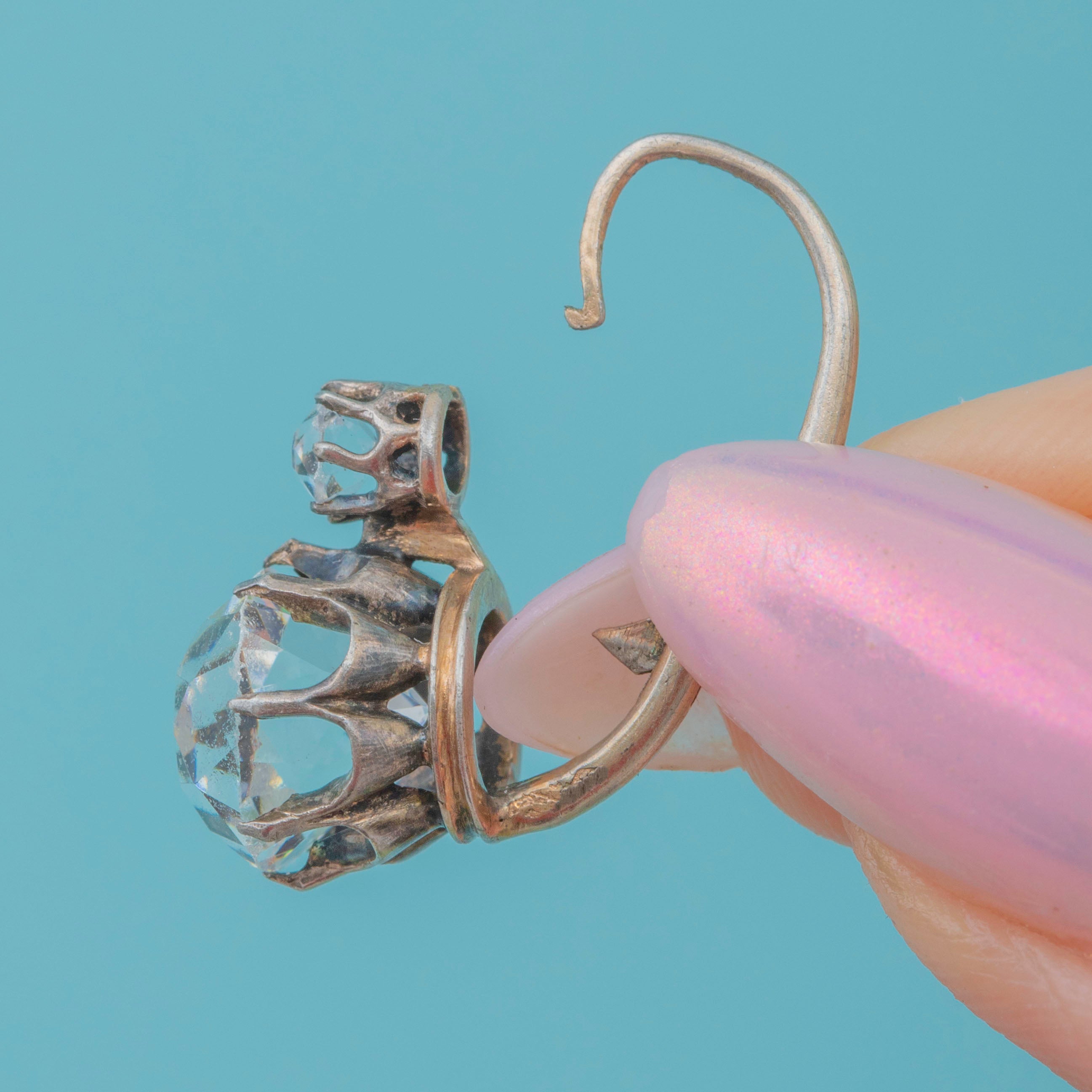 These French Victorian Dormeuse earrings are just a delightful pair! Created from Silver and inlaid with scintillating Diamond Paste, we estimate that these beauties were created in France during the midst of the Belle Époque period!