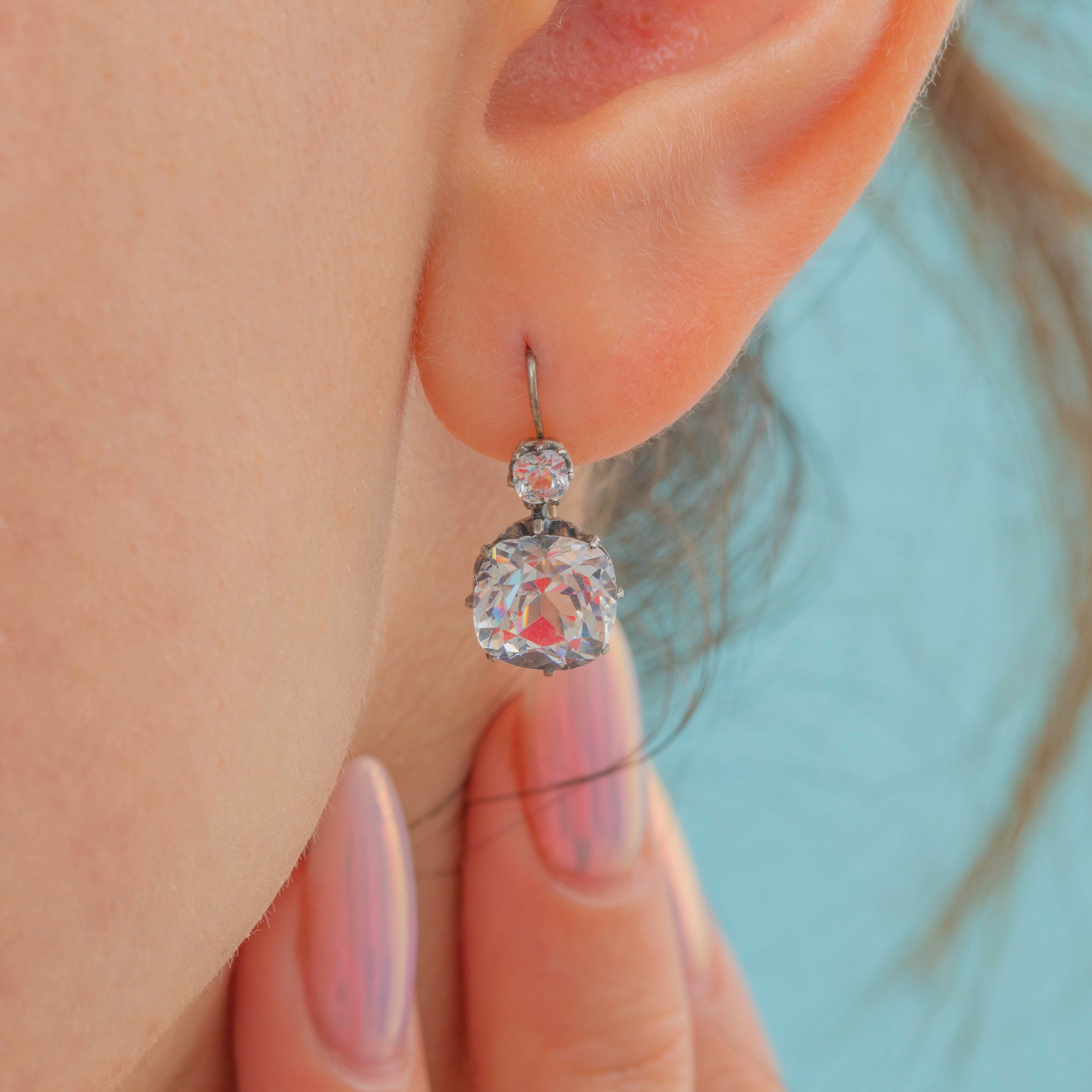 EXCELLENT: These lovely Paste dormeuse earrings are in gorgeous condition for their age. The Silver is bright with no dings or damage to note. The White Paste is all securely set, free from chips or scuffs. They're ready to be loved for years to come!
