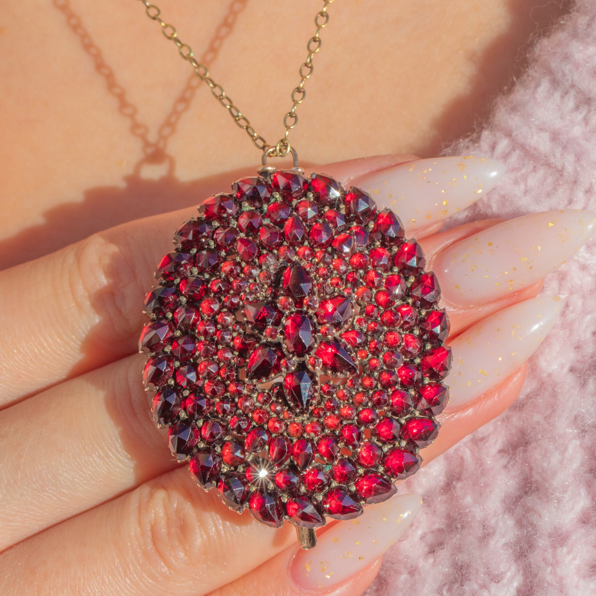 アンティーク ガーネット 群花 ブローチ兼ペンダント