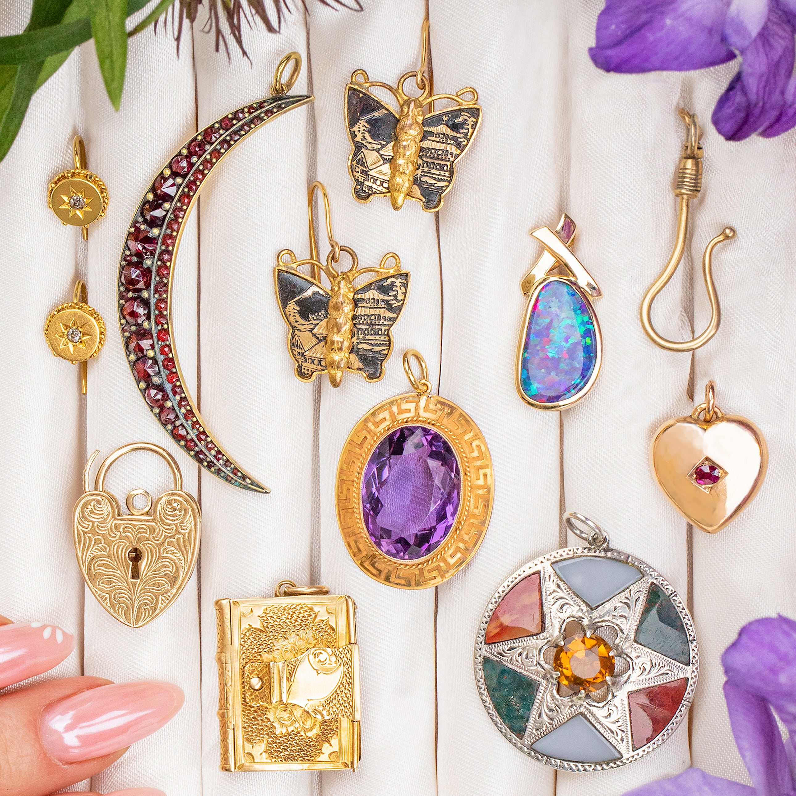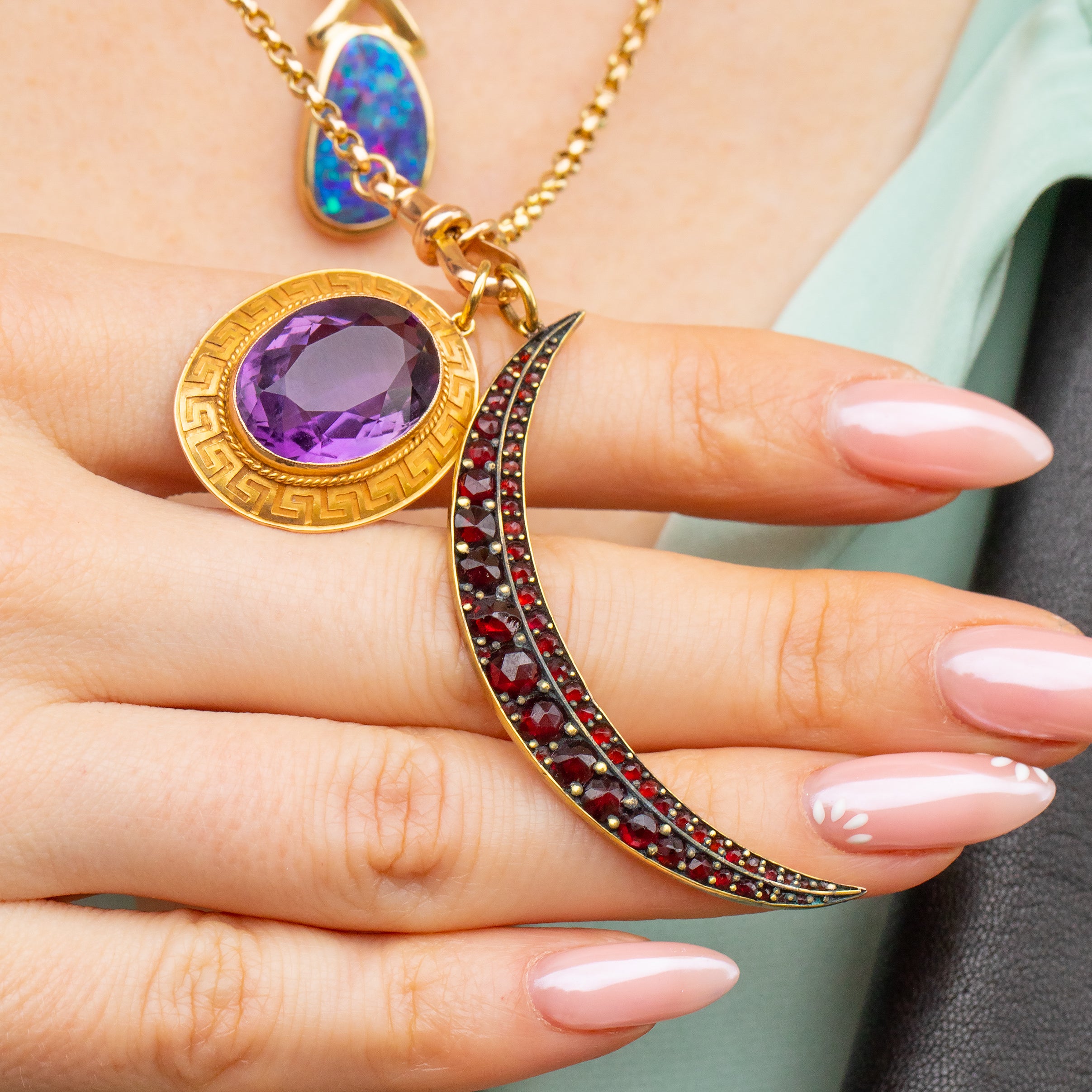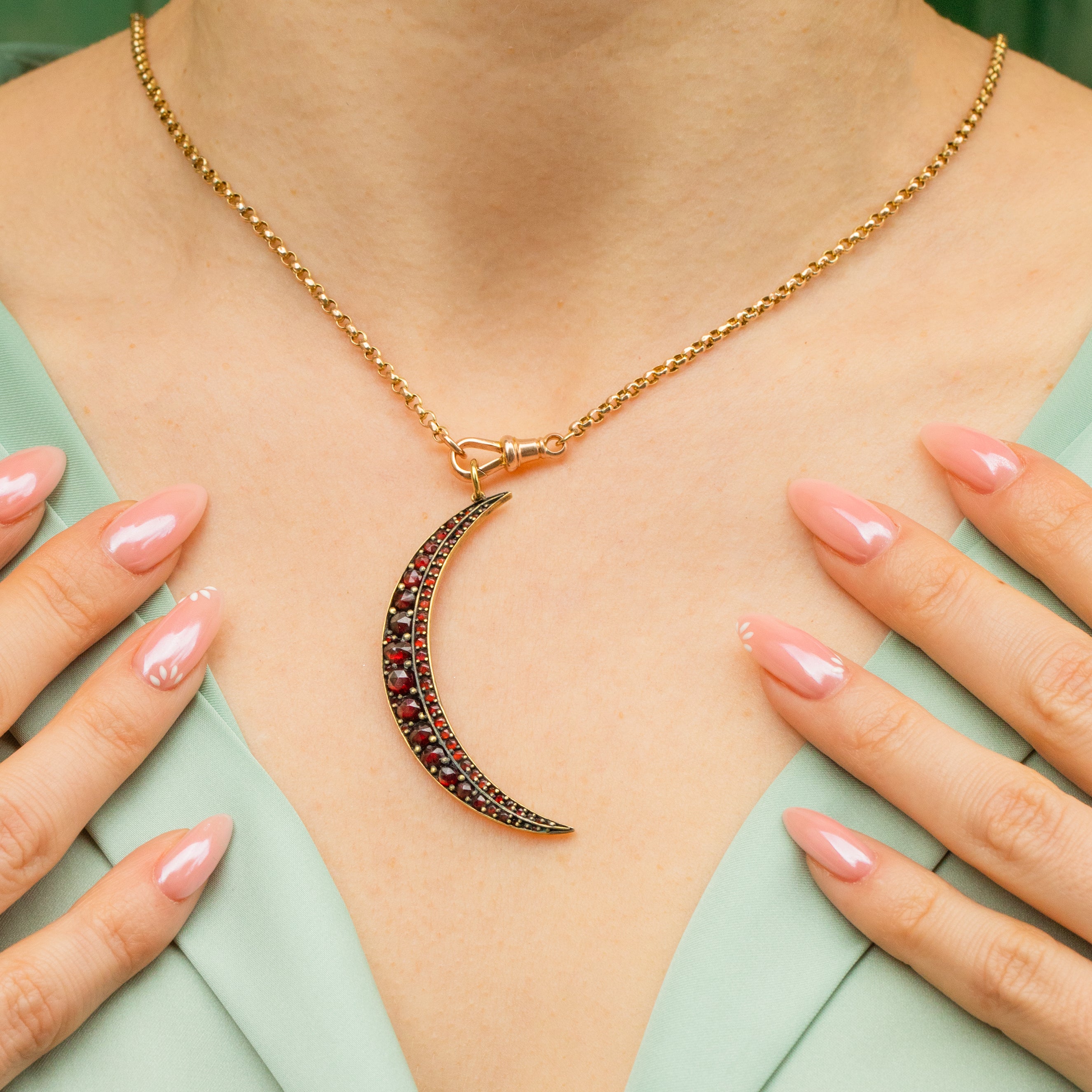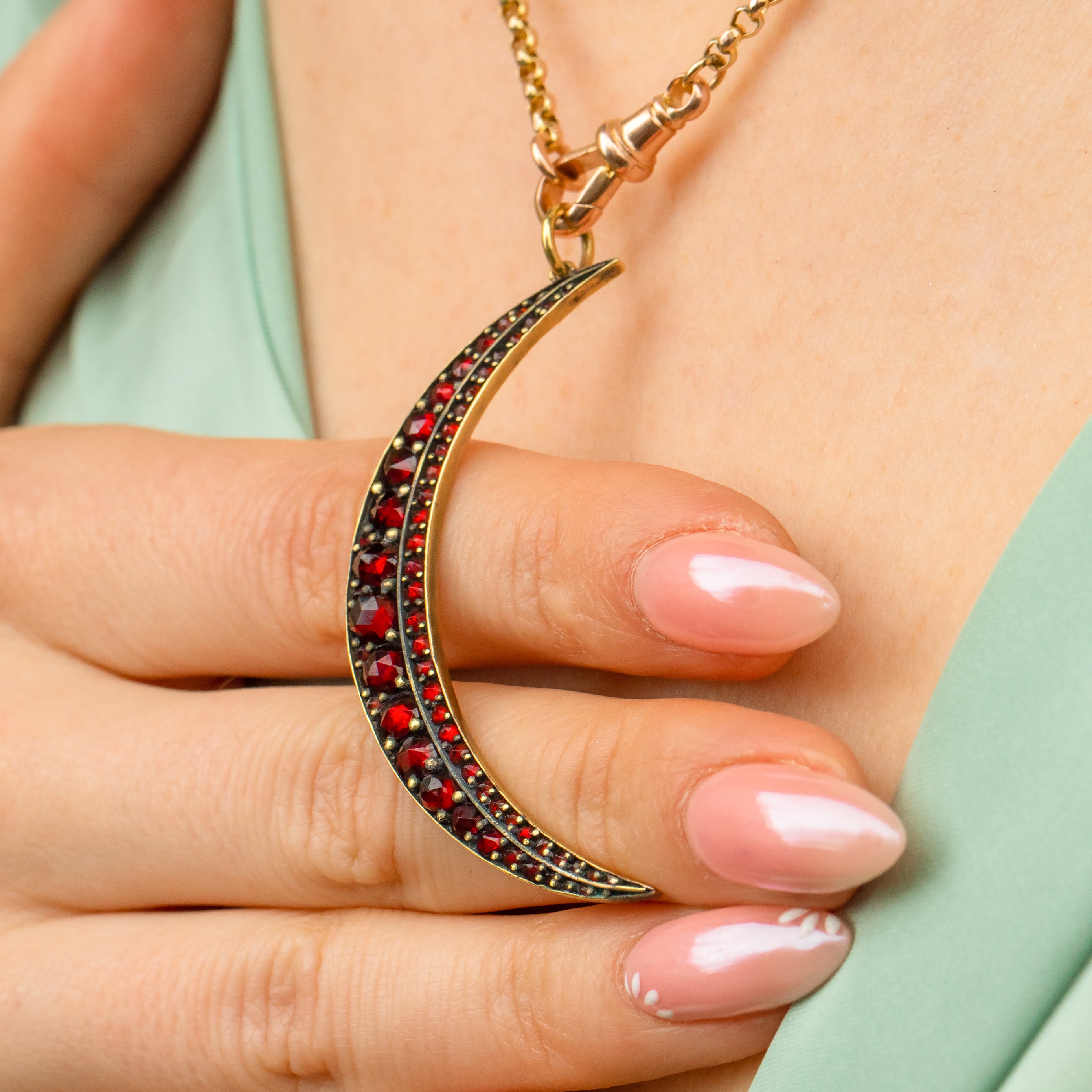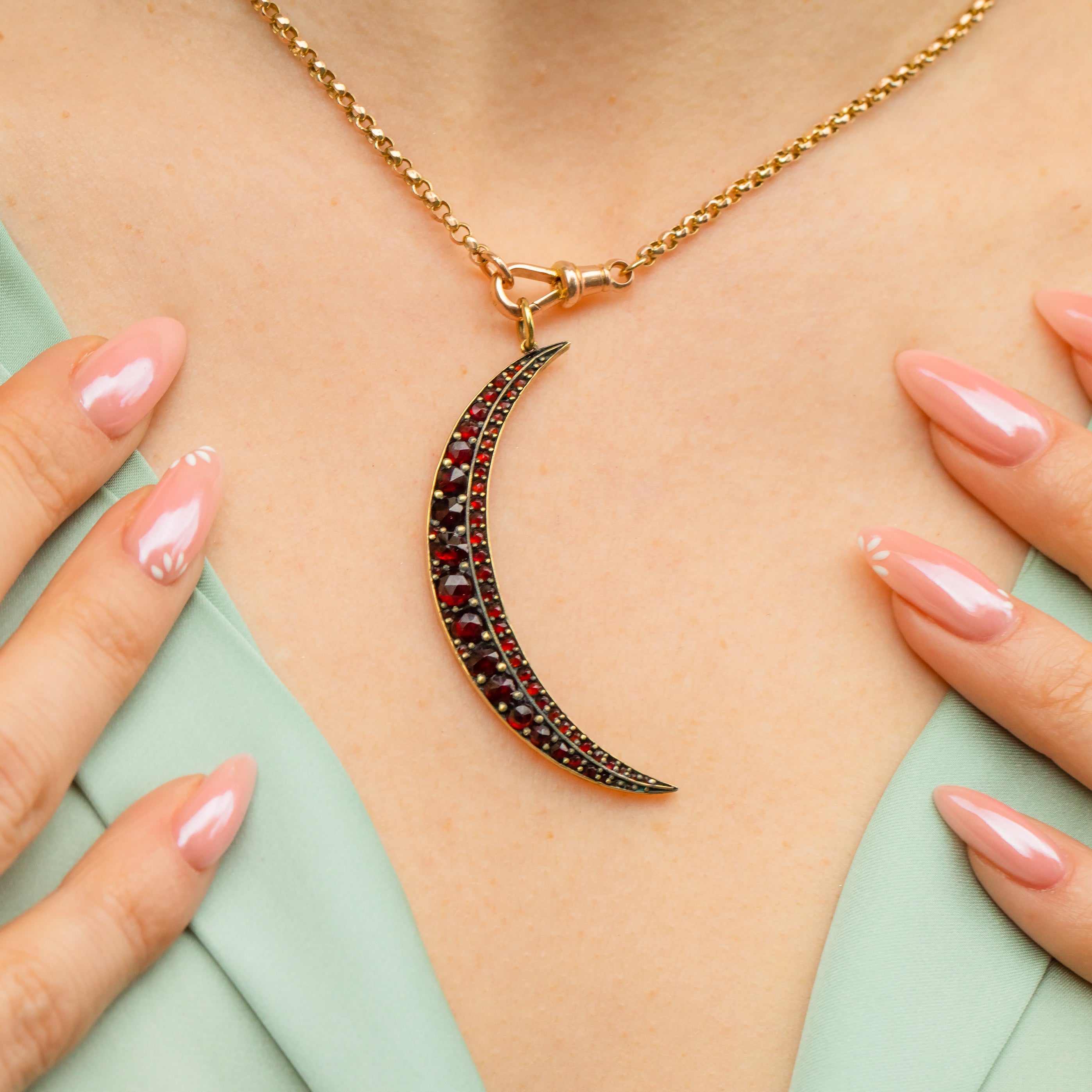 This antique Garnet crescent moon pendant will add undeniable celestial charm to your collection!