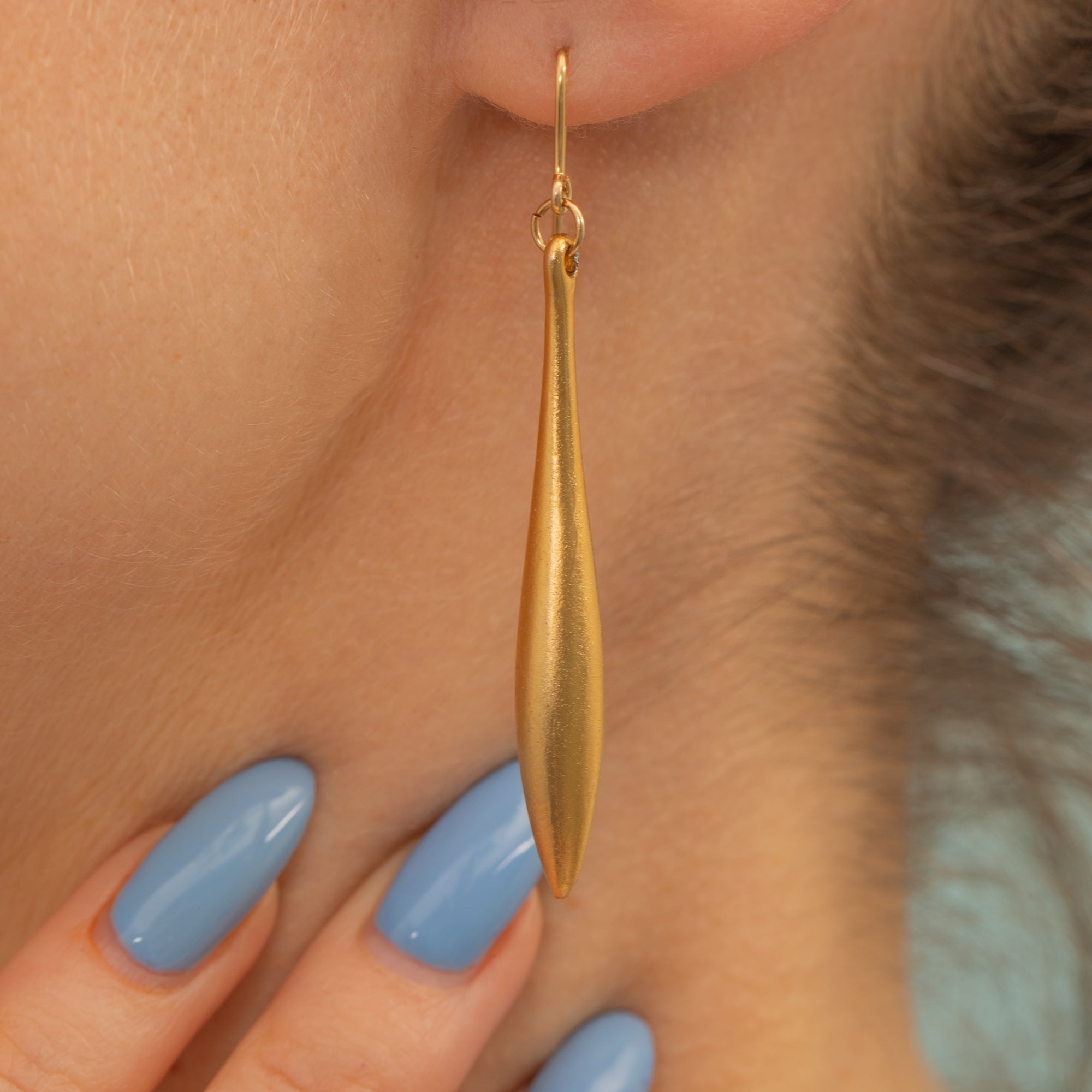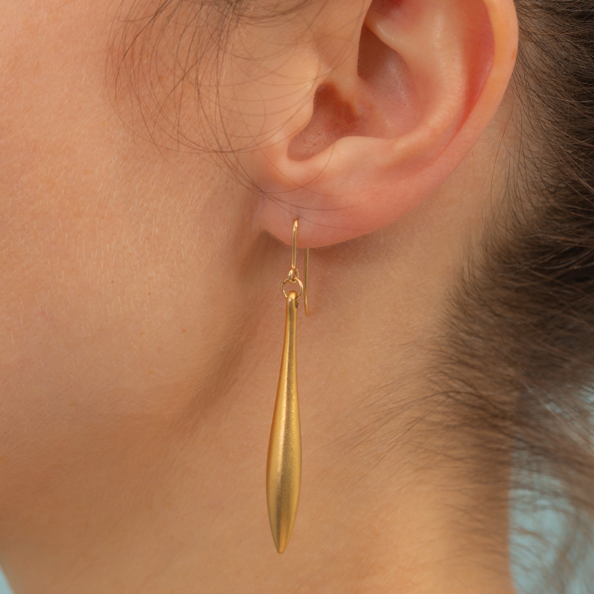 MATERIALS: Tests as 9ct Gold plated torpedo drops with solid 9ct Gold hooks.