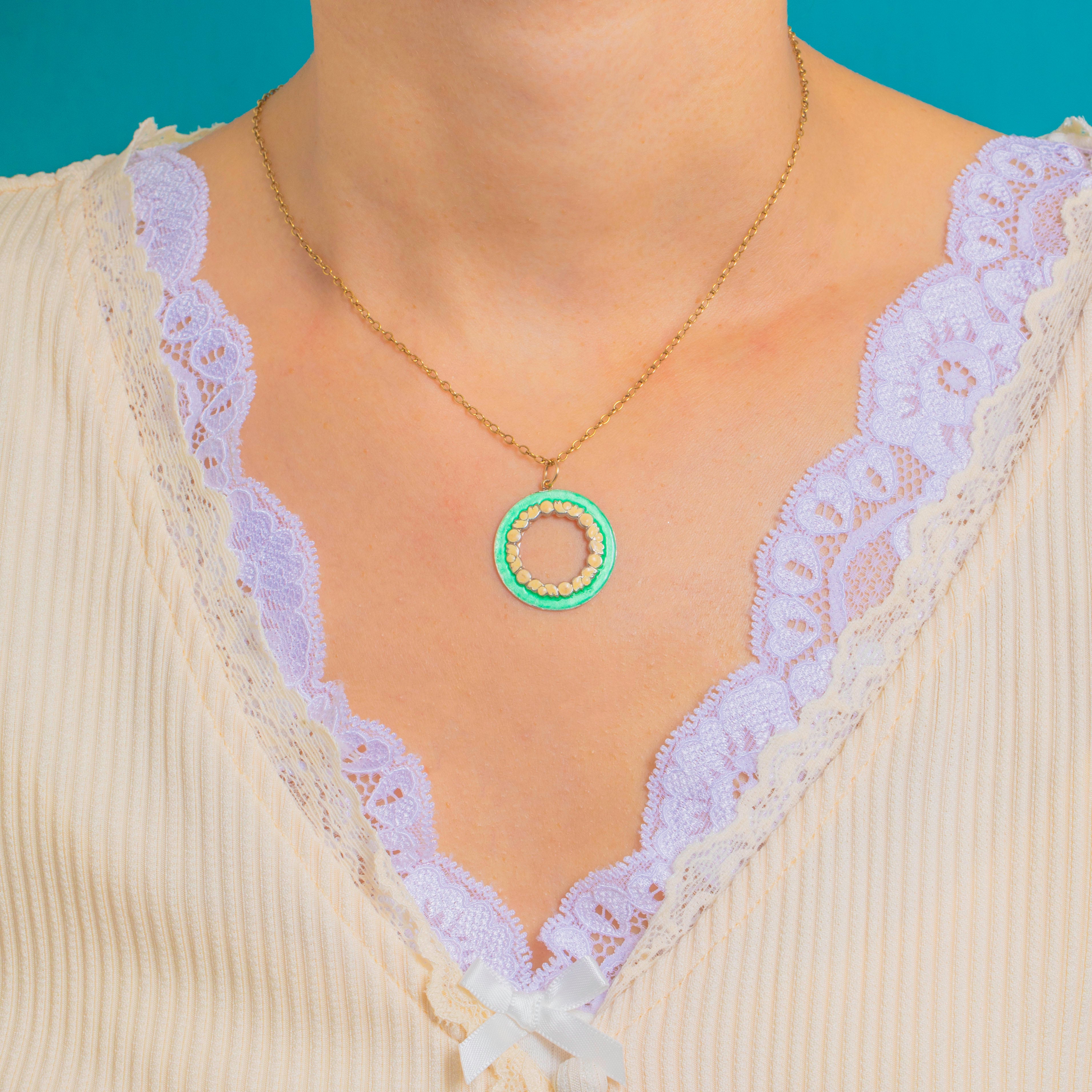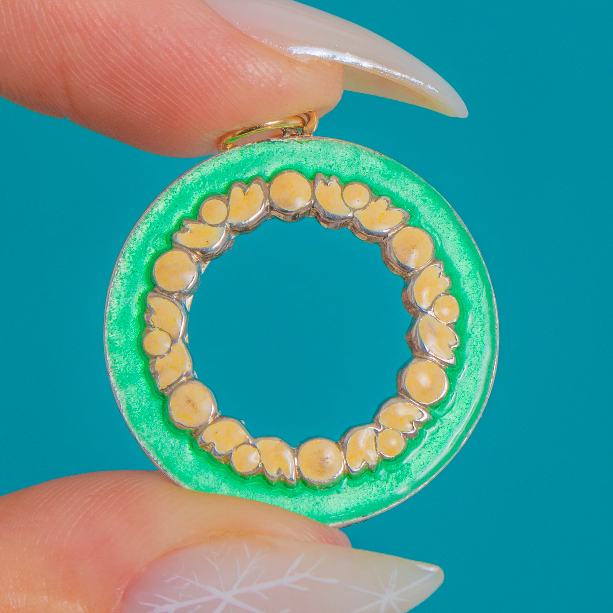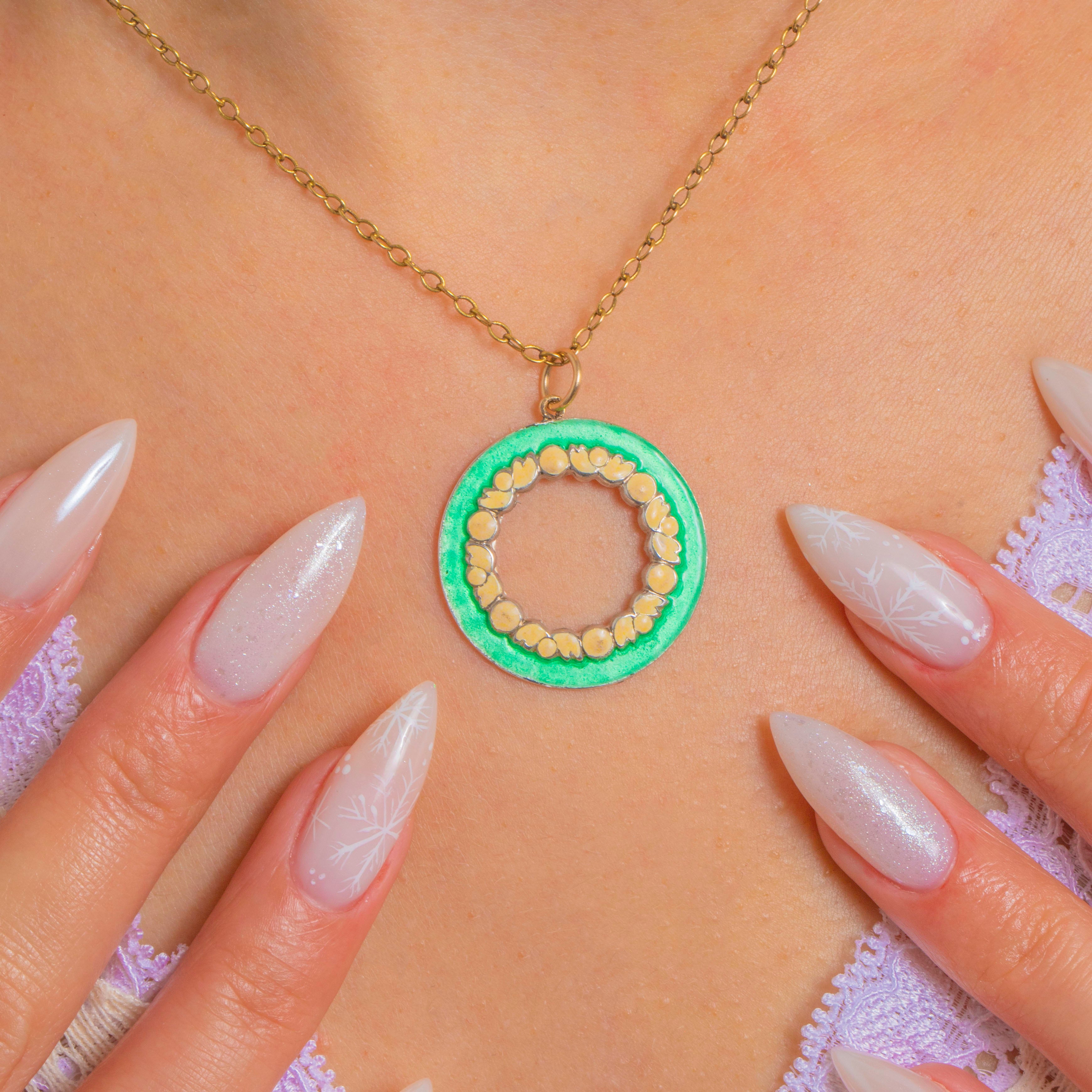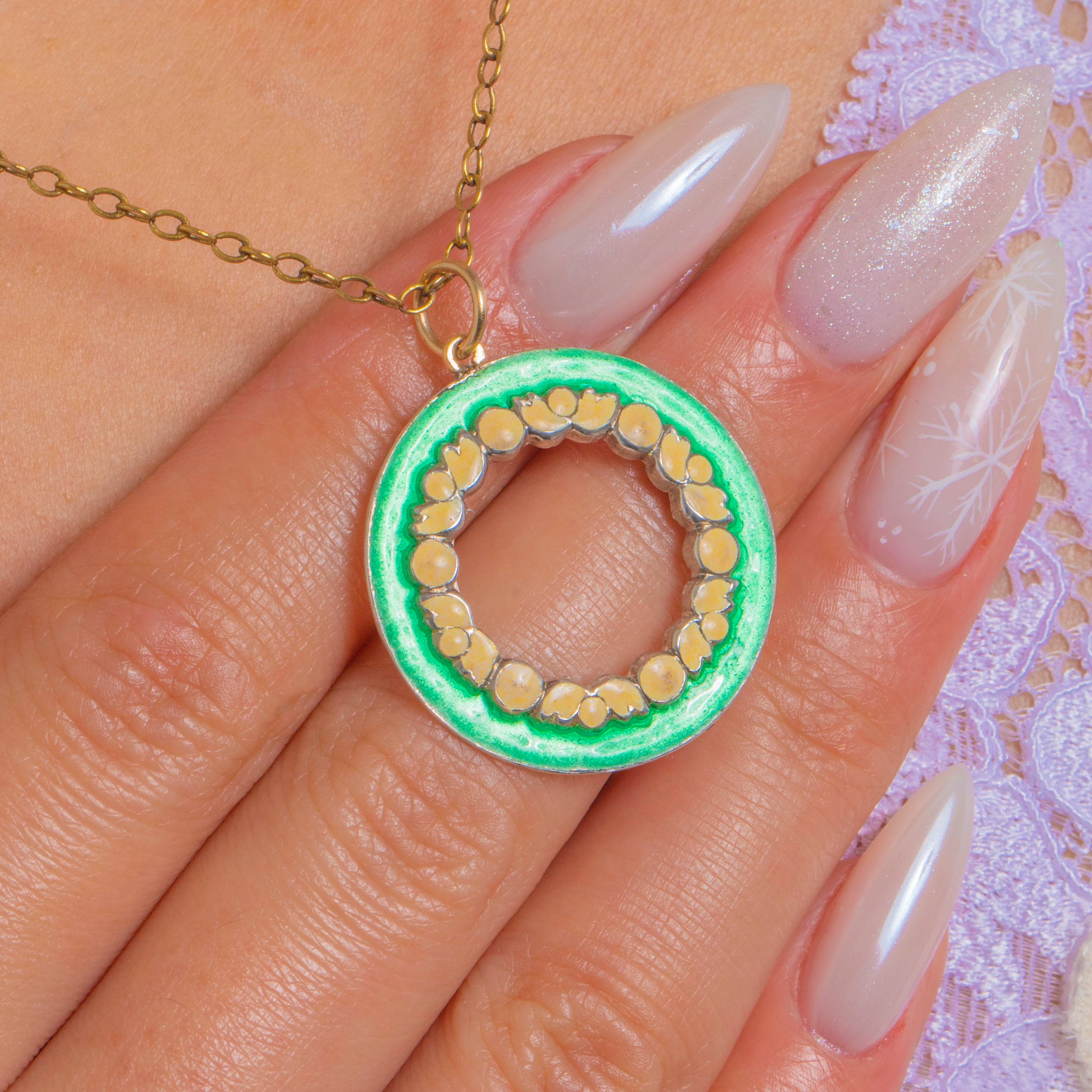 アンティーク グリーンエナメル フラワーガーランド ロンデル ペンダント