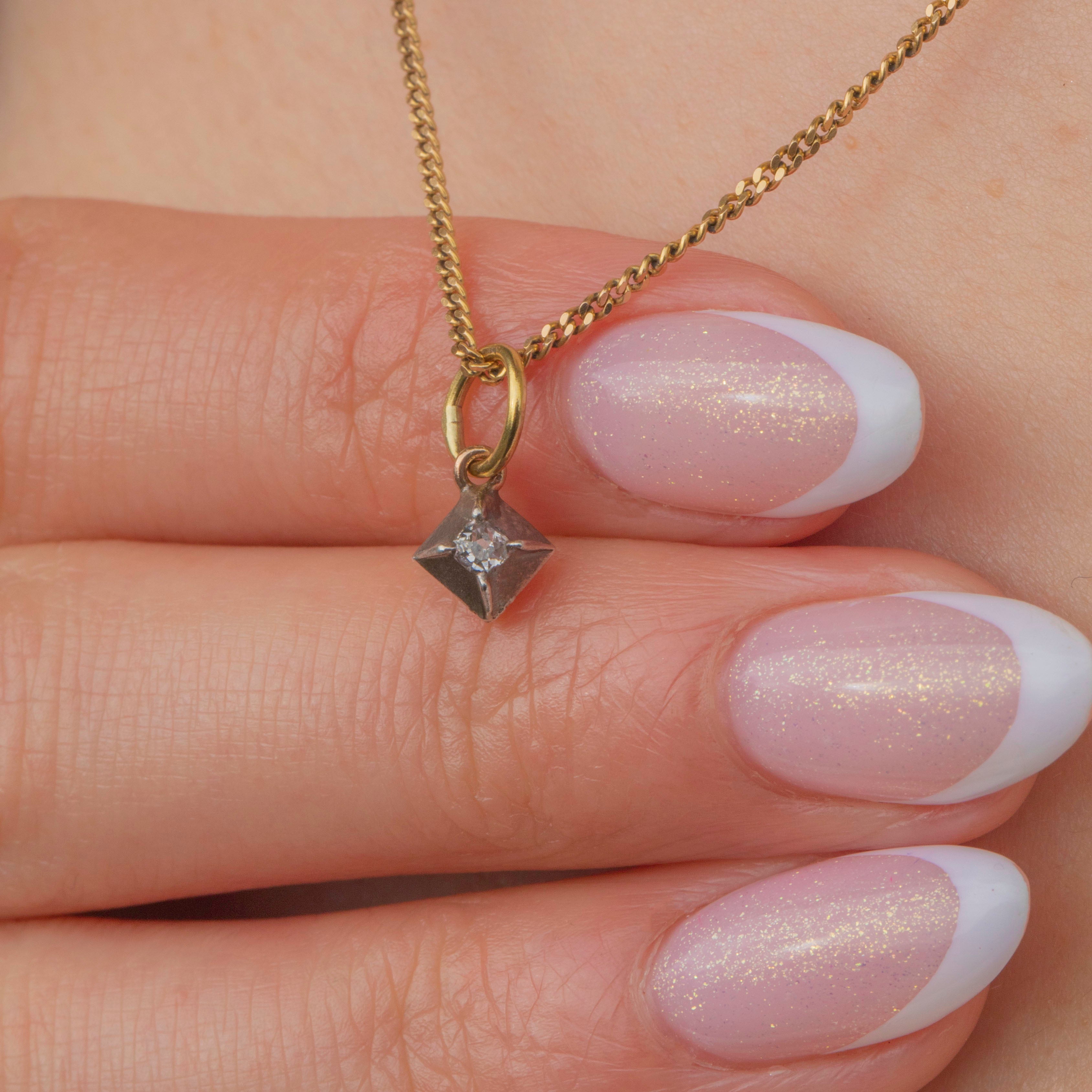 EXCELLENT: This antique old-mine-cut Diamond charm is in excellent condition, free from any chips or fleabites. Securely set and built to last a lifetime, the Diamond retains its radiant brilliance—a true marvel given its age. What more could you ask for?