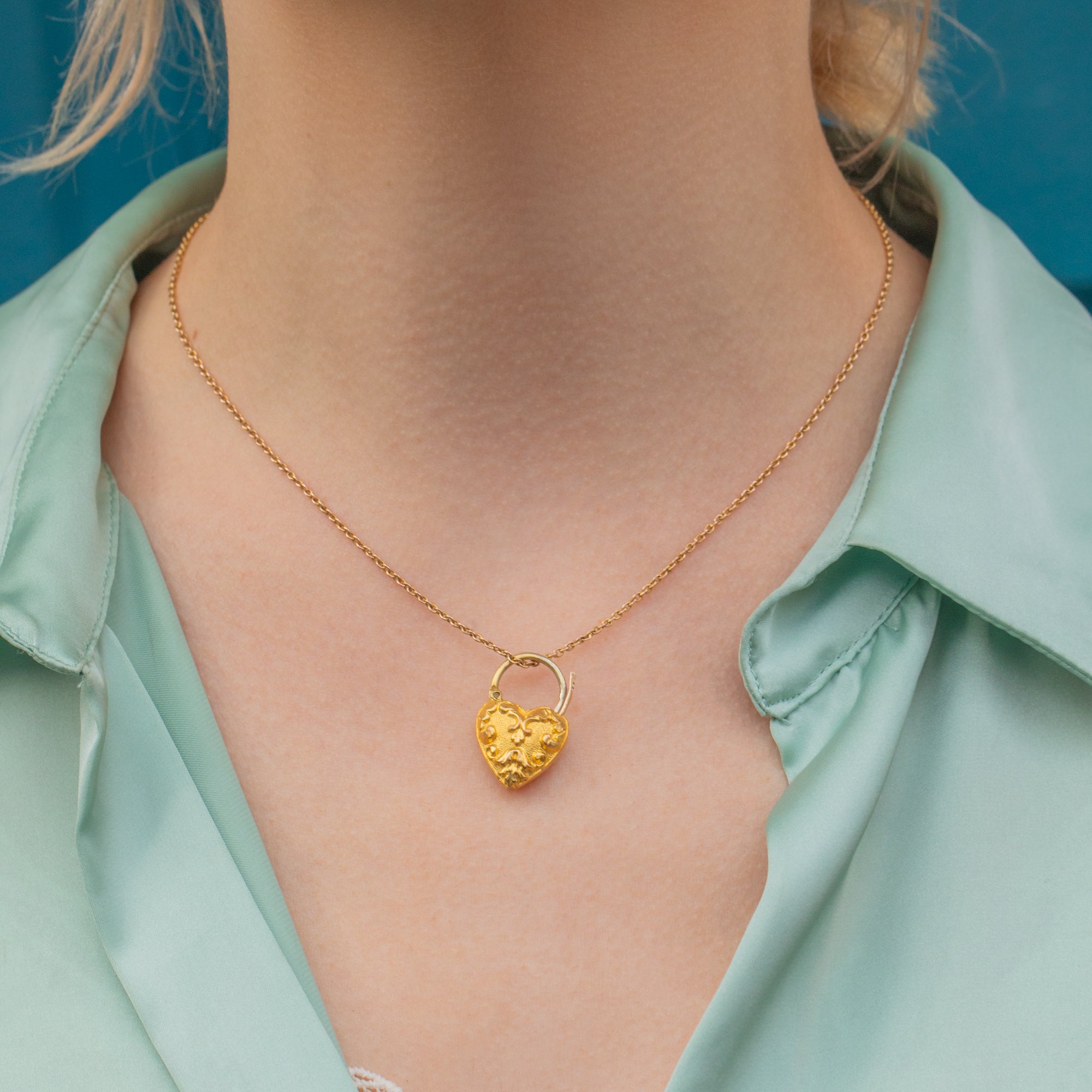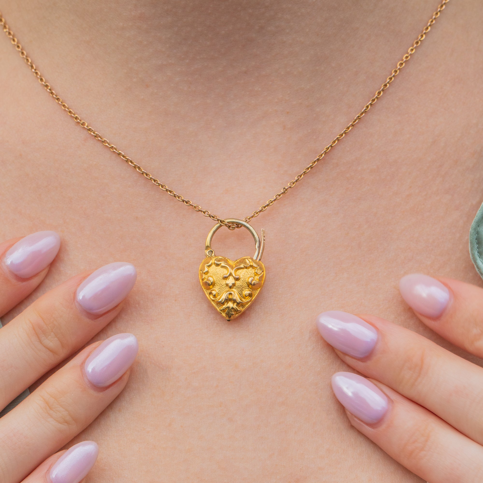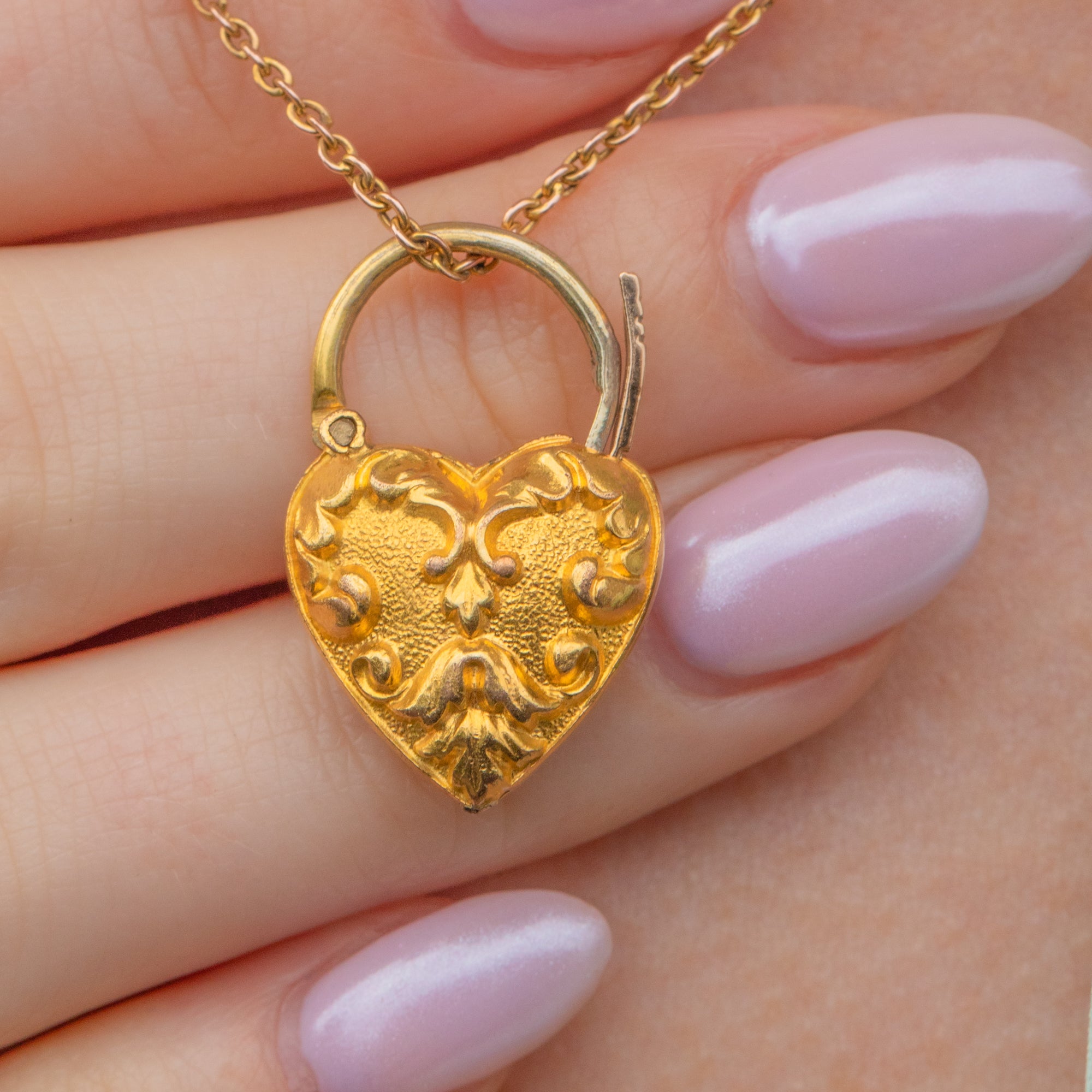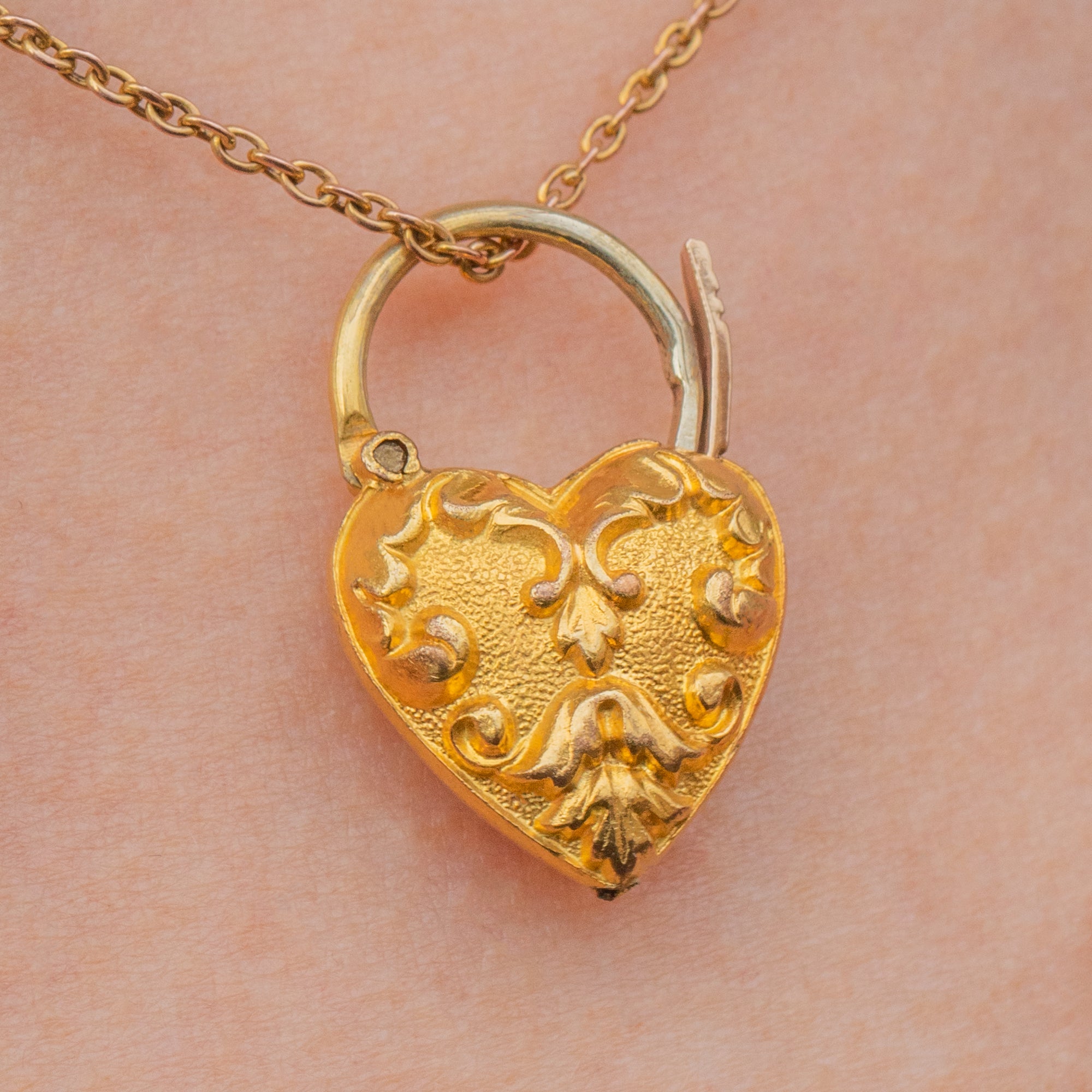 Flaunting whimsical repoussé detailing on the entirely of her puffy heart form, this Georgian pendant is the epitome of pretty. The padlock design of this antique heart pendant makes her a super versatile addition to your jewellery box; it's up to you to choose how to style her!