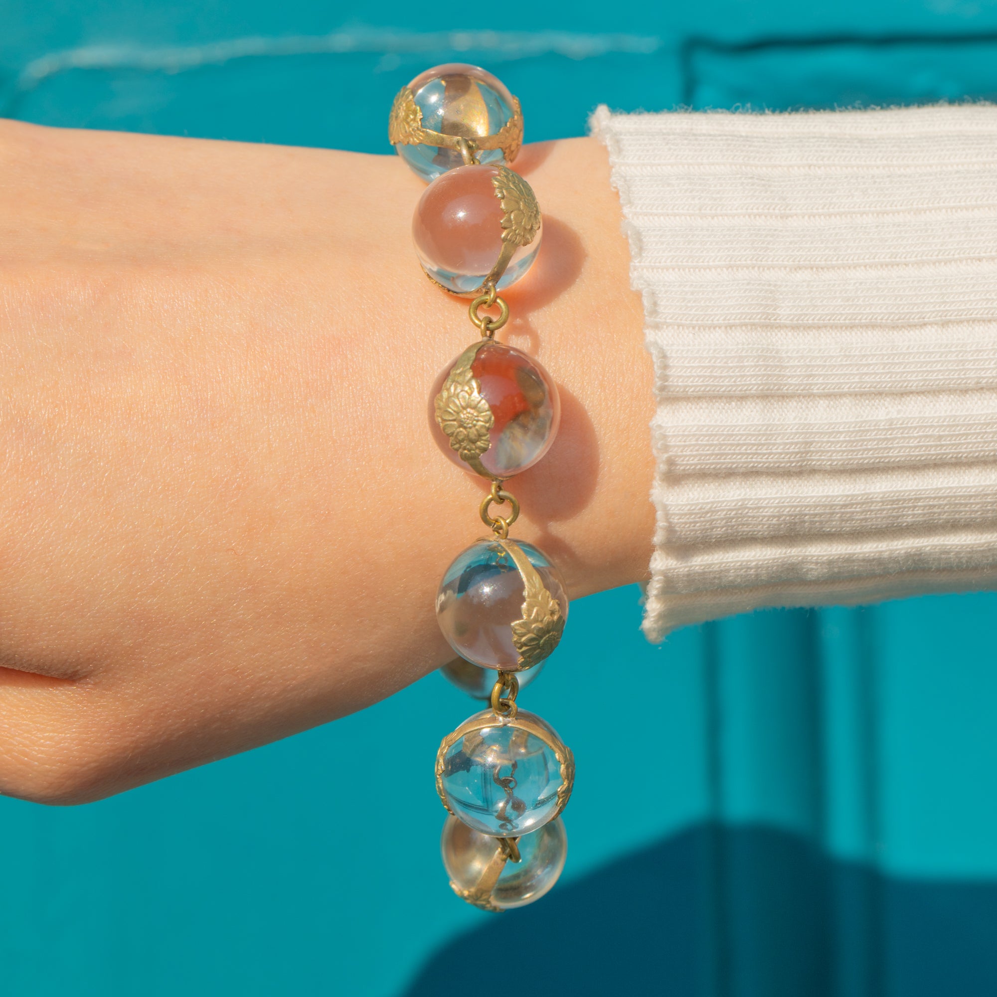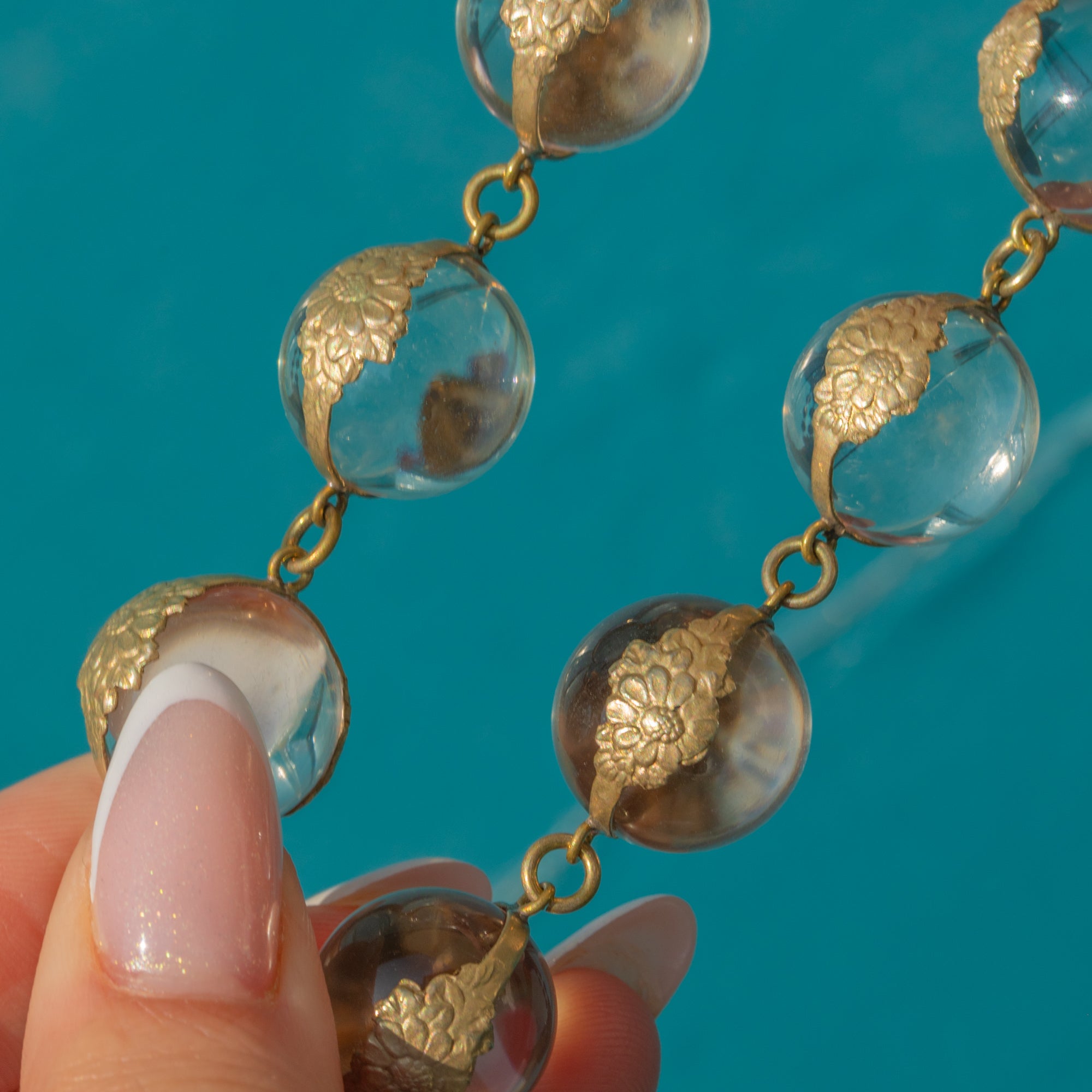 This exquisite antique Pools of Light Rock Crystal floral bracelet will make a bold impact wherever she goes! Providing impressive wrist coverage, each smoothly cut Rock Crystal orb glows and refracts the light wonderfully.