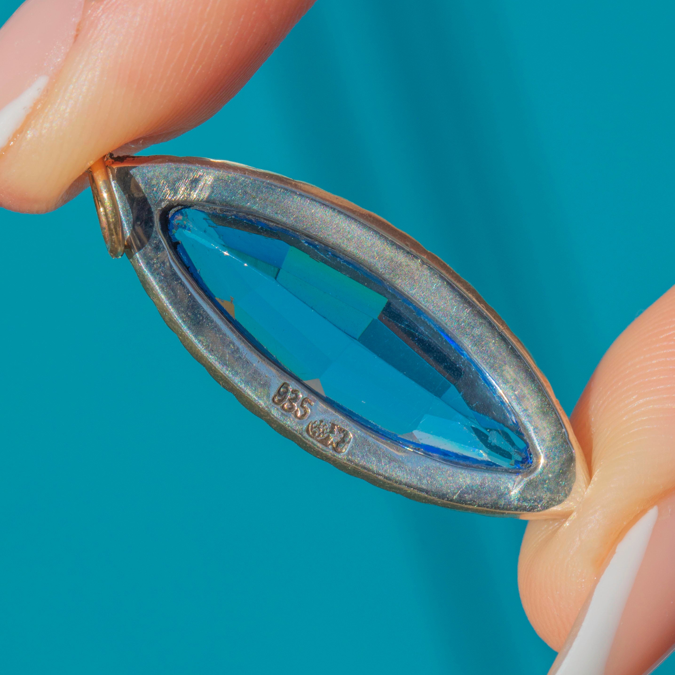 Antique Silver & 9ct Gold Blue Paste Navette Pendant