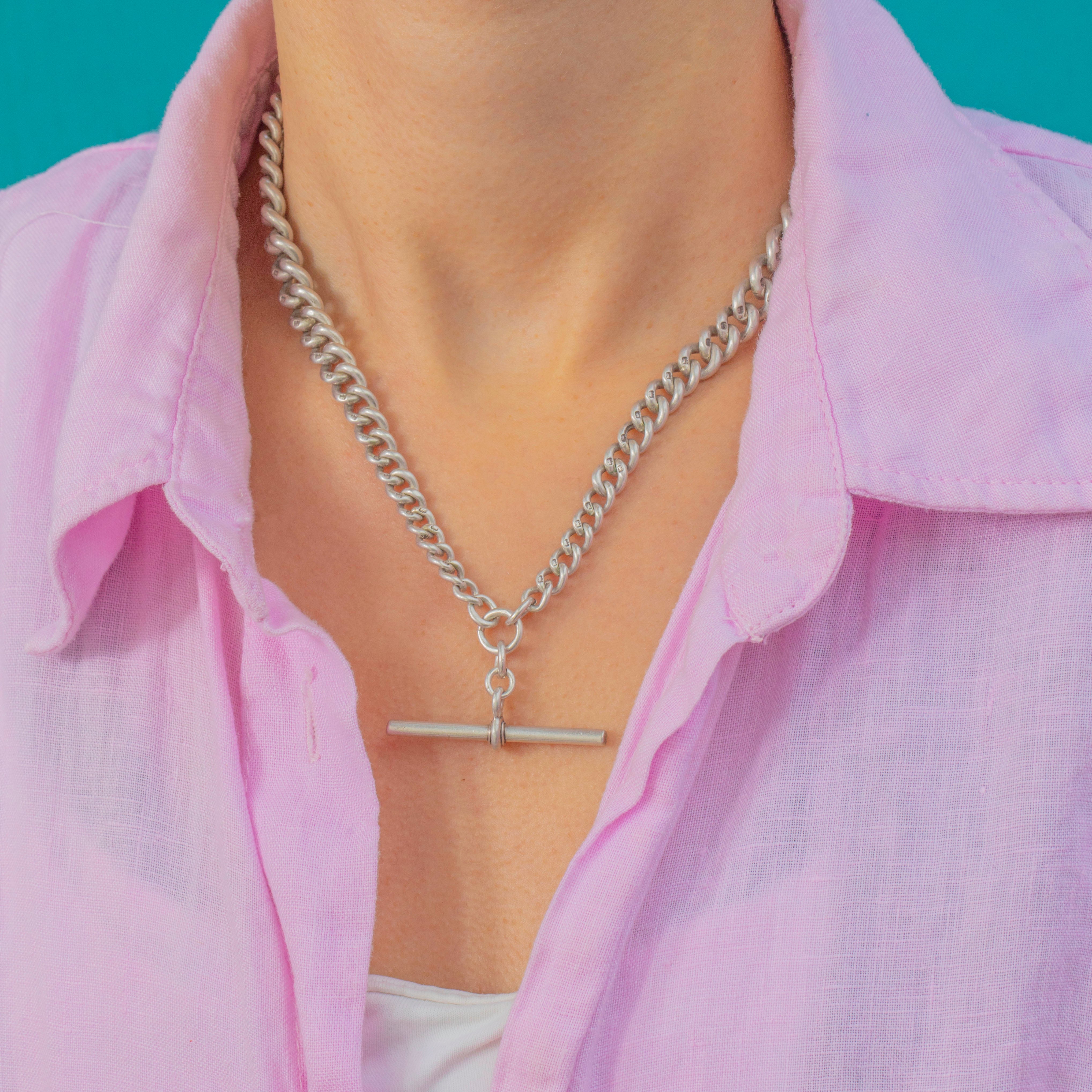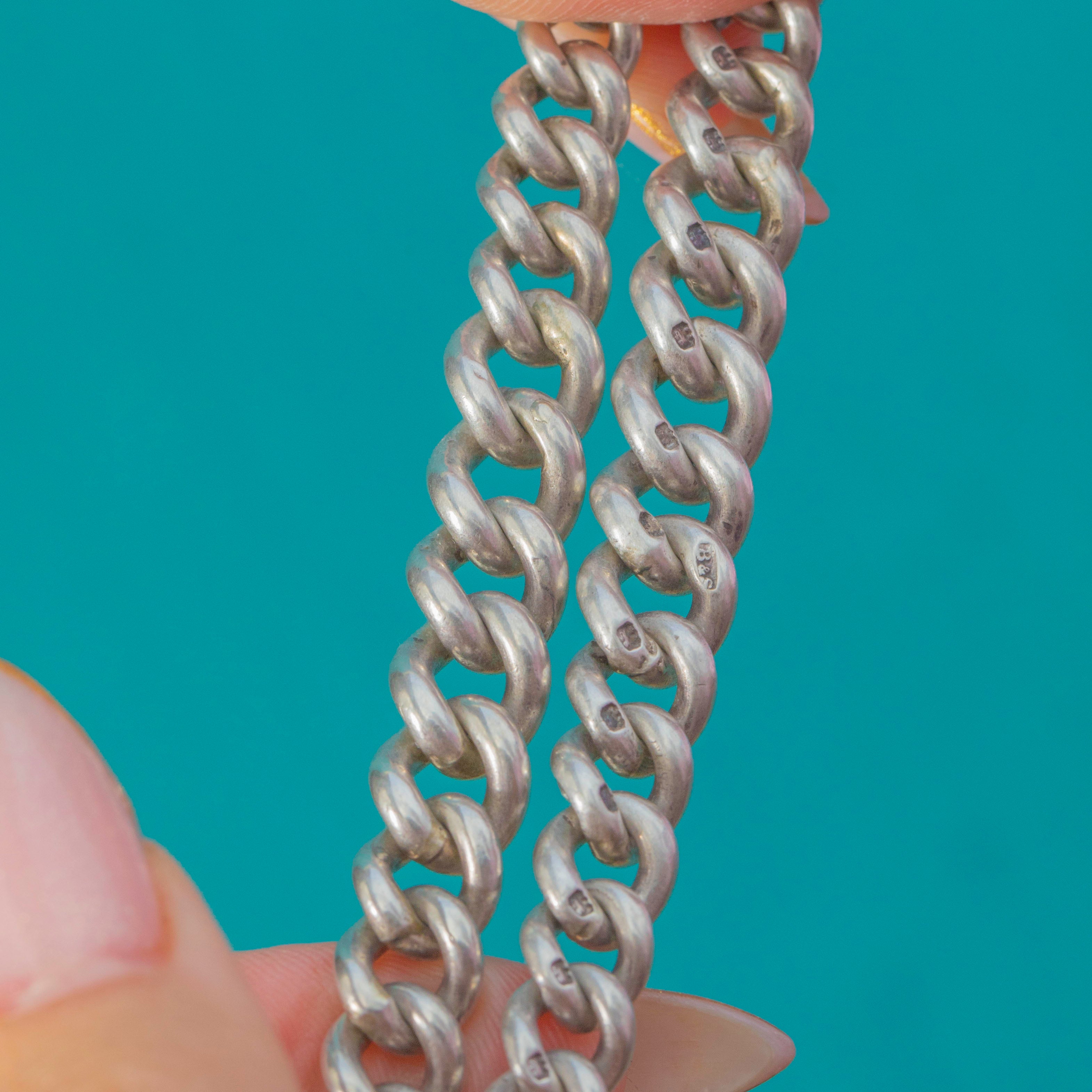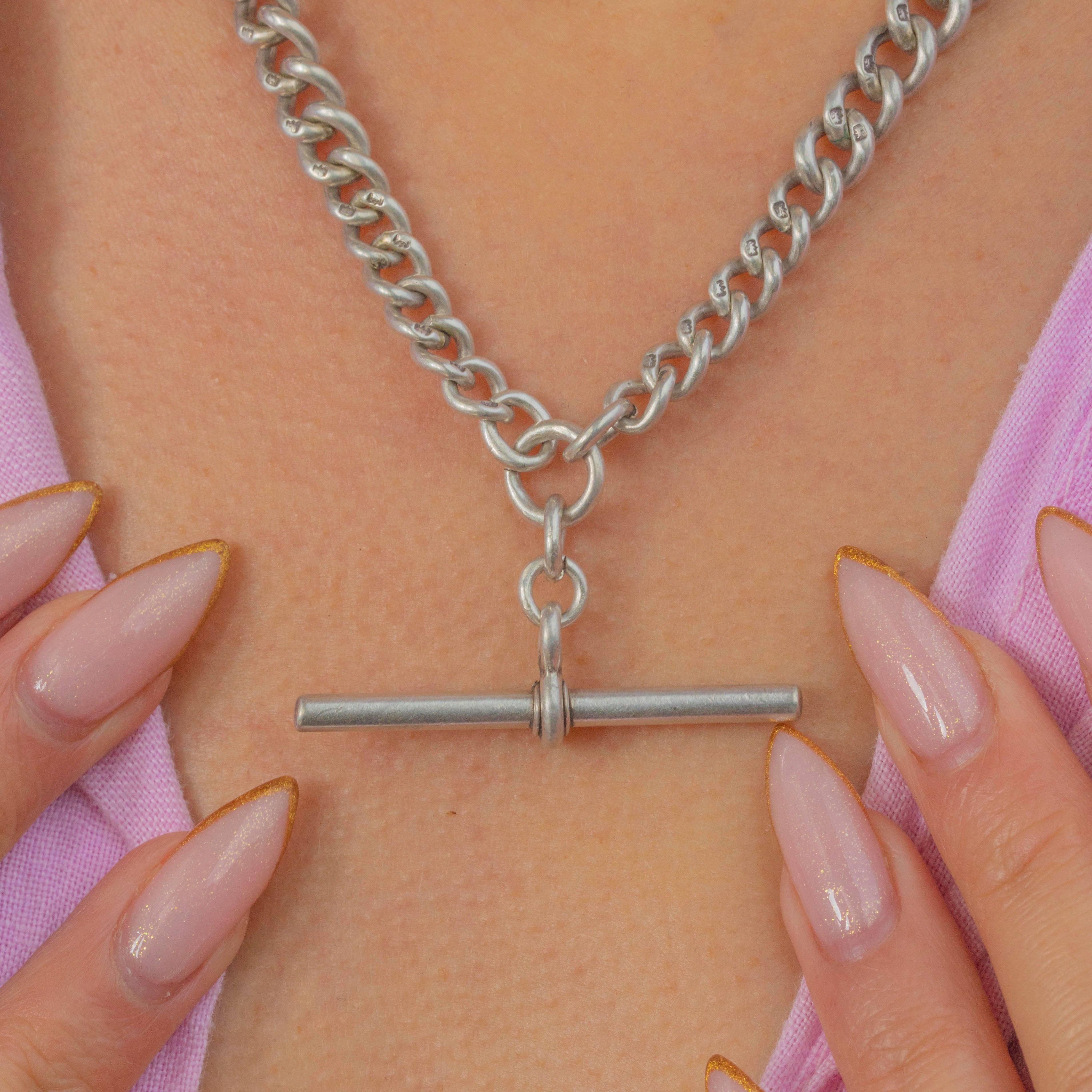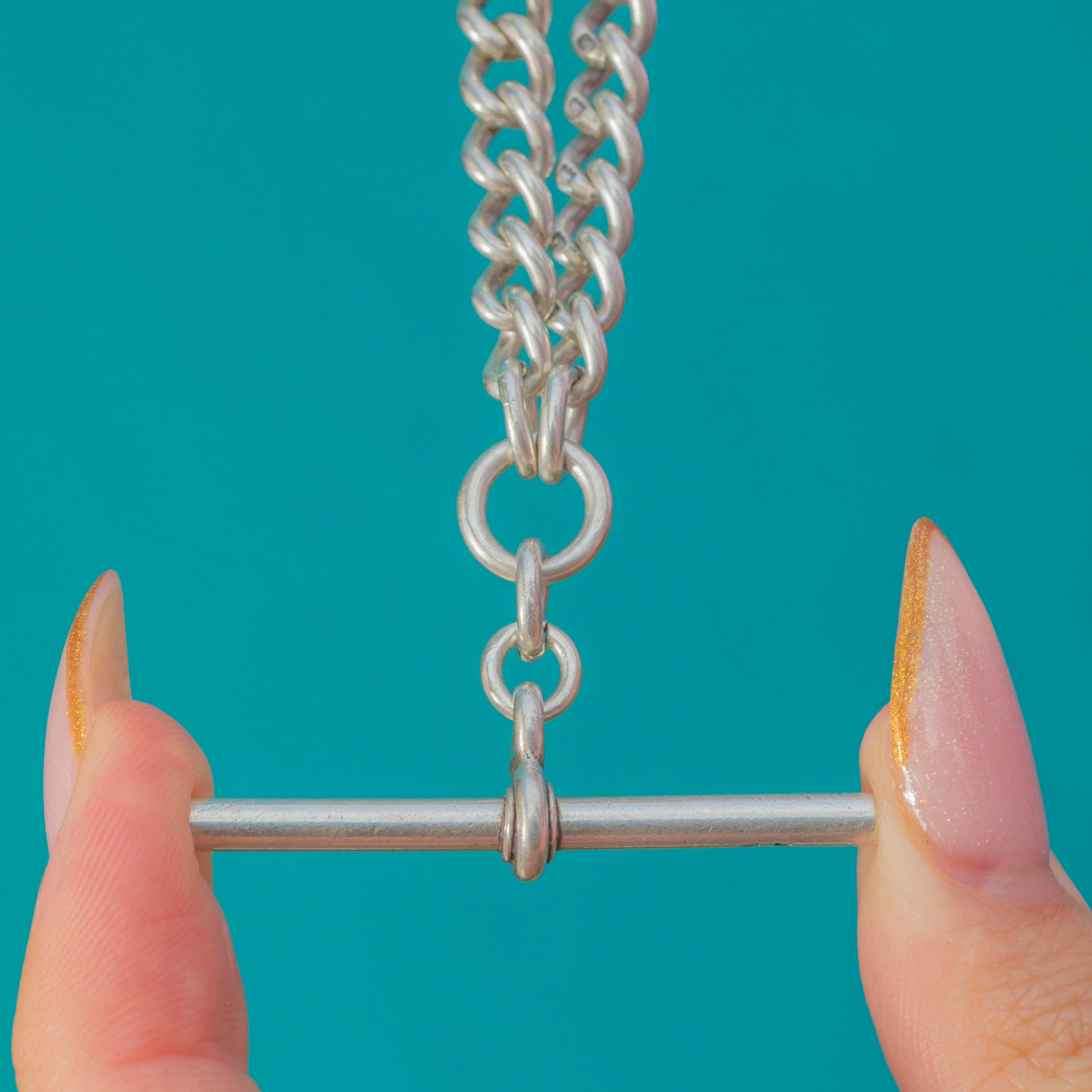 アンティーク シルバー アルバートチェーン マッチング ドッグクリップ&Tバー付き