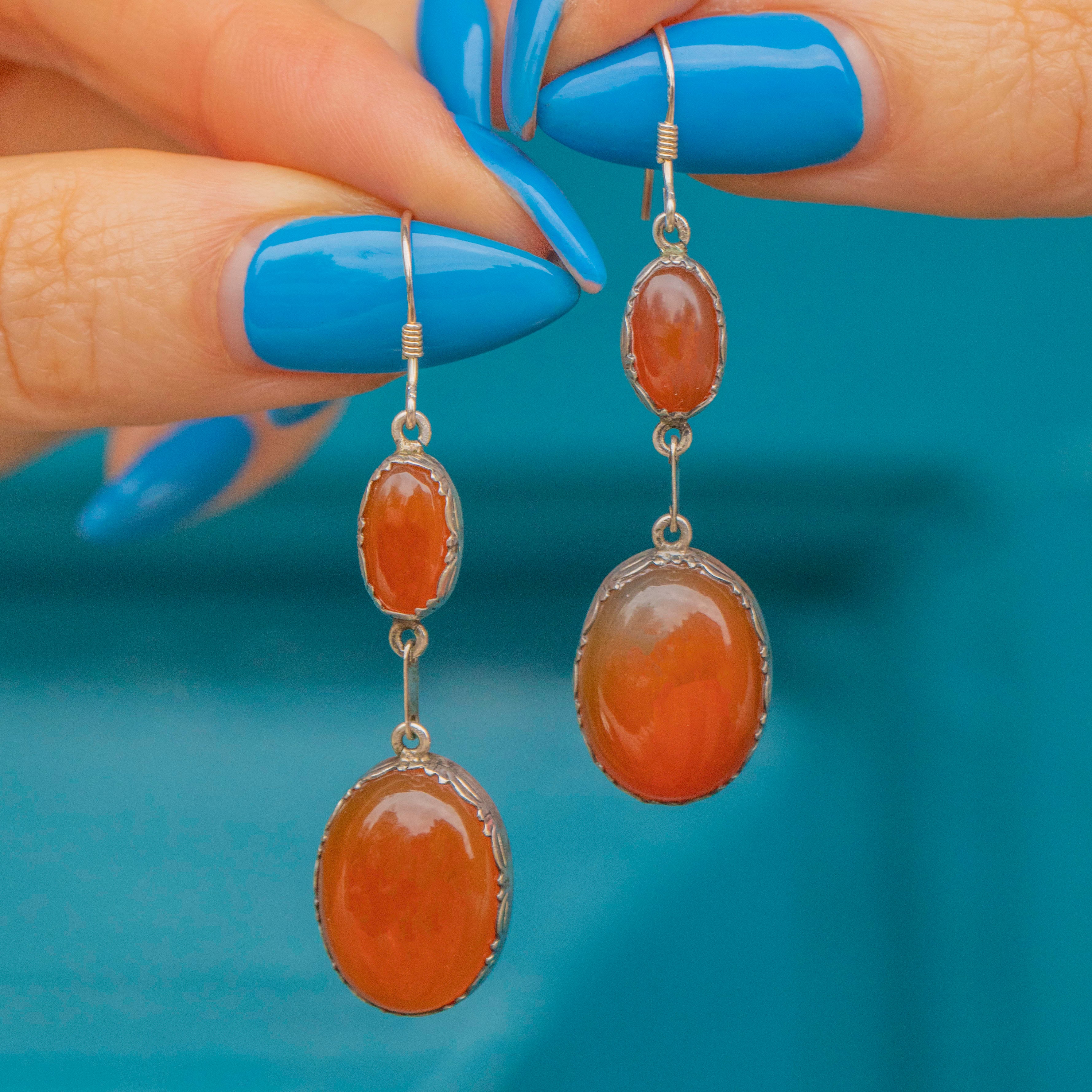 These antique Silver Carnelian cabochon drop earrings are just a delight!