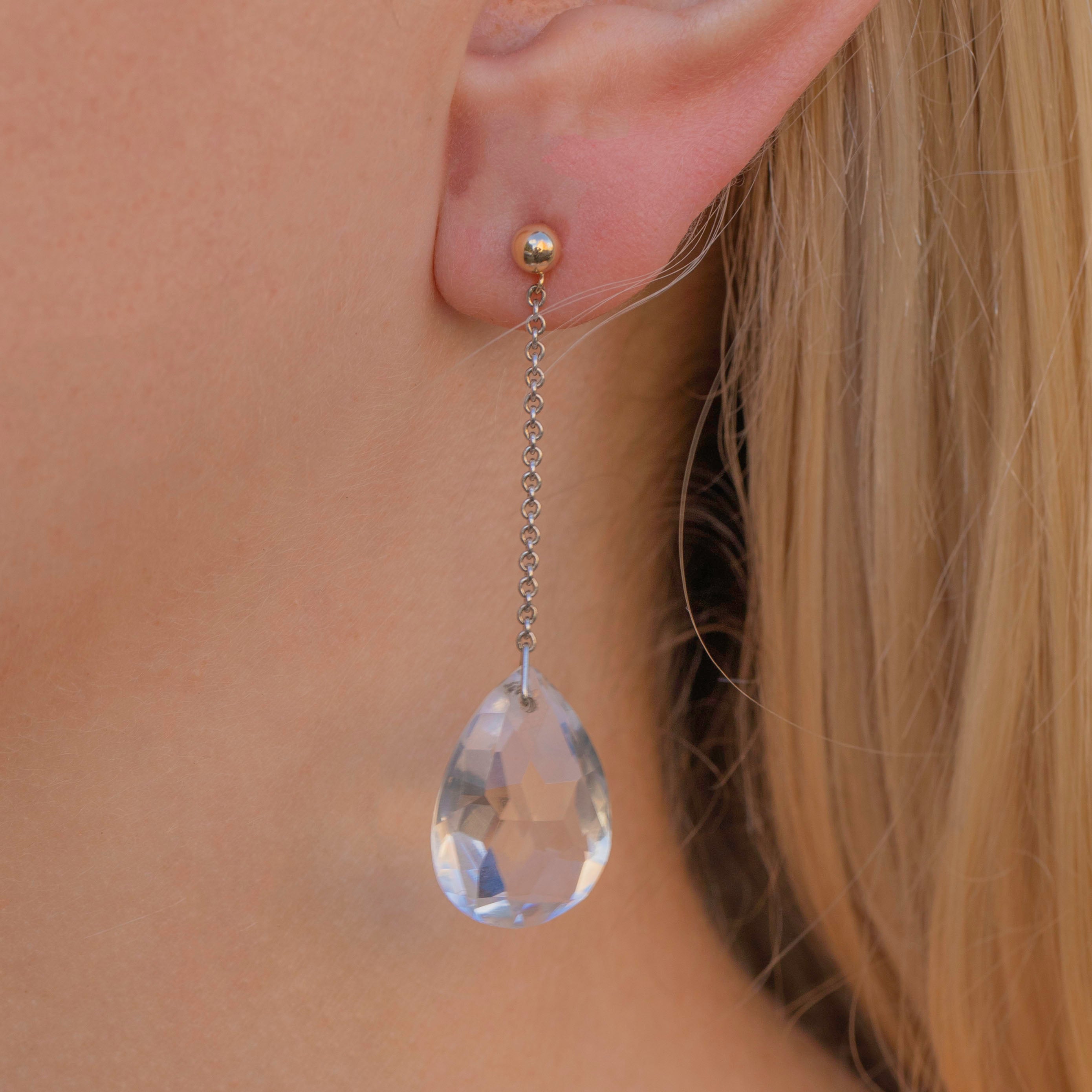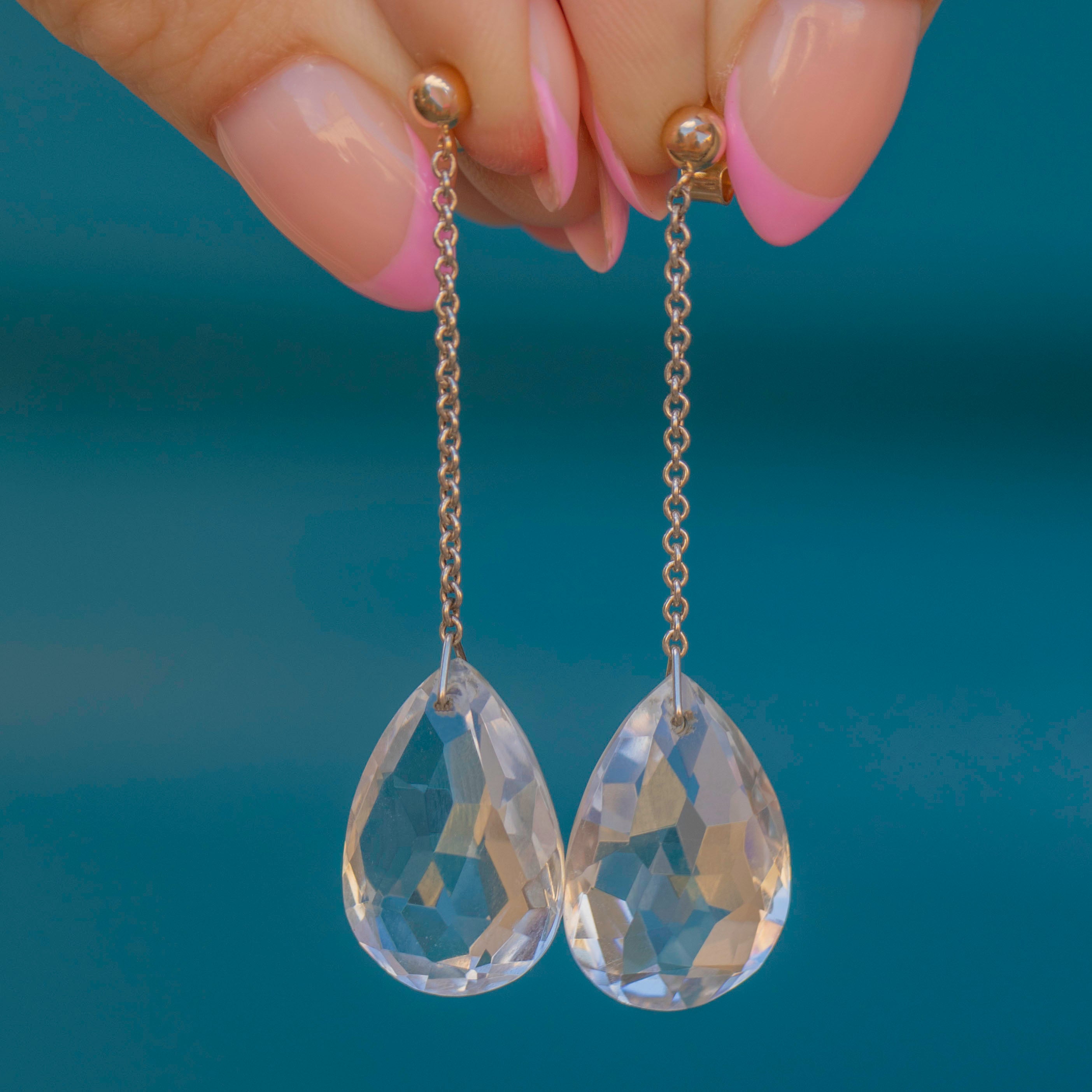 Watch as these antique Silver faceted Rock Crystal earrings become the hot topic of conversation! As the 20.80ct Rock Crystal pear drops dance beside your cheeks, you can see in an instance their faceted form was made to glisten beneath the light.