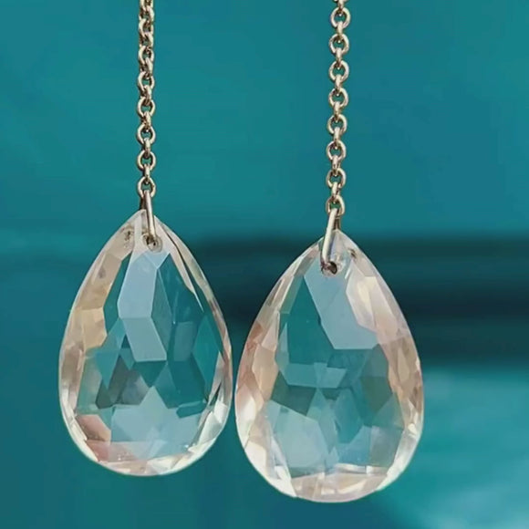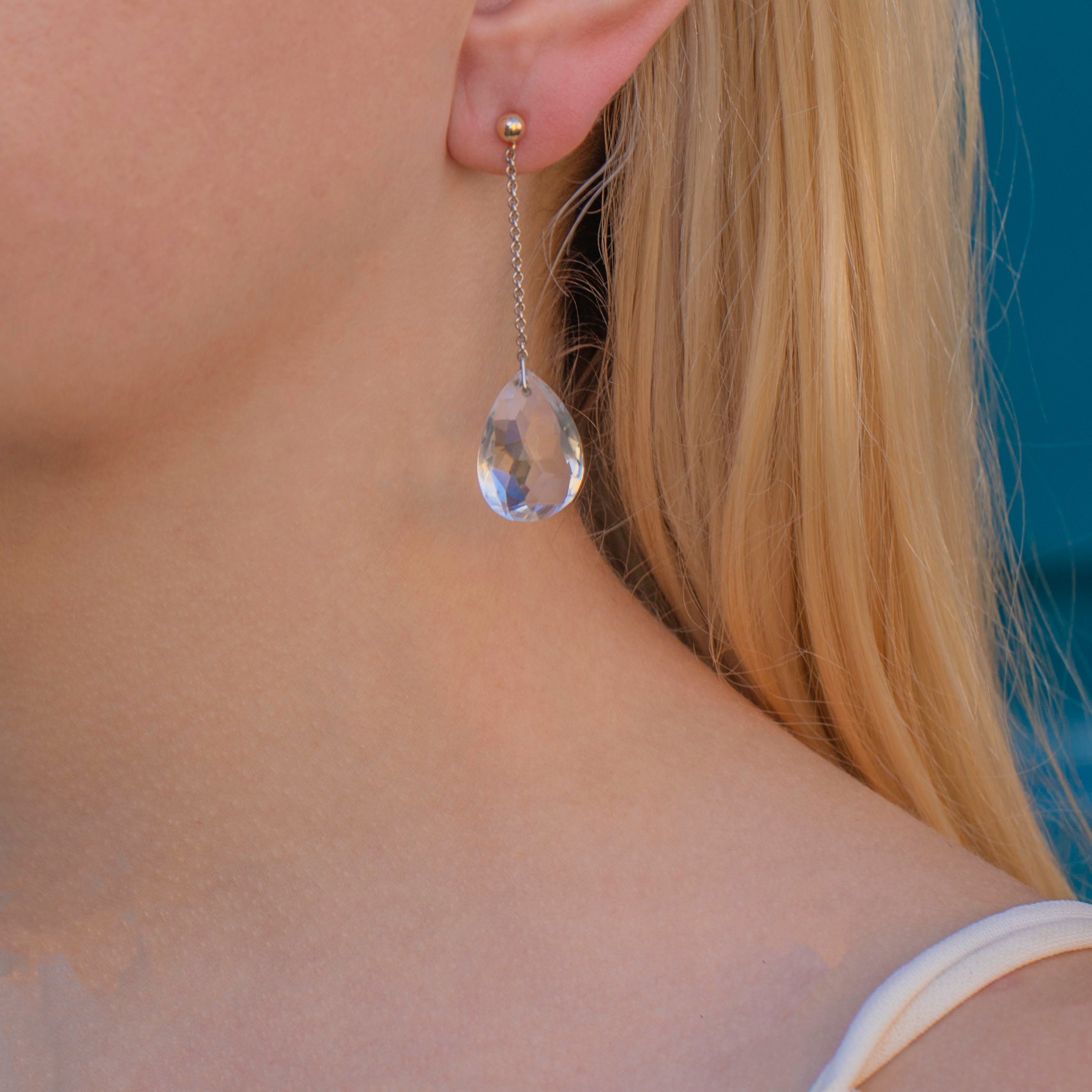 Suspended from a dainty Sterling Silver chain, these Art Deco earrings will bring the elegance and sophistication you have been looking for, as they hang like chandeliers. Known to bring clarity and universal energy, these Rock Crystal earrings could bring the inner cleanse you've been looking for.