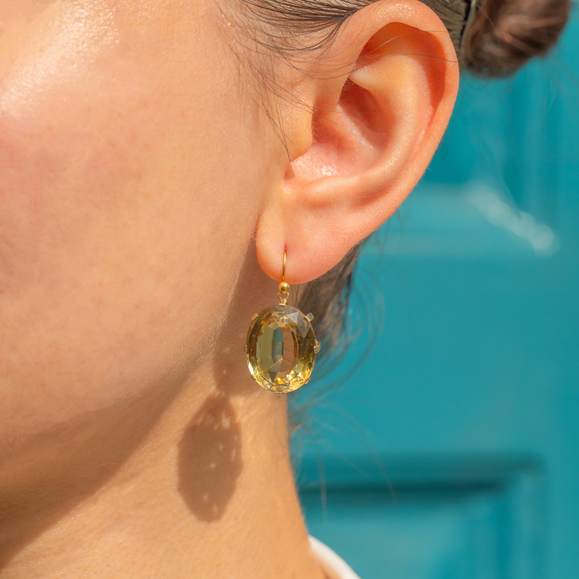 This pair will sit snug just below the earlobe and is the perfect addition to add a touch of glamour to any outfit. So chic, these Victorian Citrine earrings are sure to become your new go-to pair!