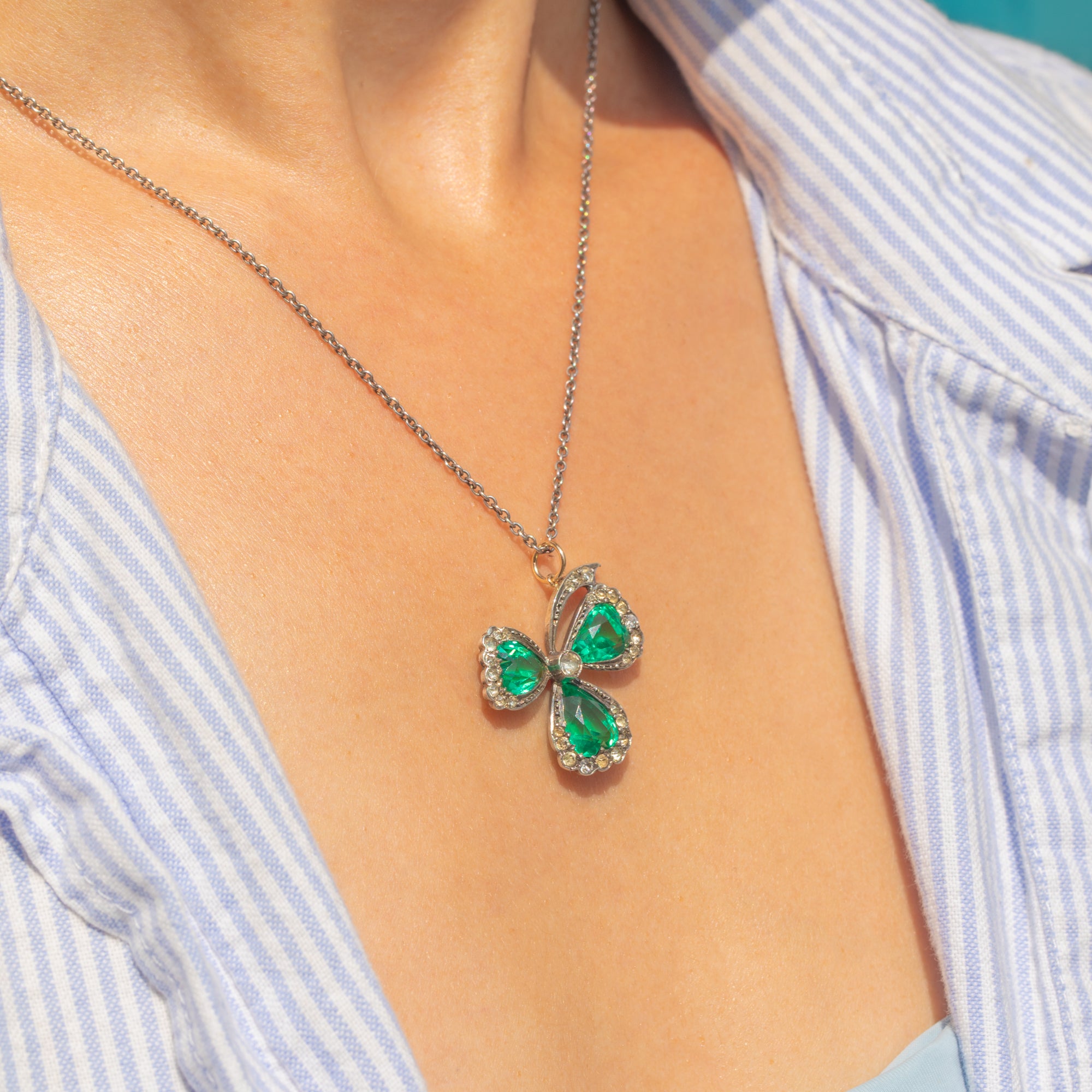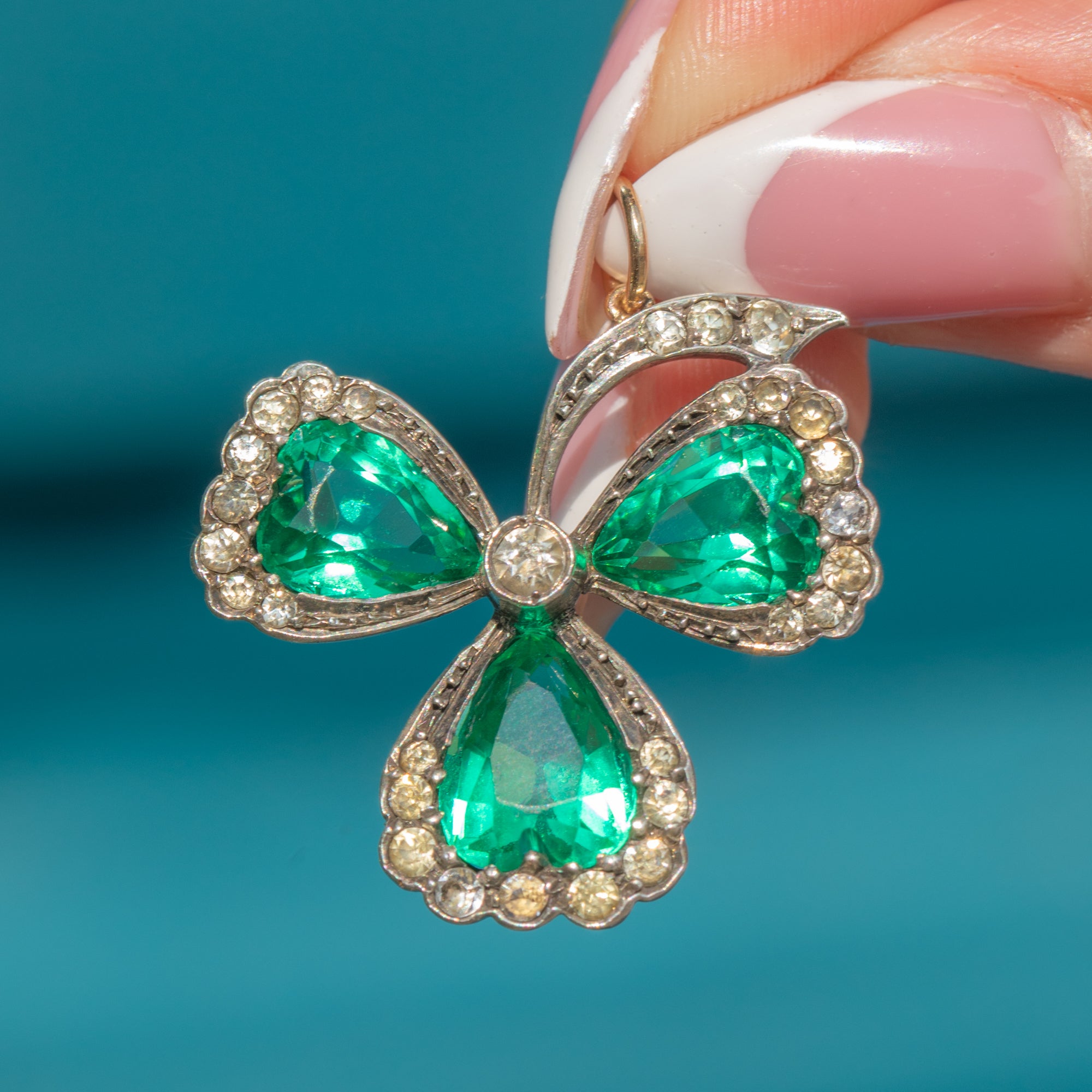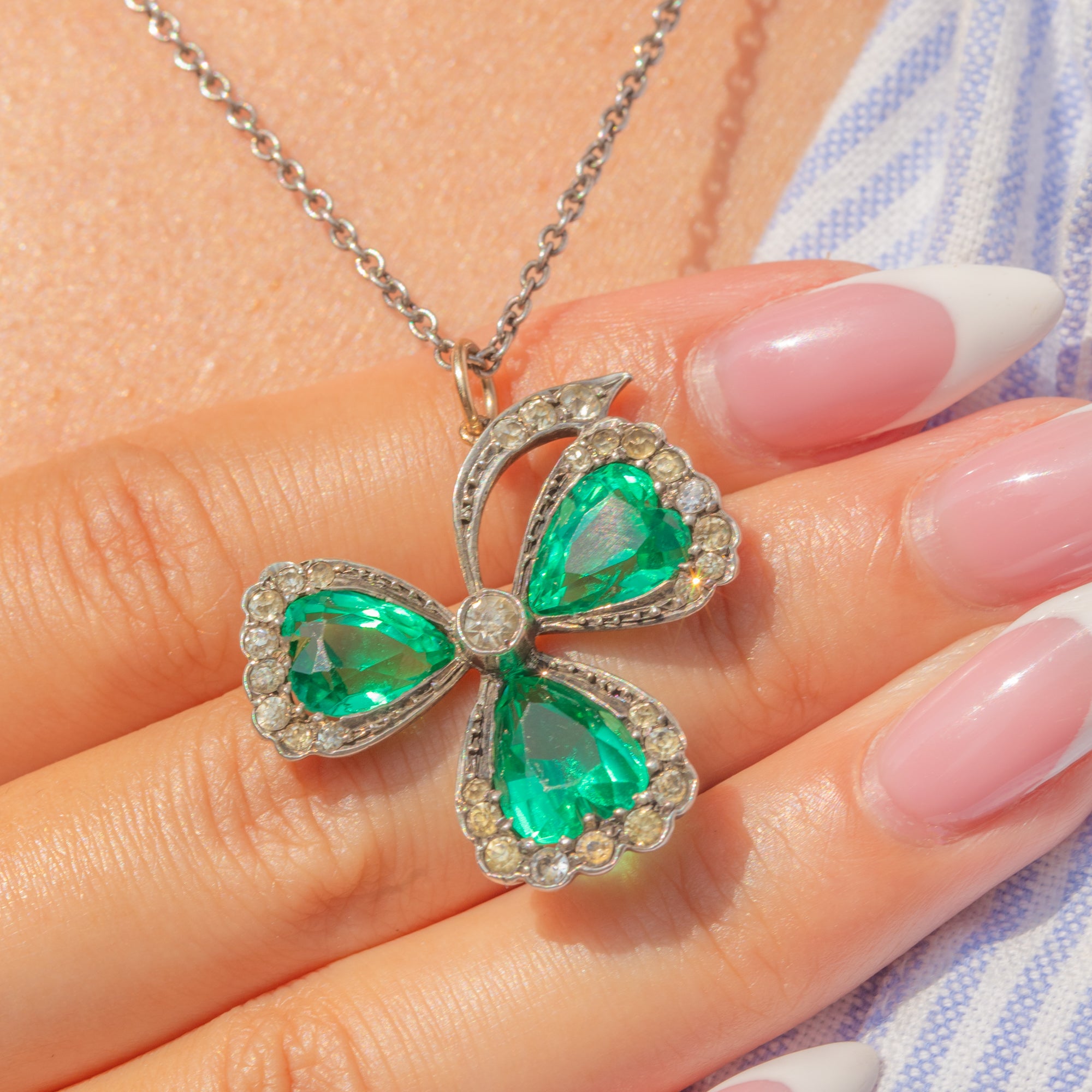 Rich in symbolism, the shamrock was a popular motif in Victorian jewellery, representing luck and love. This pendant combines the charm of antique craftsmanship with striking colour and sparkle, making it a perfect keepsake or gift.