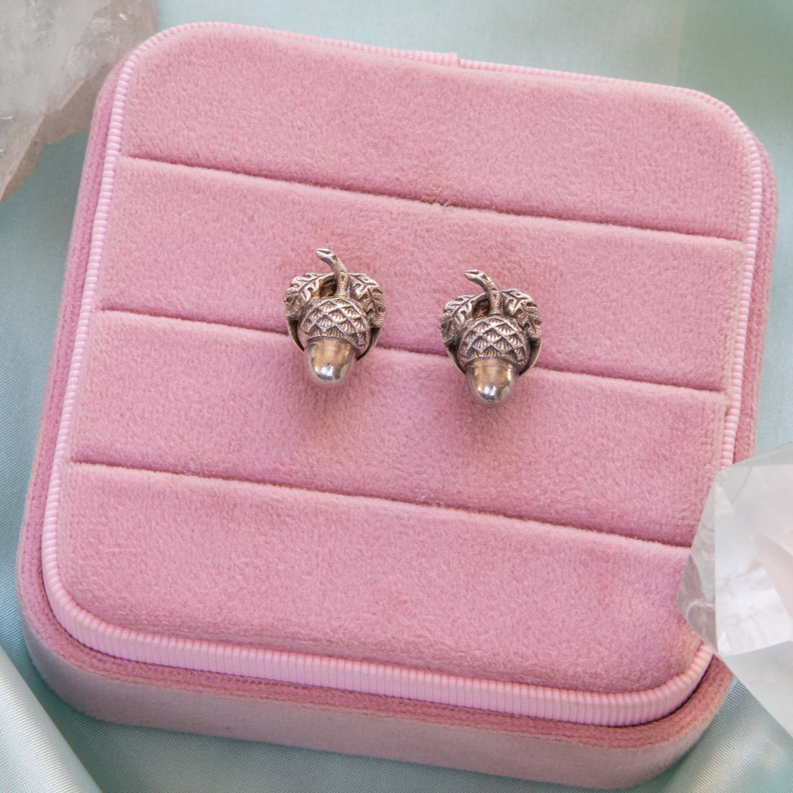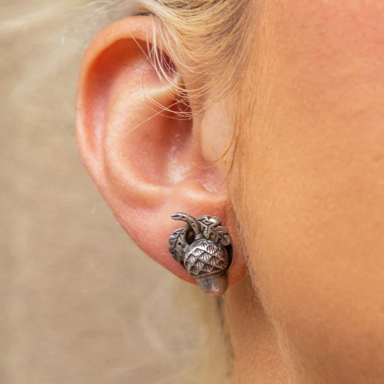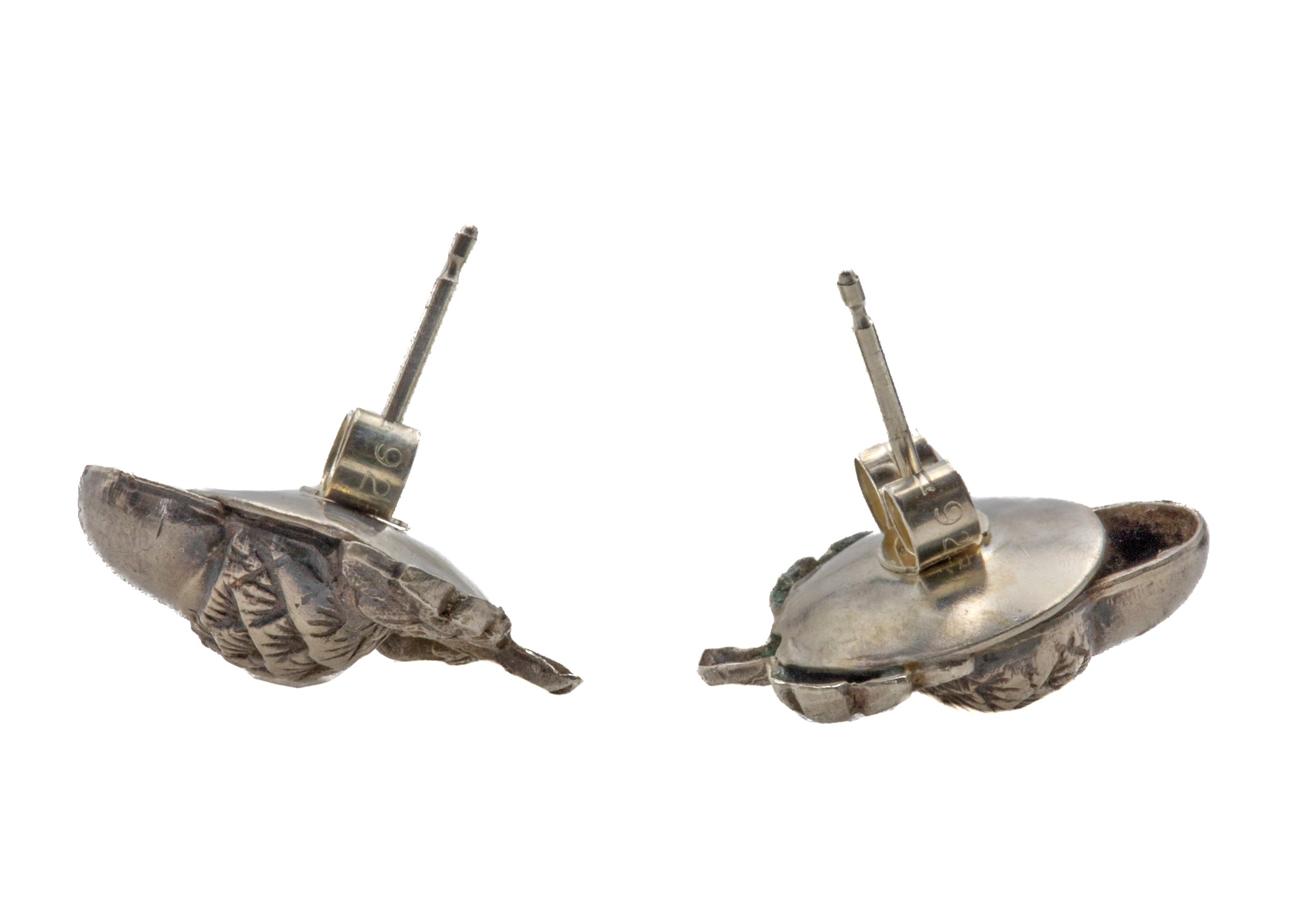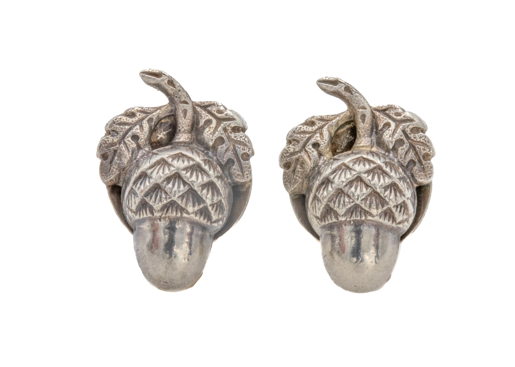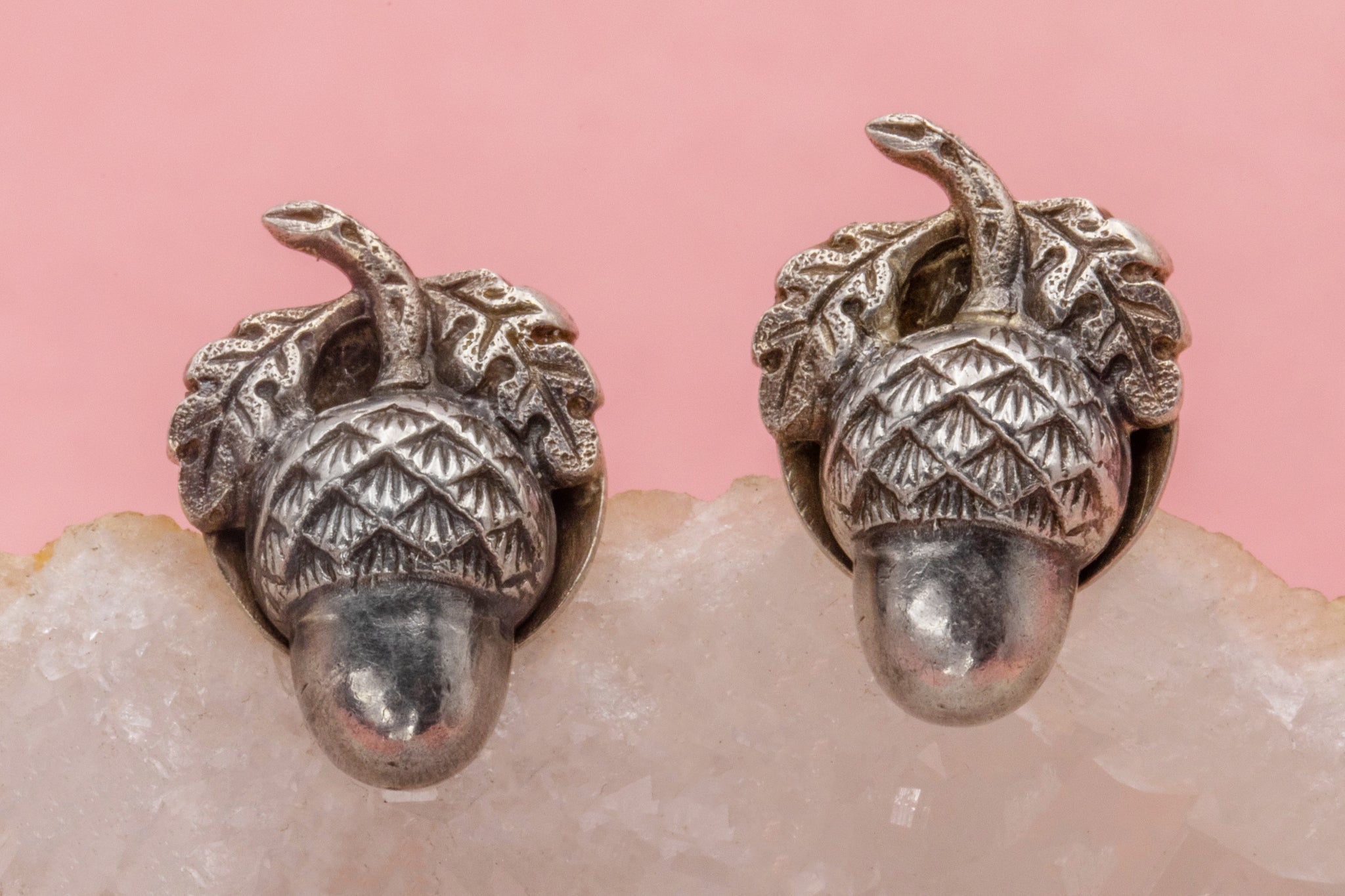 アンティークスターリングシルバーどんぐりスタッドピアス