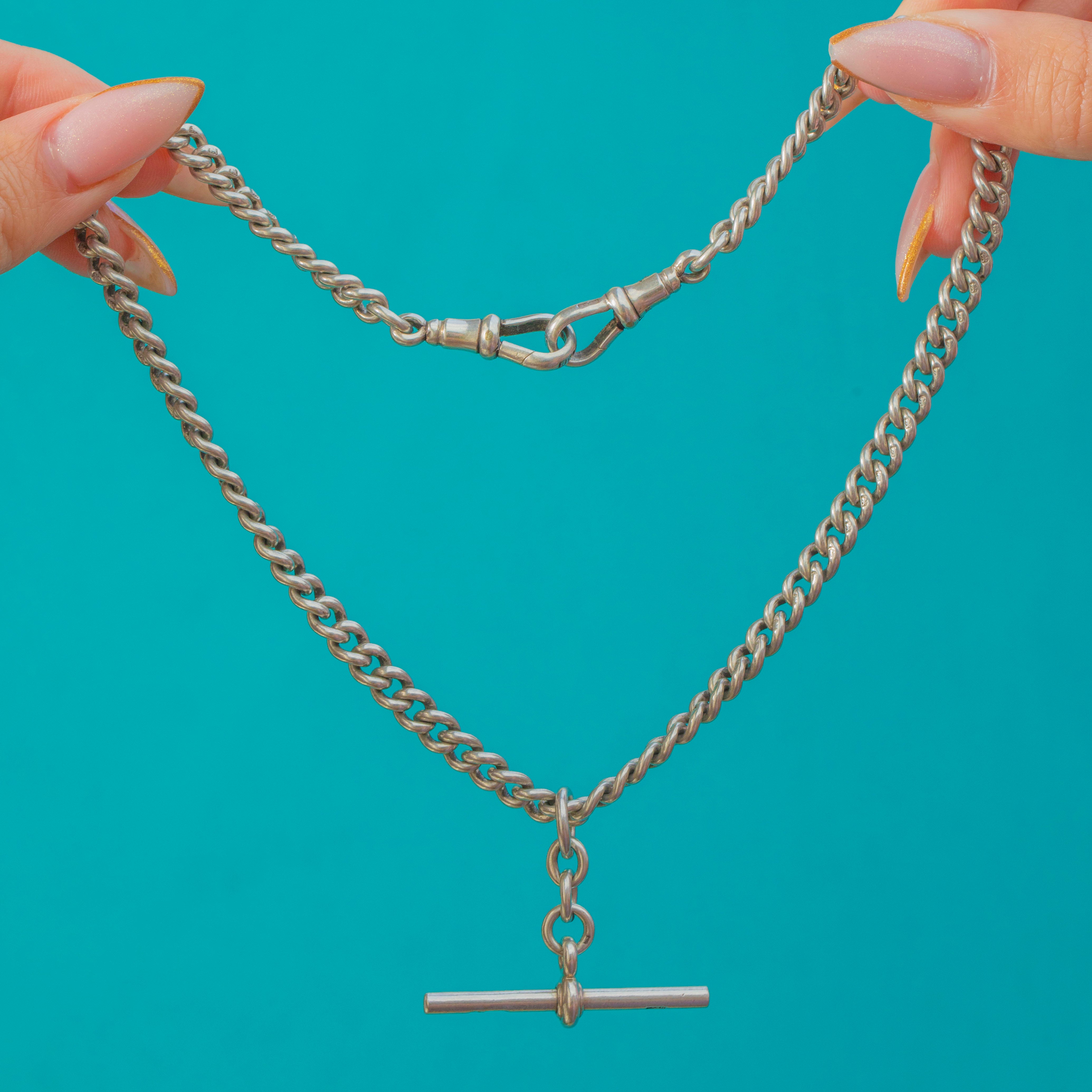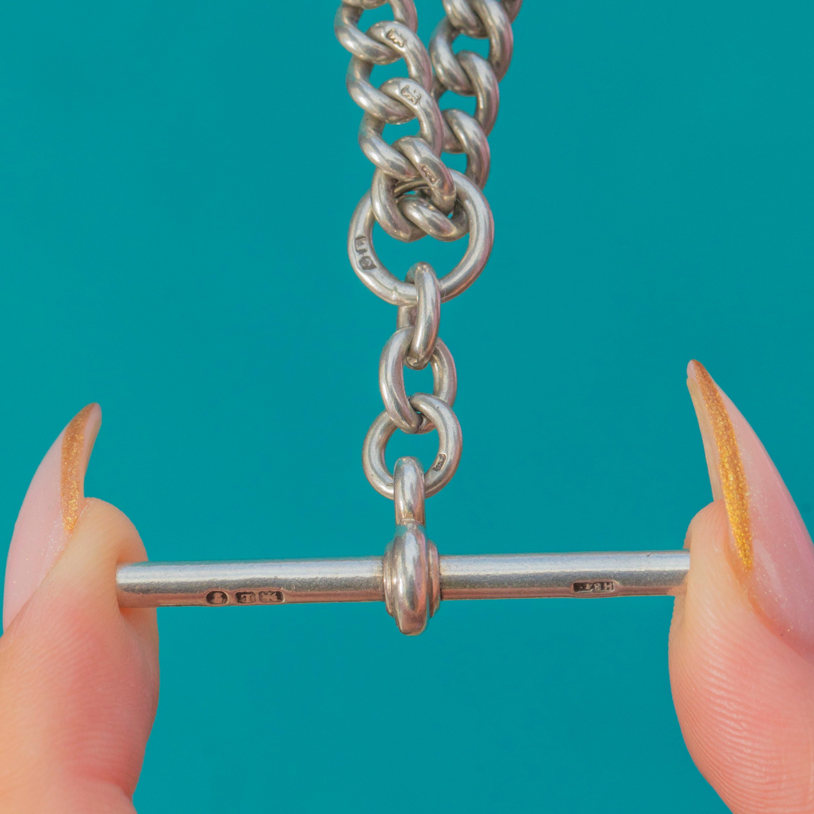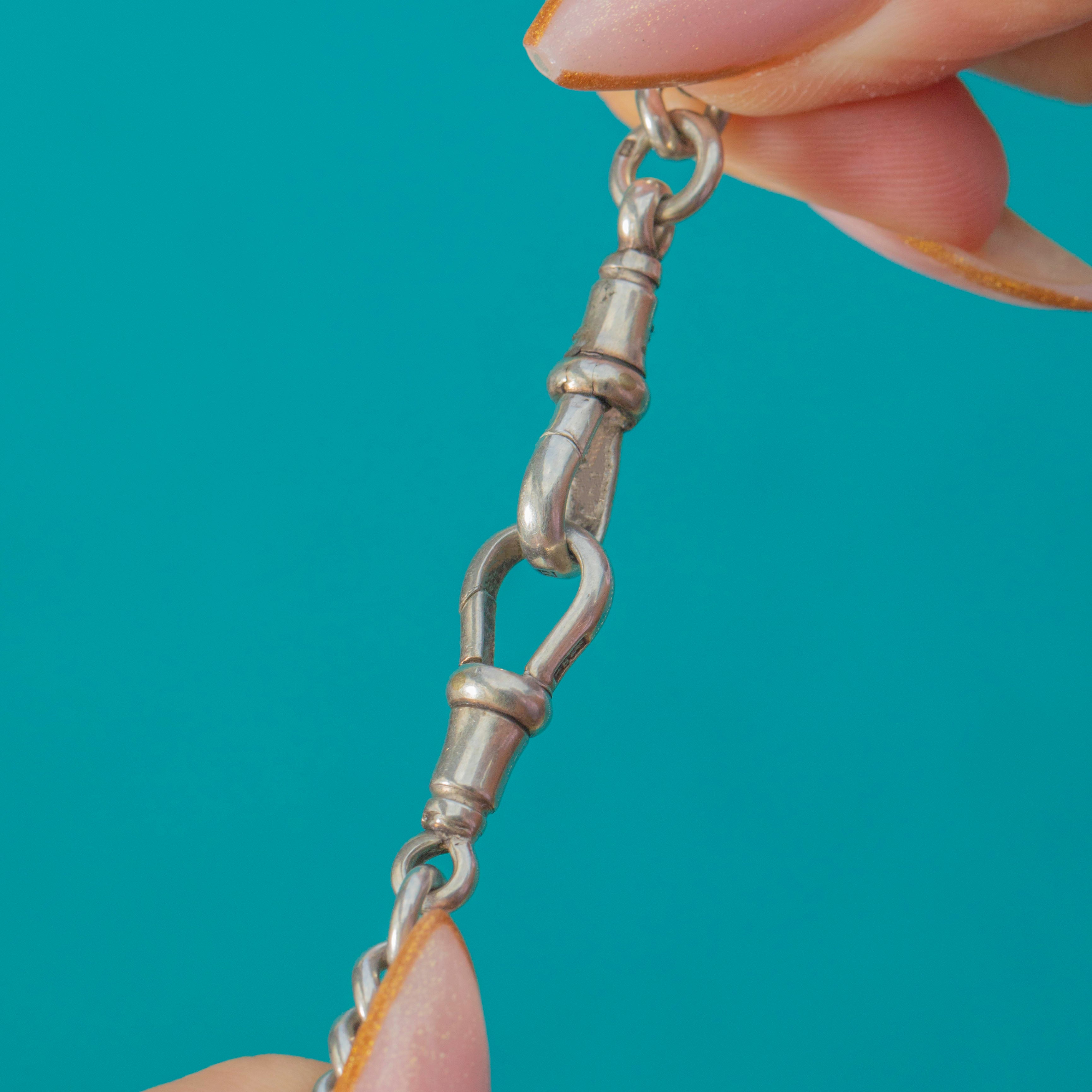 アンティーク スターリングシルバー アルバートチェーン モバイルTバー&マッチングドッグクリップ付き