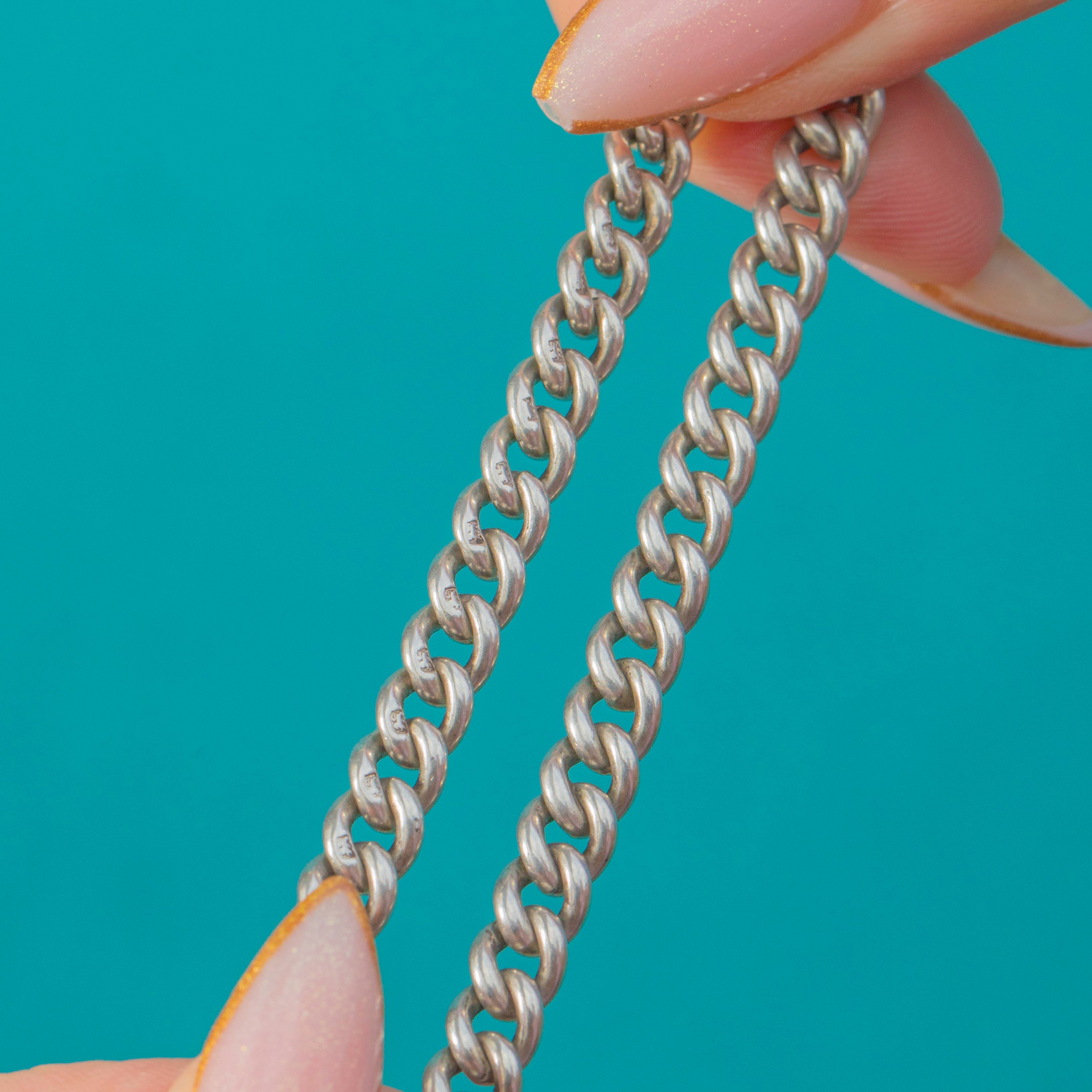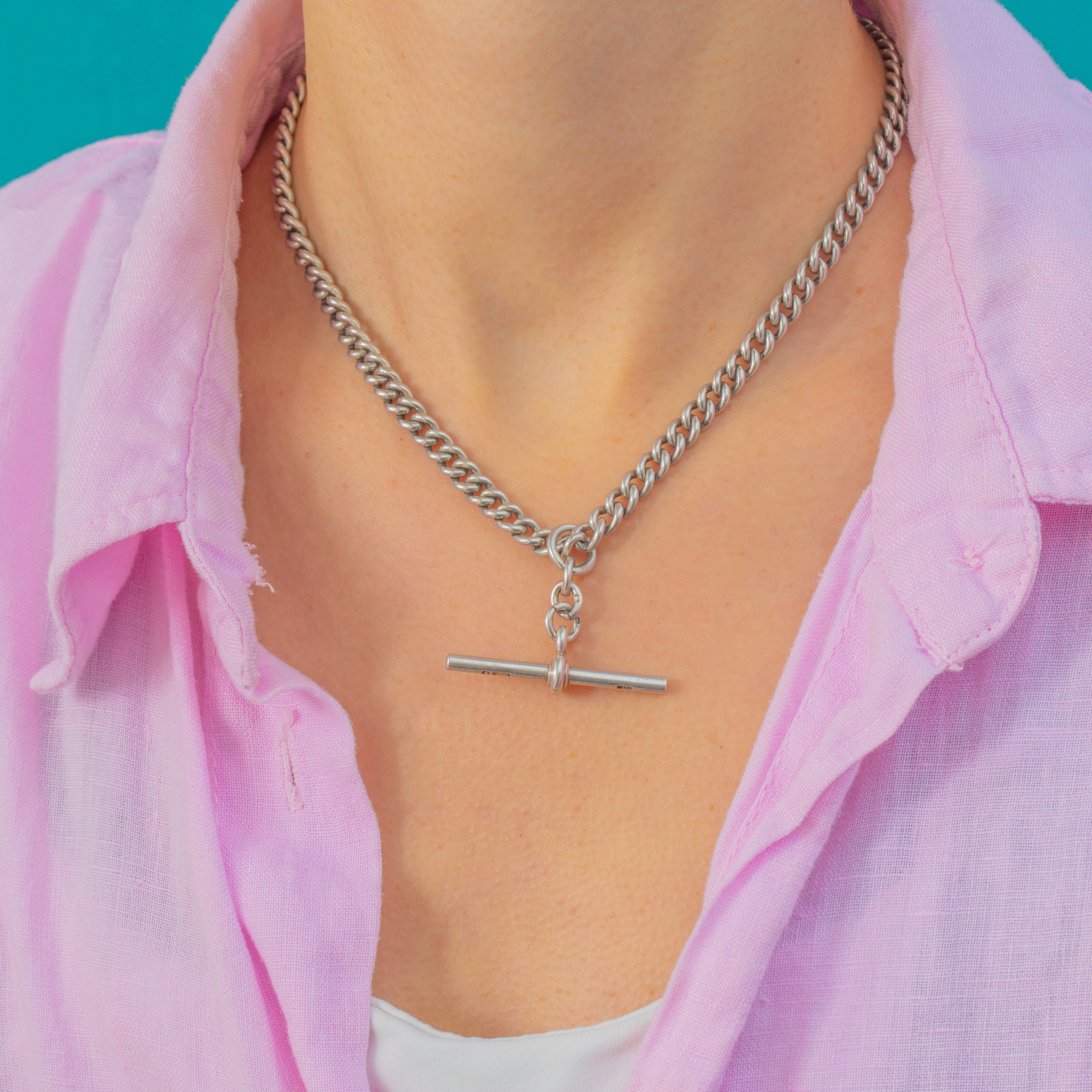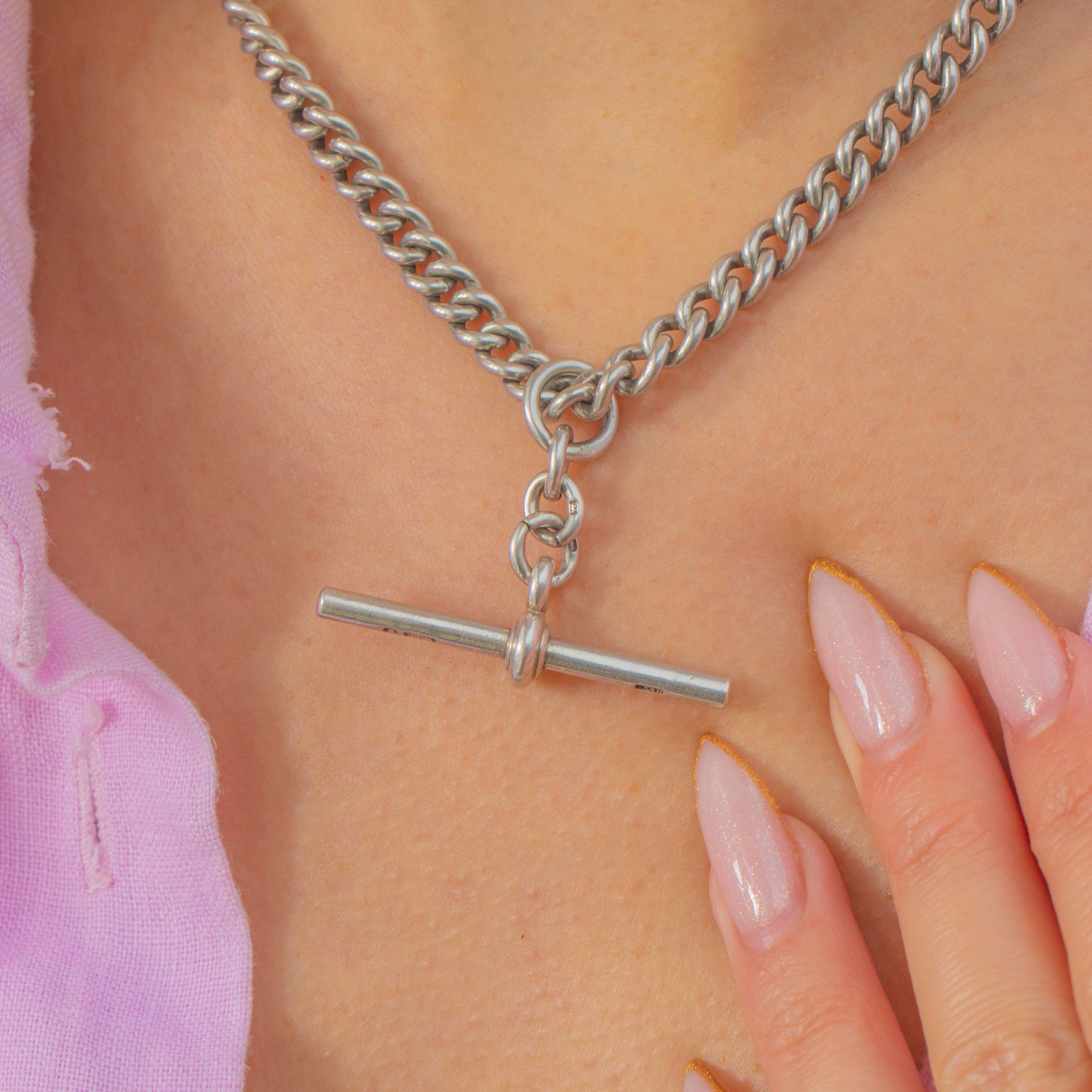 アンティーク スターリングシルバー アルバートチェーン モバイルTバー&マッチングドッグクリップ付き