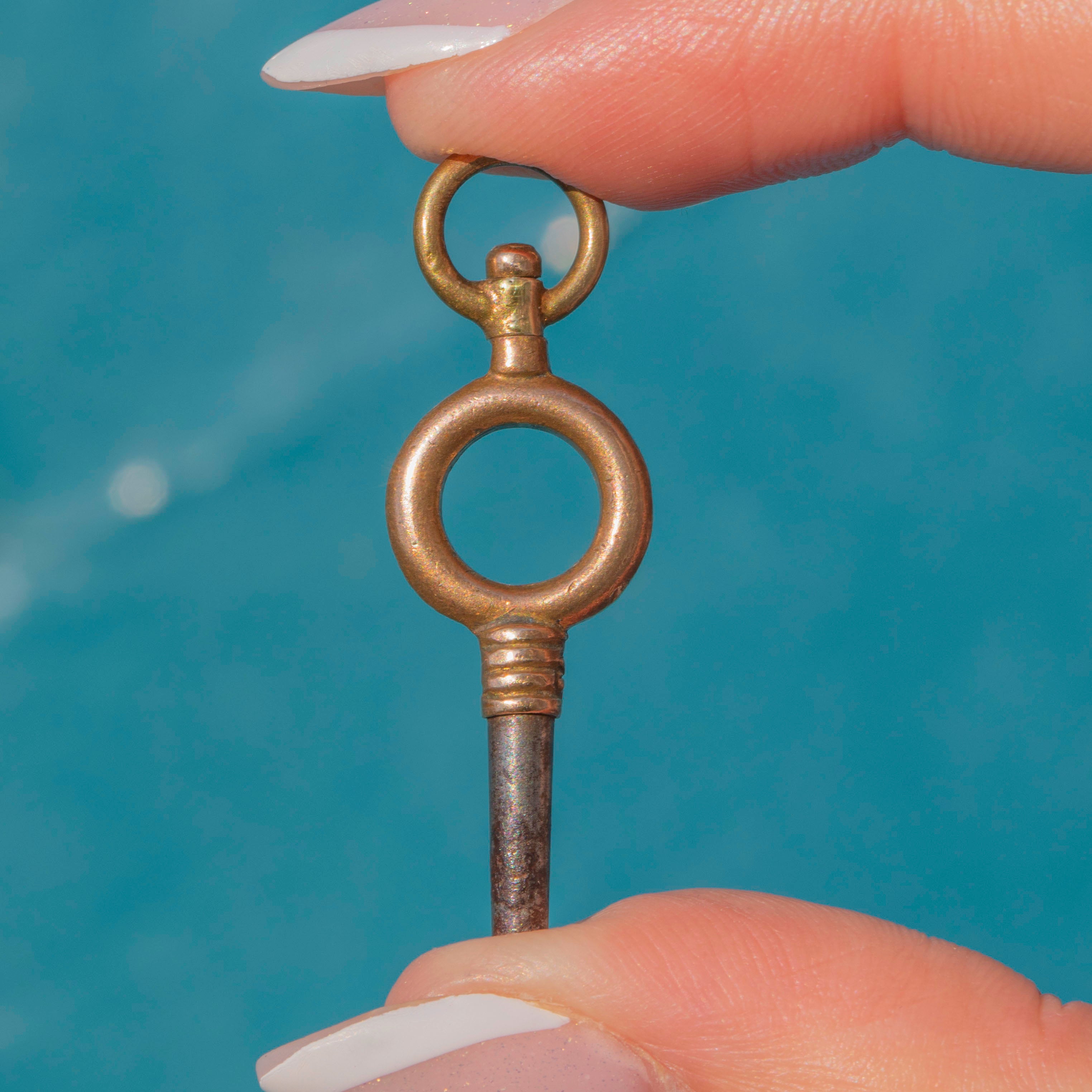 Boasting the most charming clock face with Gold dial detailing and electric Blue Enamel Roman numerals, this piece is straight out of an old-time fairytale! She even comes with her very own watch key, with which you can wind her up and hear her tick and tock for years to come. Time to introduce your new favourite antique to your collection!