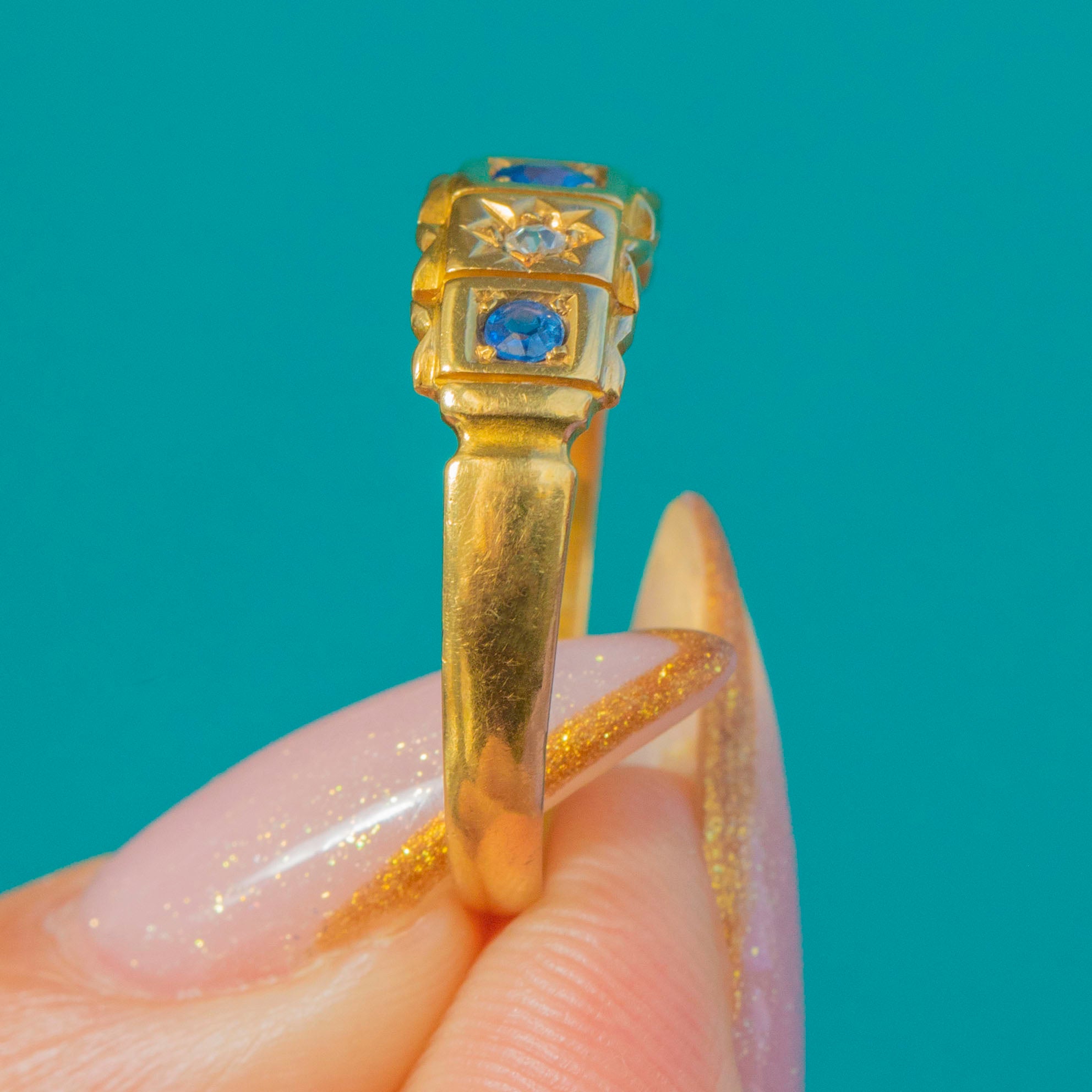 Antique Victorian 18ct Gold Sapphire Diamond Star-Set Gypsy Ring, c.1889