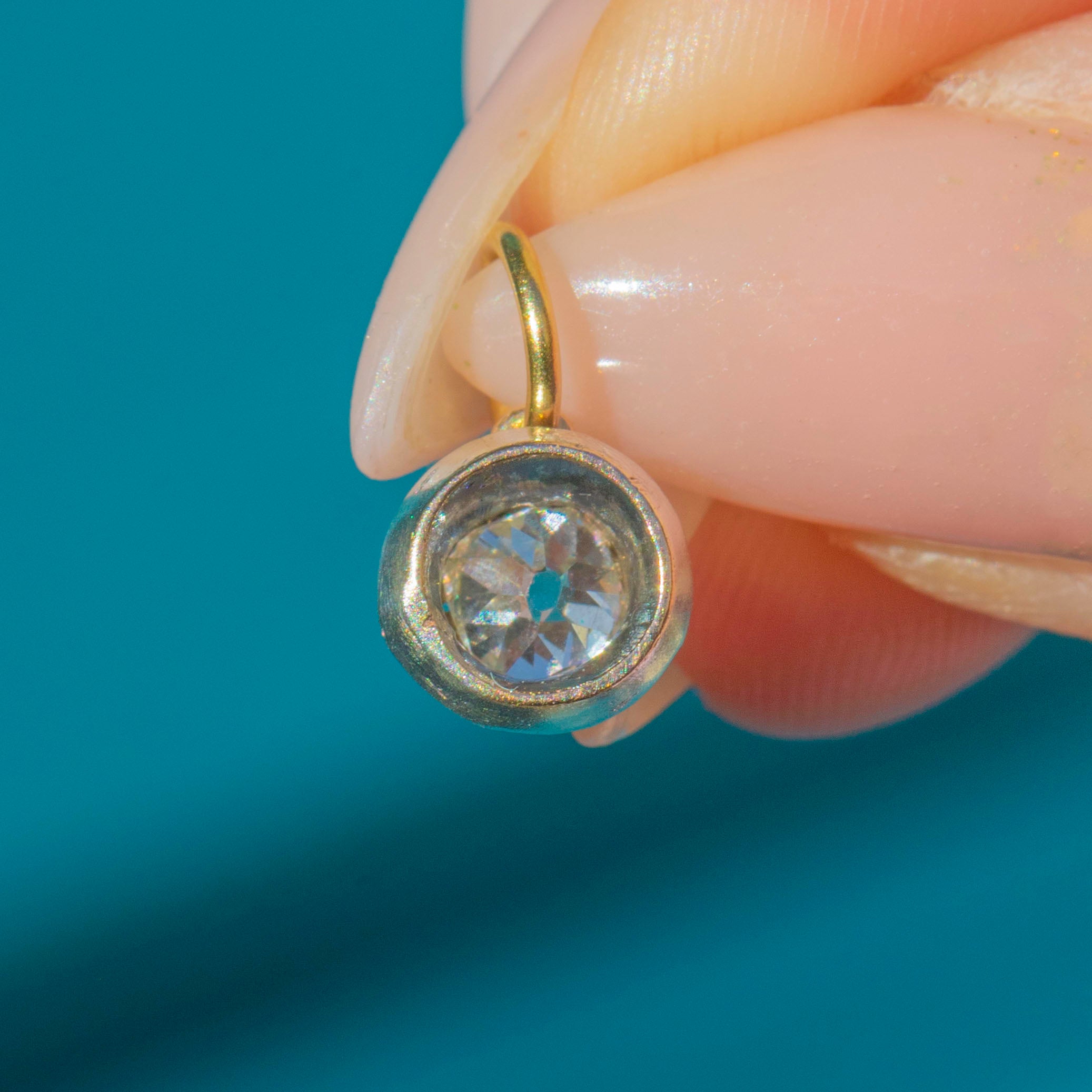 Antique Victorian Old Mine Cut Diamond Charm 0.30ct- 18ct Gold & Silver