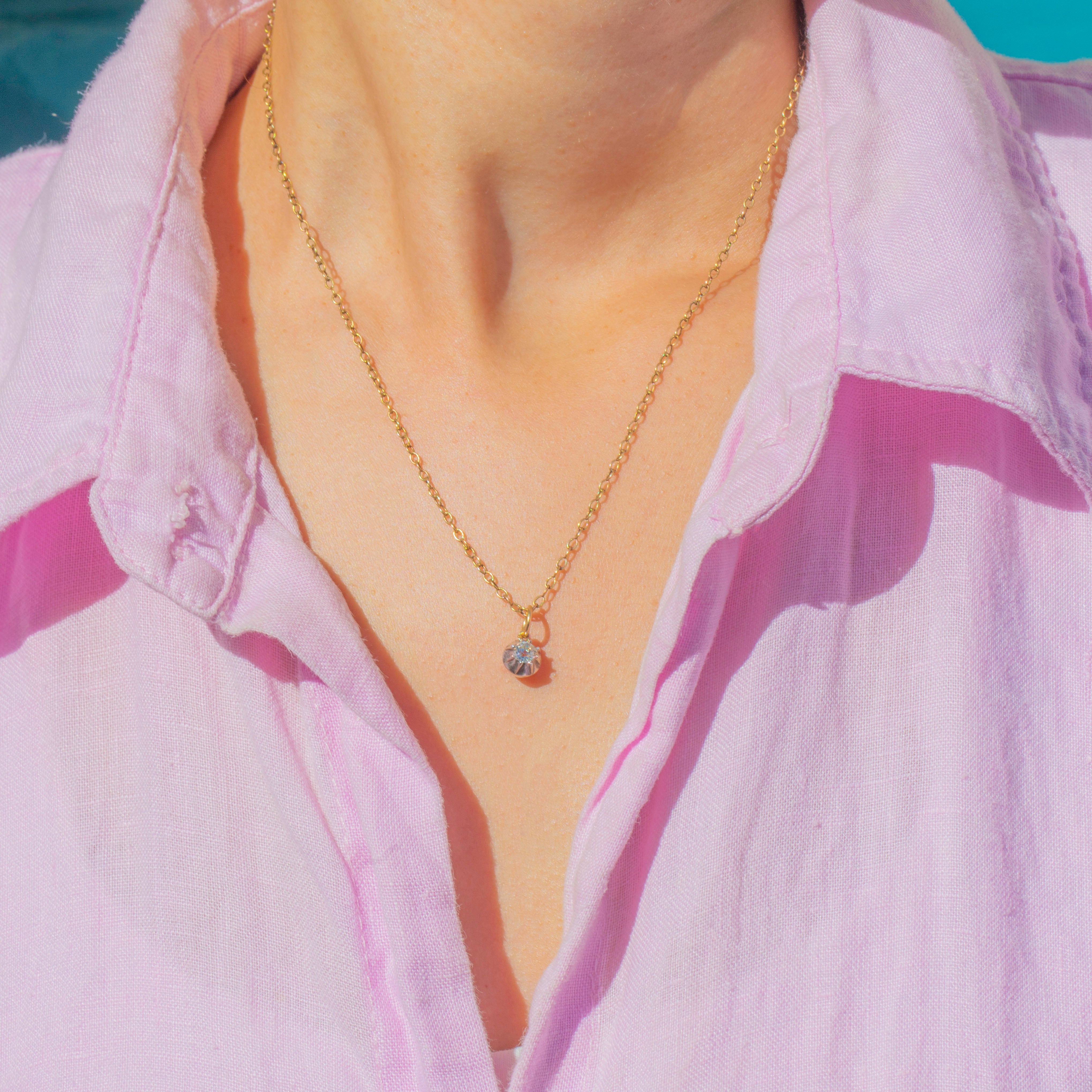 The Diamond is mounted in a traditional Sterling Silver collet backed in rich 18ct Gold, finished with an 18ct Gold jump ring. A classic and impactful jewel, it would make a wonderful addition to a charm bracelet or look elegant suspended on a fine antique chain.