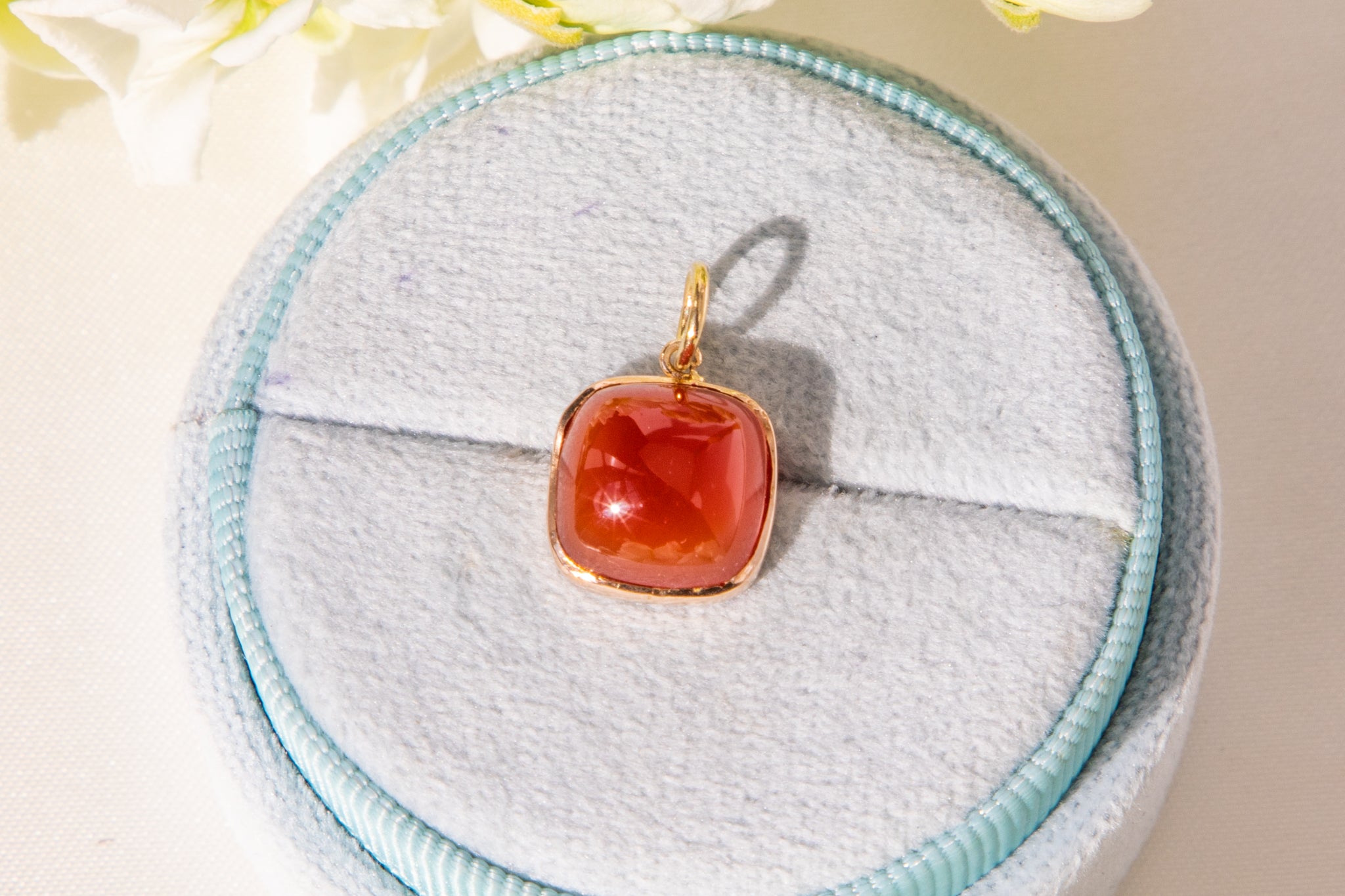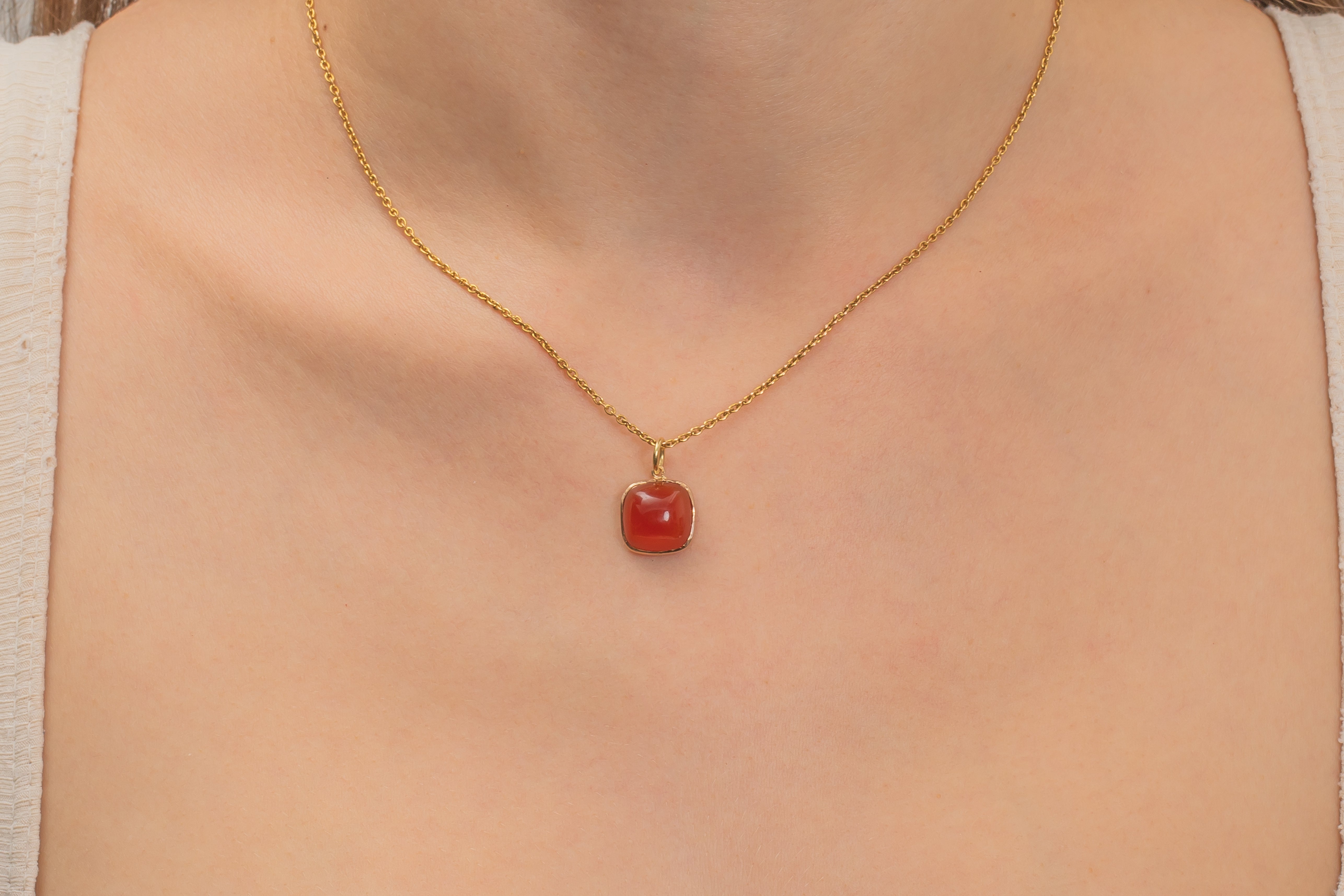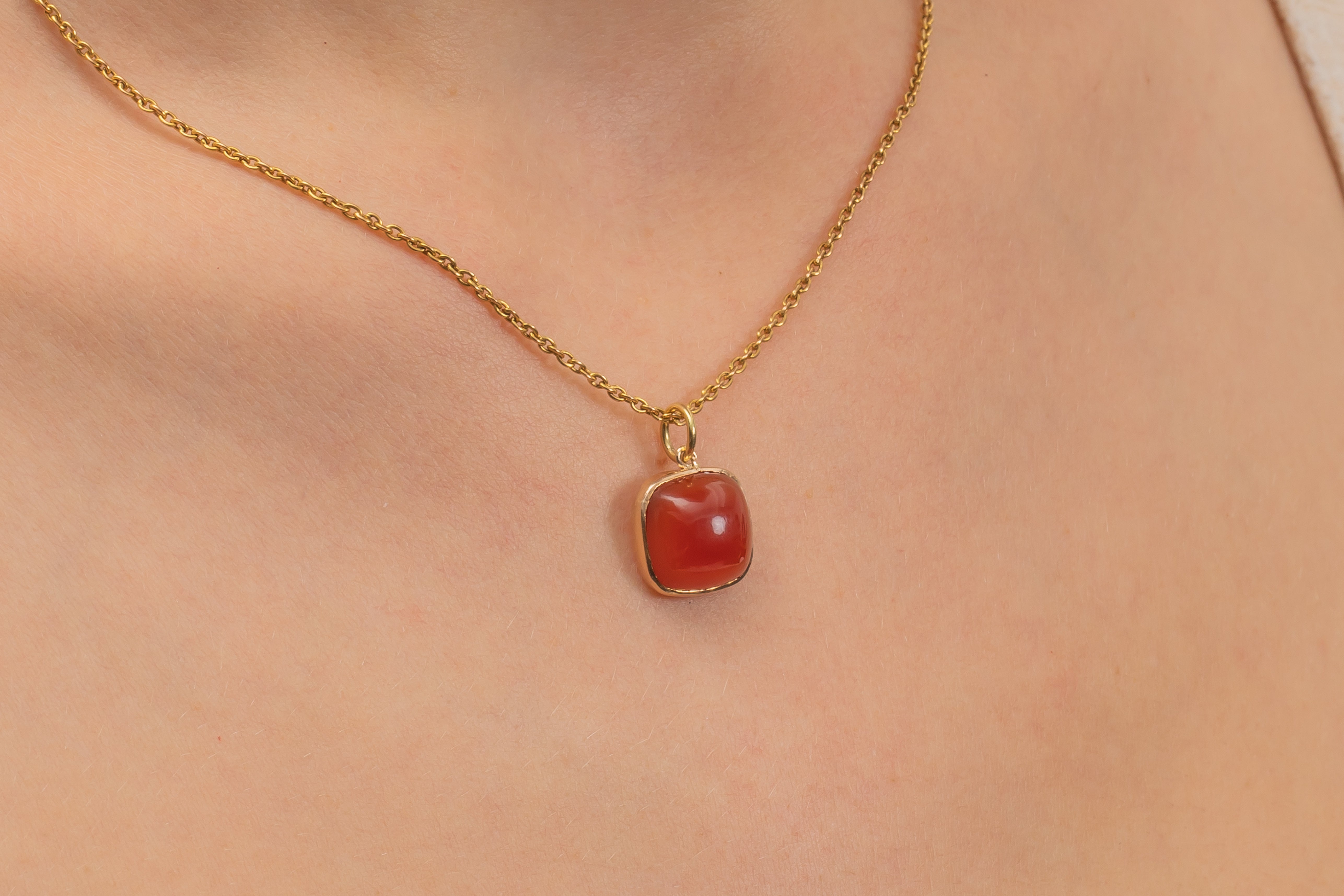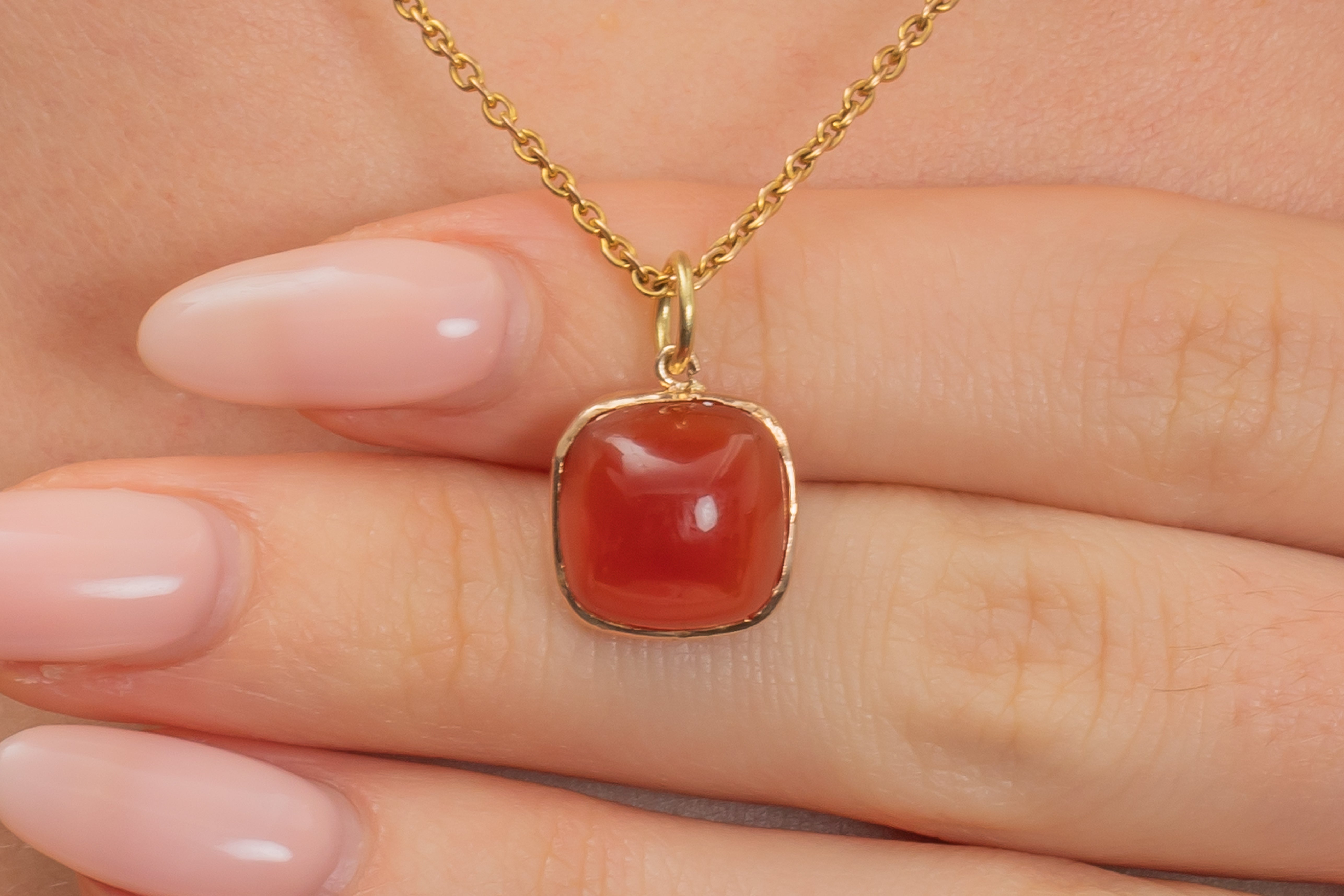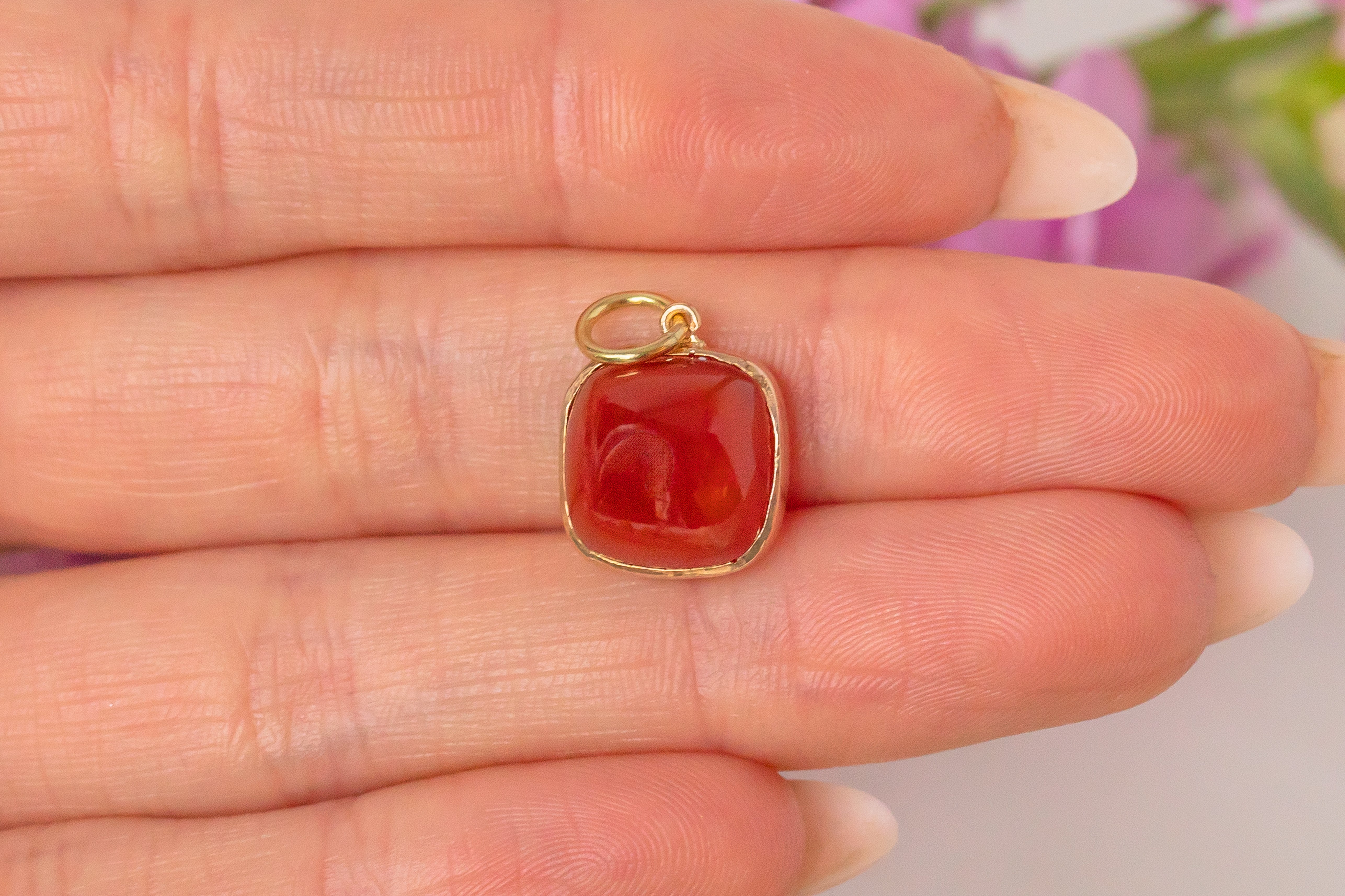 アールデコ 14ct ゴールド カーネリアン シュガーローフ ペンダント