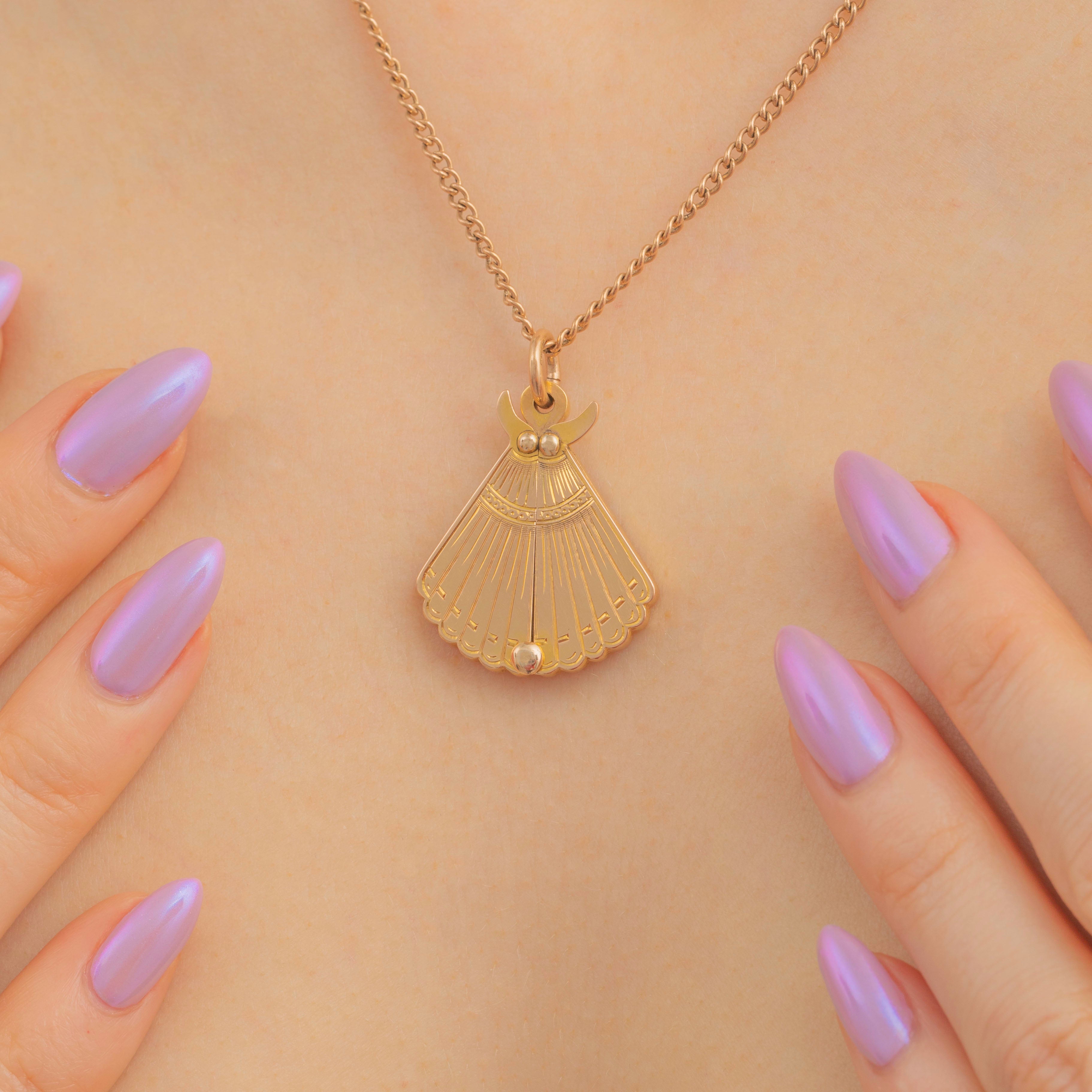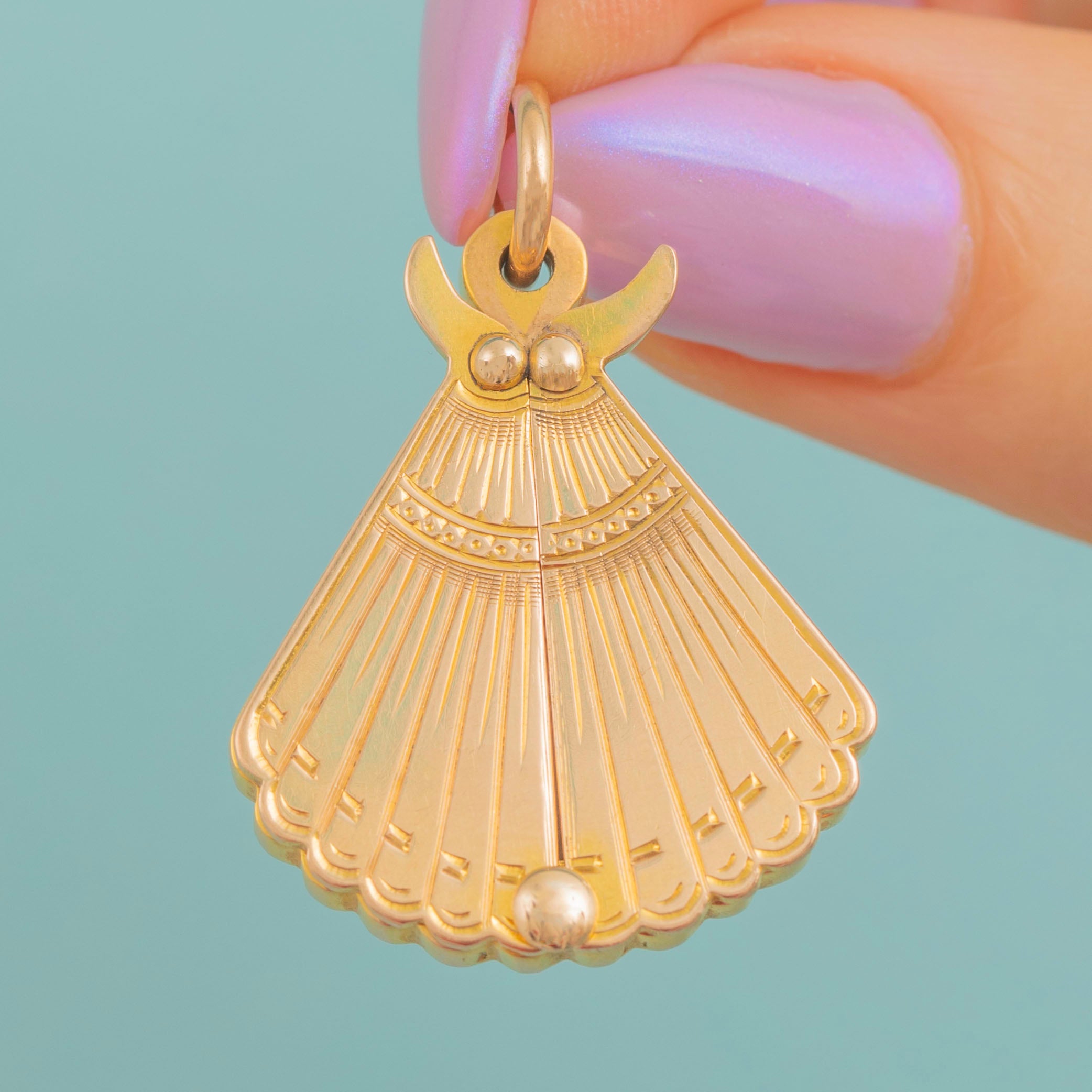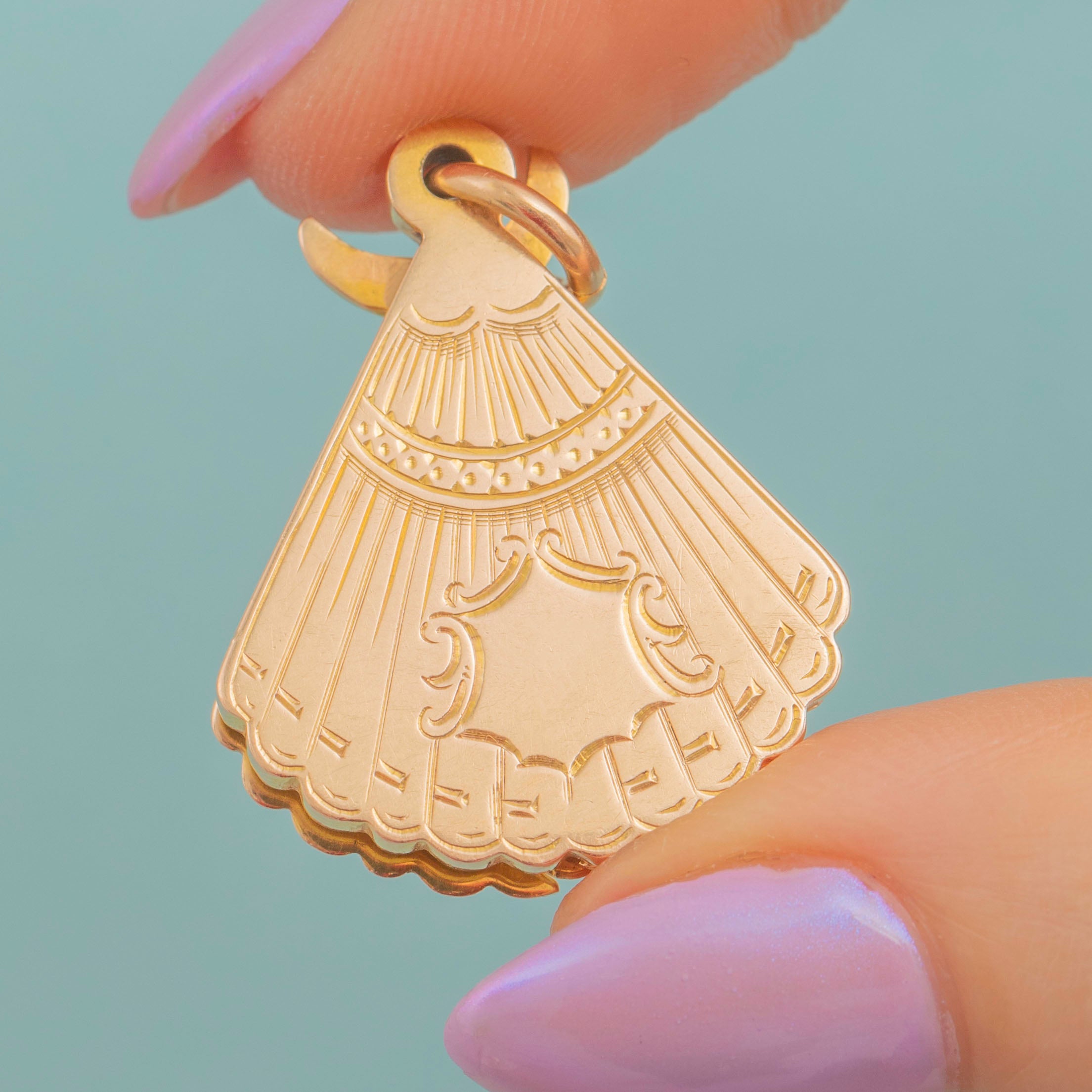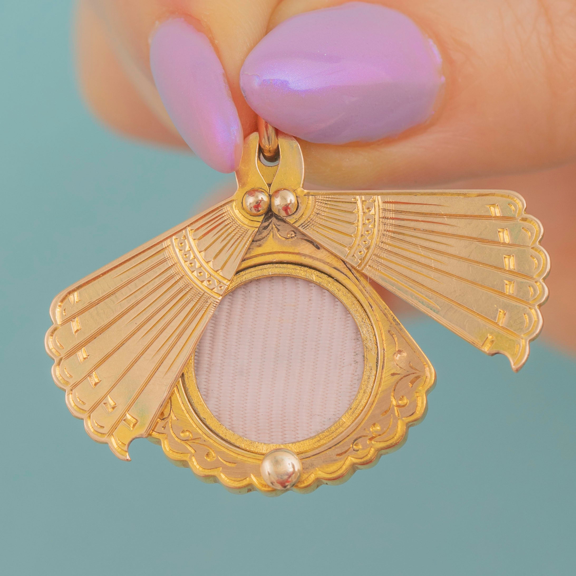 We are obsessing over this early Art Deco 15ct Gold engraved fan locket! This locket has been beautifully crafted into the shape of a fan, a popular motif in the Art Deco style, and opens to reveal space for a cherished photograph to be placed.