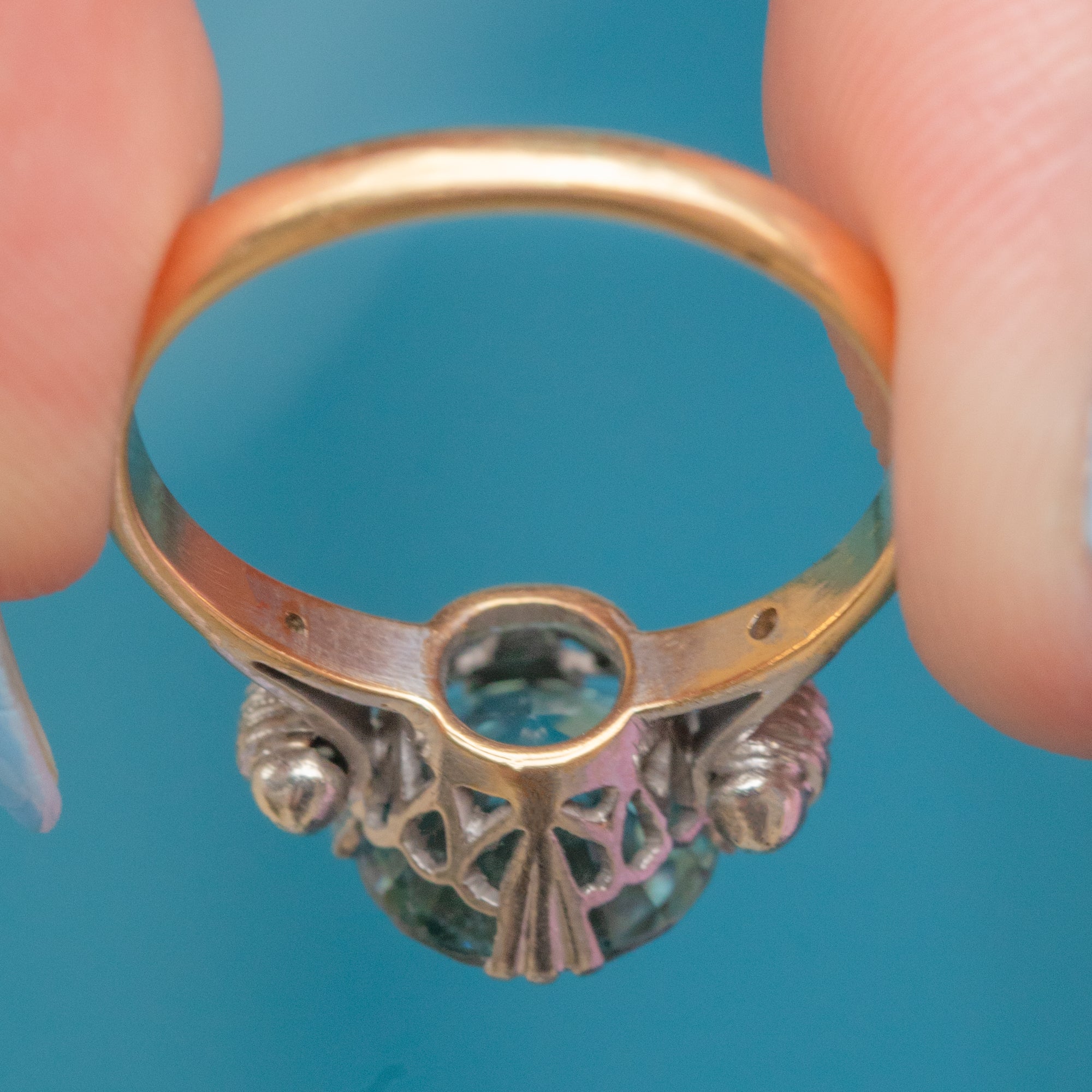 Art Deco 18ct Gold Blue Zircon Diamond Ring, 2.90ct Zircon