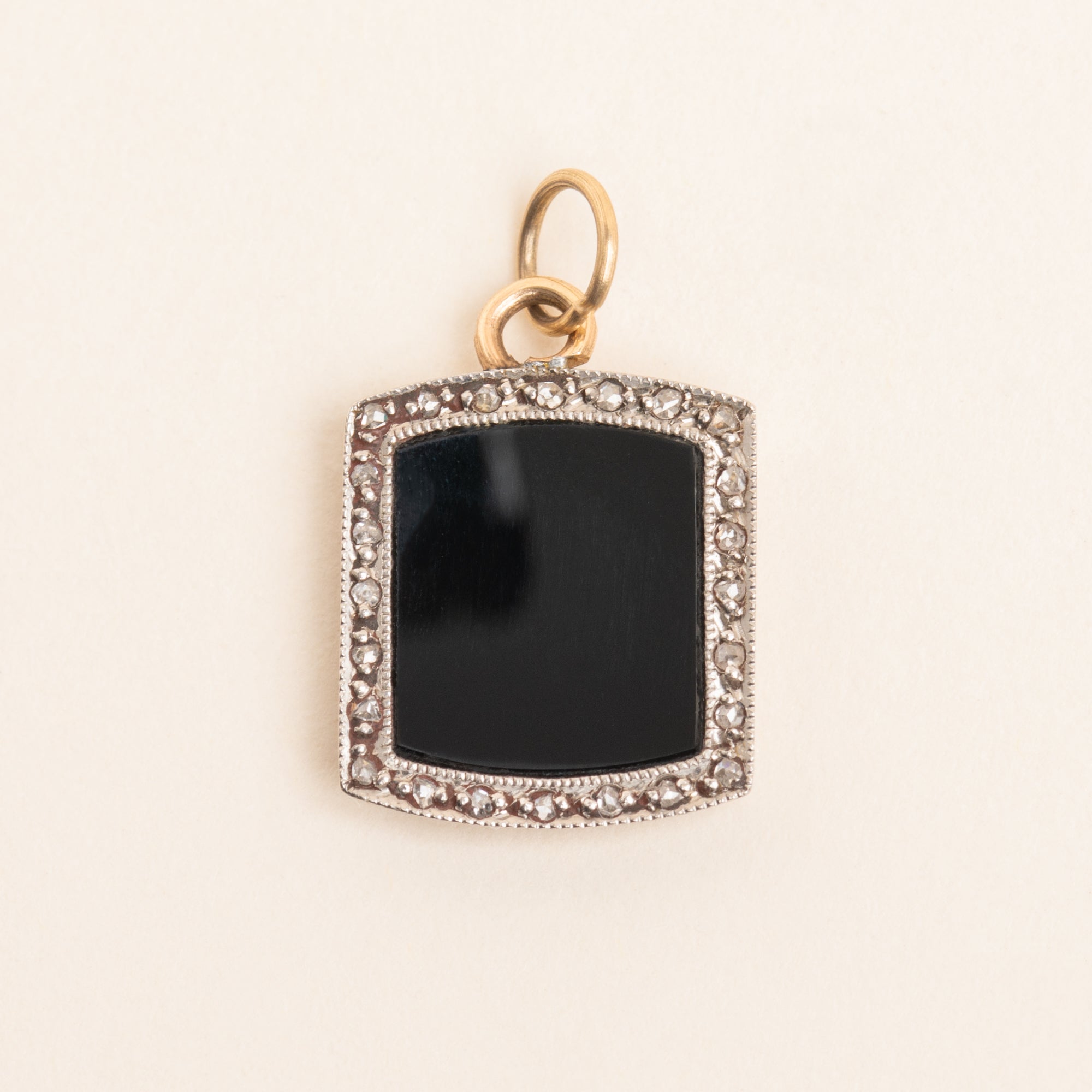 Art Deco 18ct Gold Onyx Diamond Panel Charm