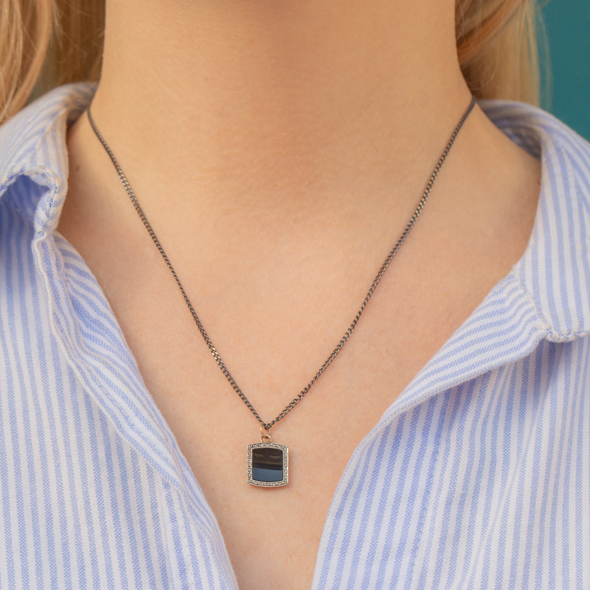 Bring some sophistication to your pendant collection with this striking Art Deco 18ct Gold Onyx Diamond panel charm! With a satisfying cut of Onyx and a twinkling border of Diamonds, this rare Art Deco charm is both luxurious and versatile.