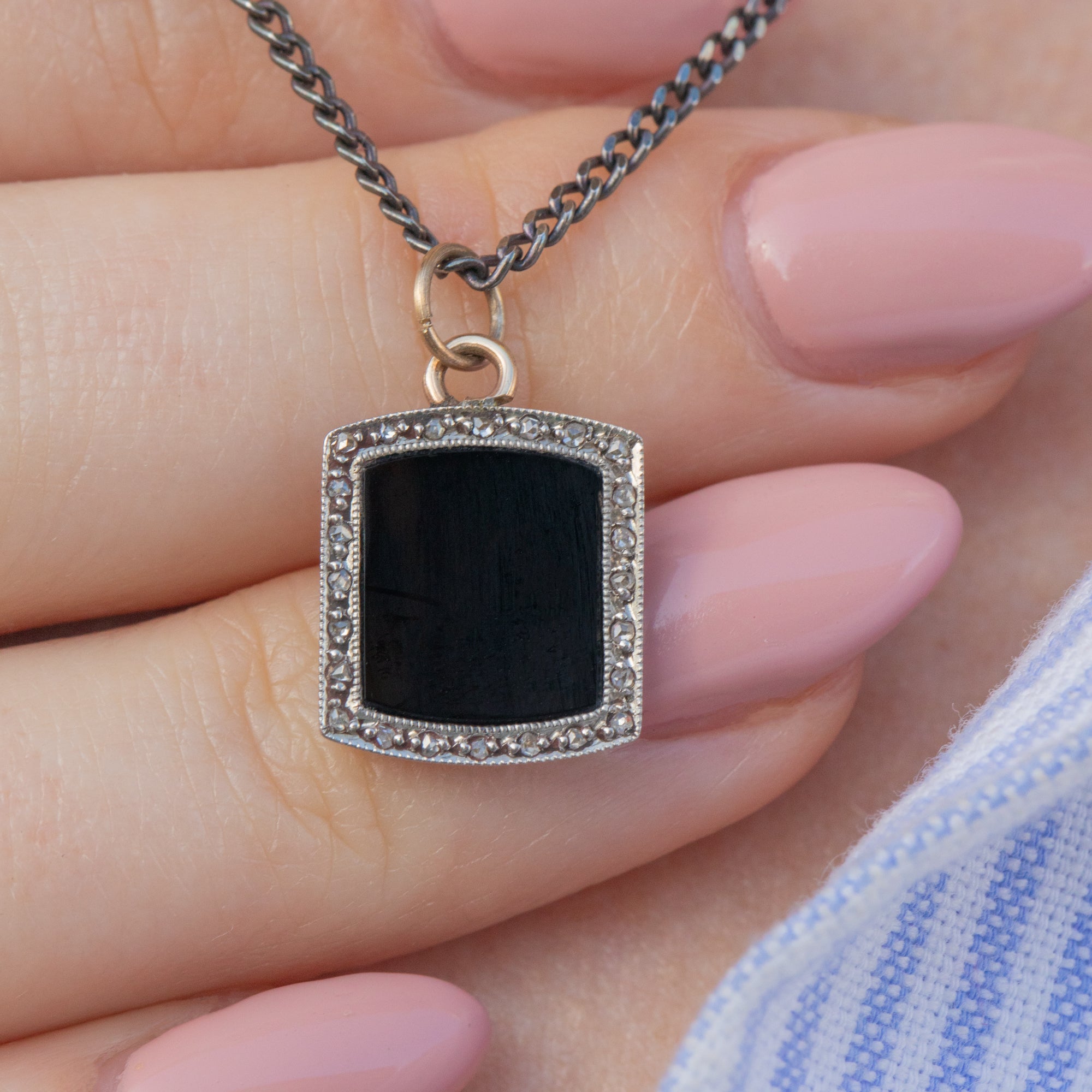 Weighing in at just over a gram, this antique Onyx charm is perfect for daily wear and with her gorgeously glossy 18ct White Gold, she's a real treat!