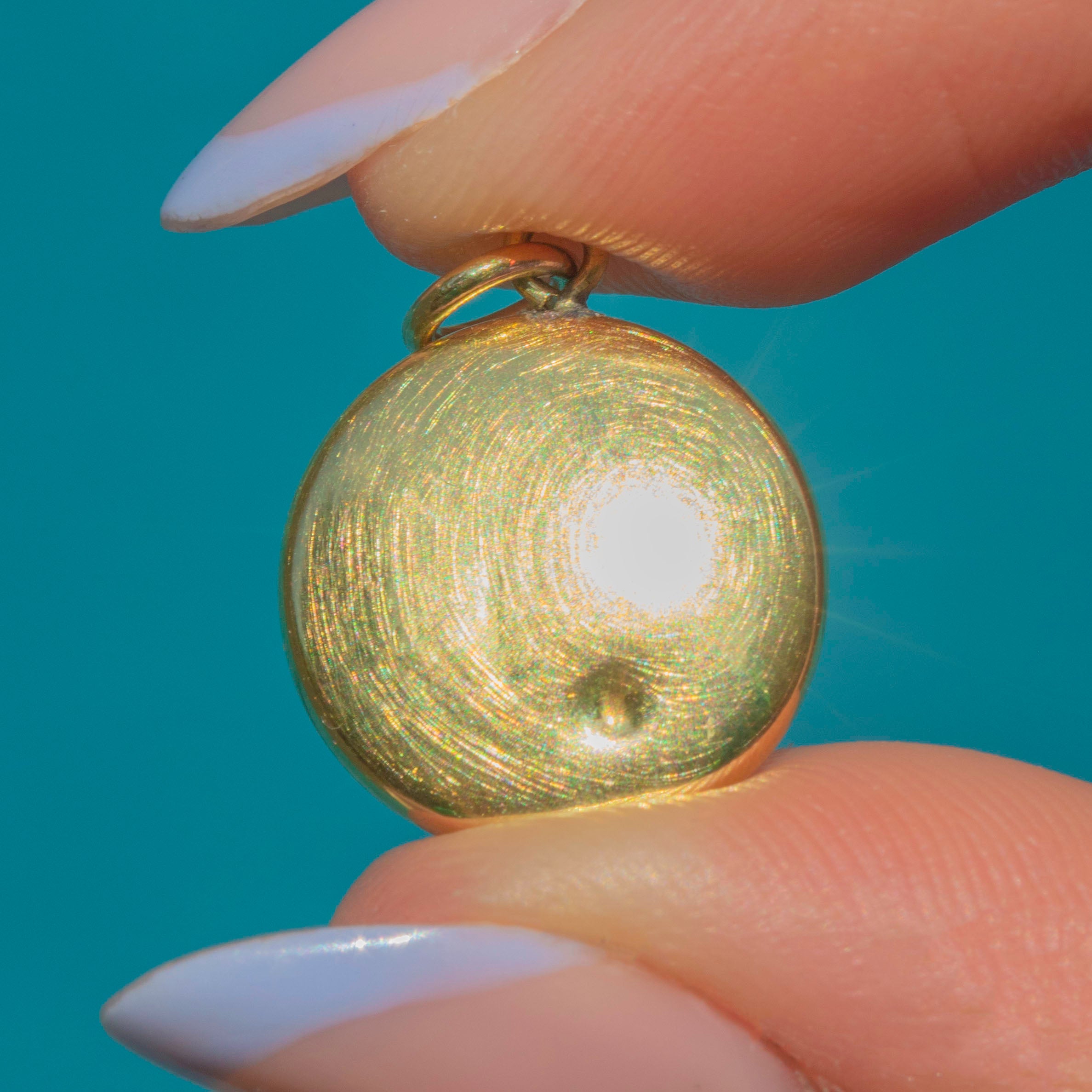 VERY GOOD: This Art Deco 18ct Gold red Enamel Mother of Pearl Diamond charm is in very good condition. On the whole, this pendant has lasted well, with the Enamel and gemstones all free from notable damage. Under close inspection, there is a small amount of wear on the Mother of Pearl around the Diamond setting, but this does not impact the integrity of the piece. There is one notable ding on the back of the pendant, which cannot be seen when the pendant is worn. The Gold is brightly saturated and the jump ring is securely affixed, so you can wear this Art Deco confidently for years to come!