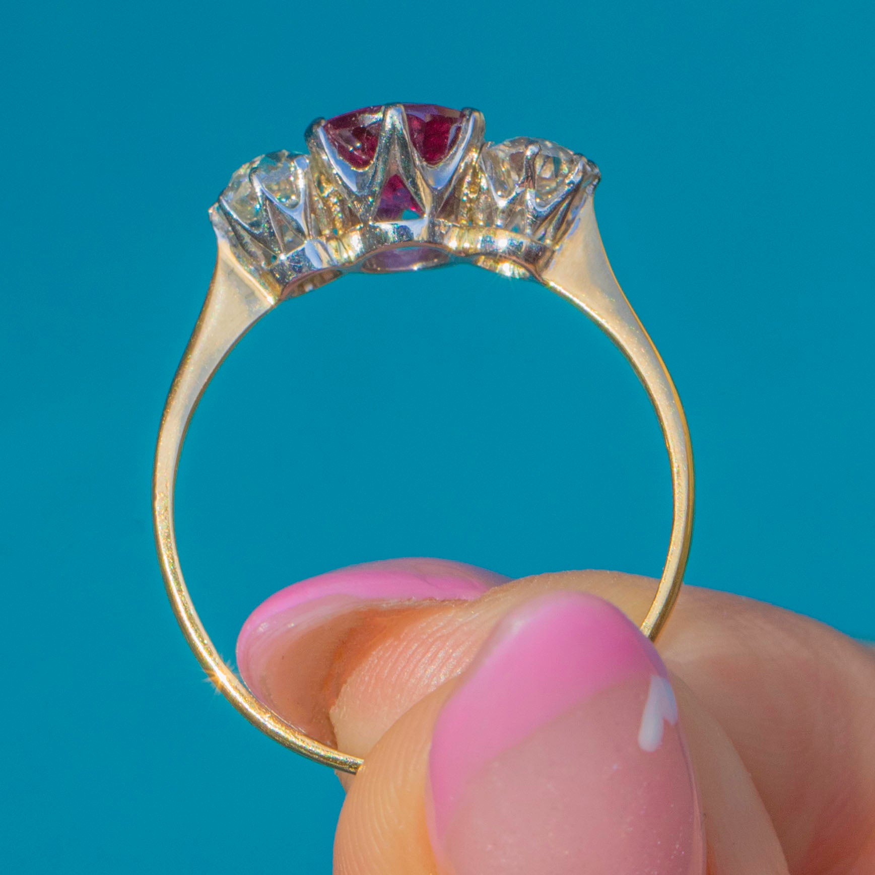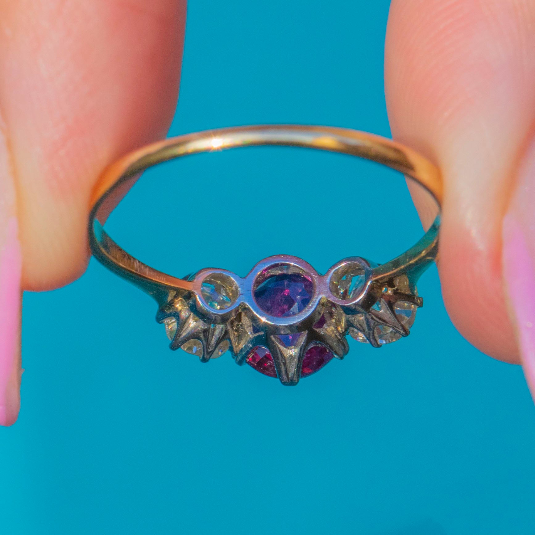 Art Deco 18ct Gold Ruby Diamond Three-Stone Ring c.1920