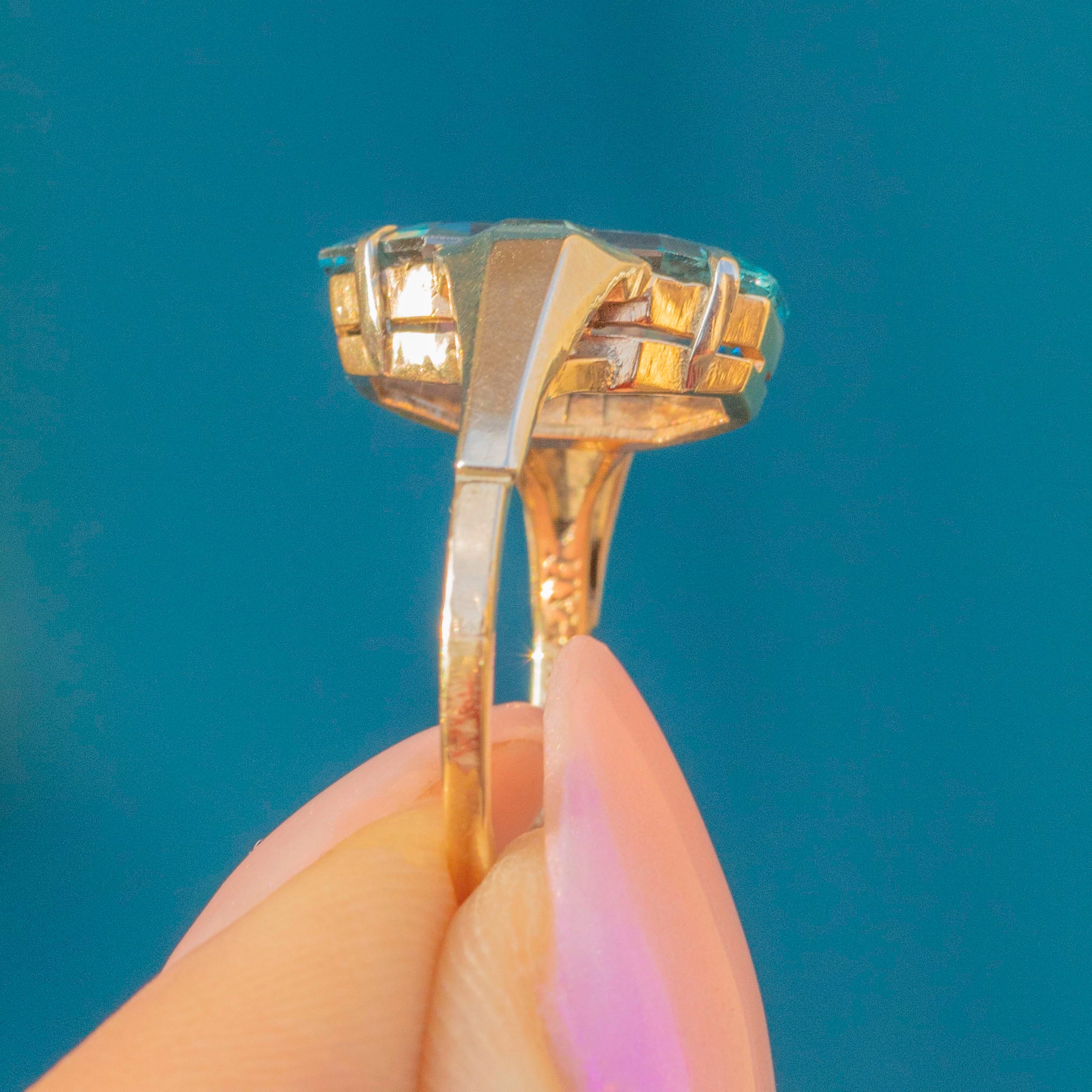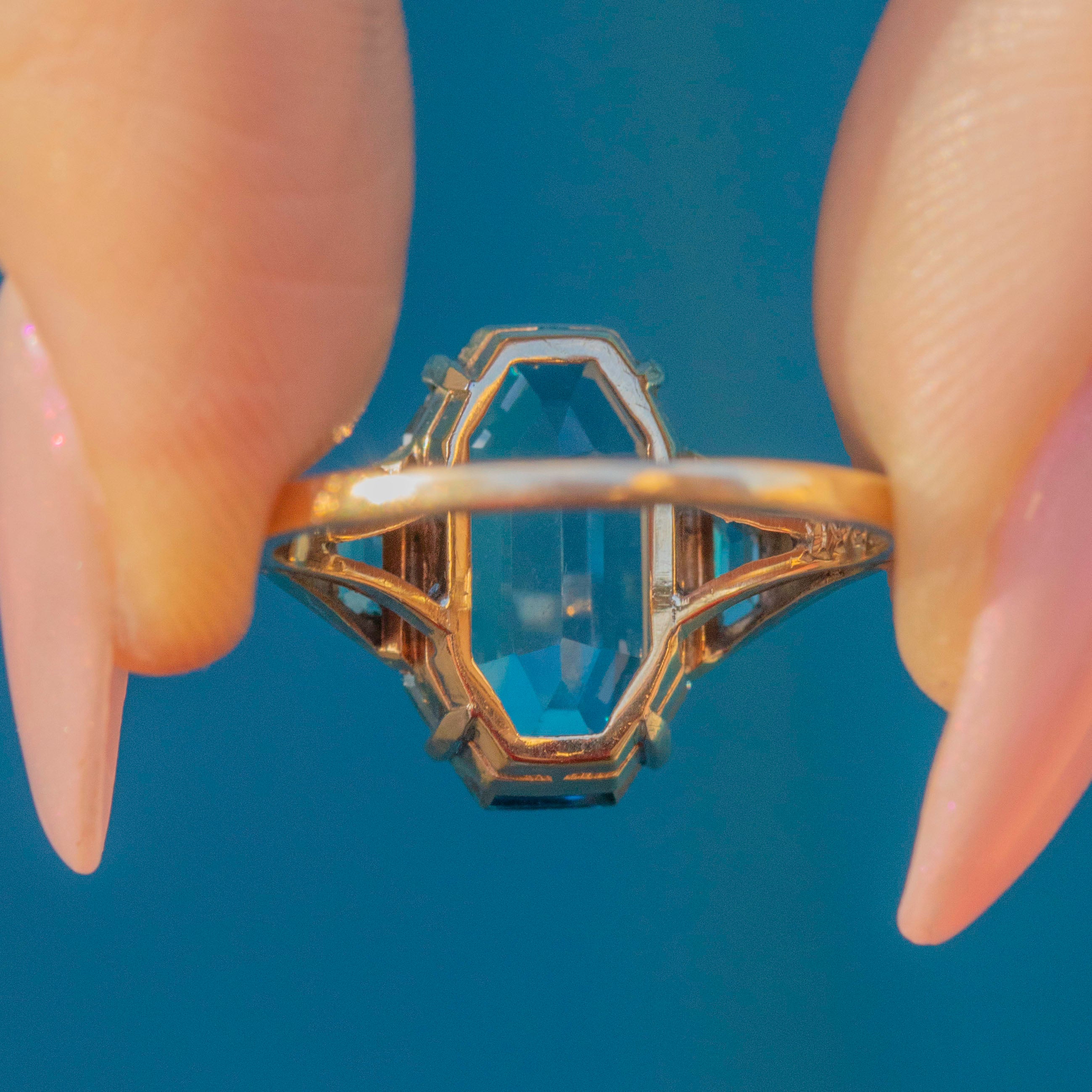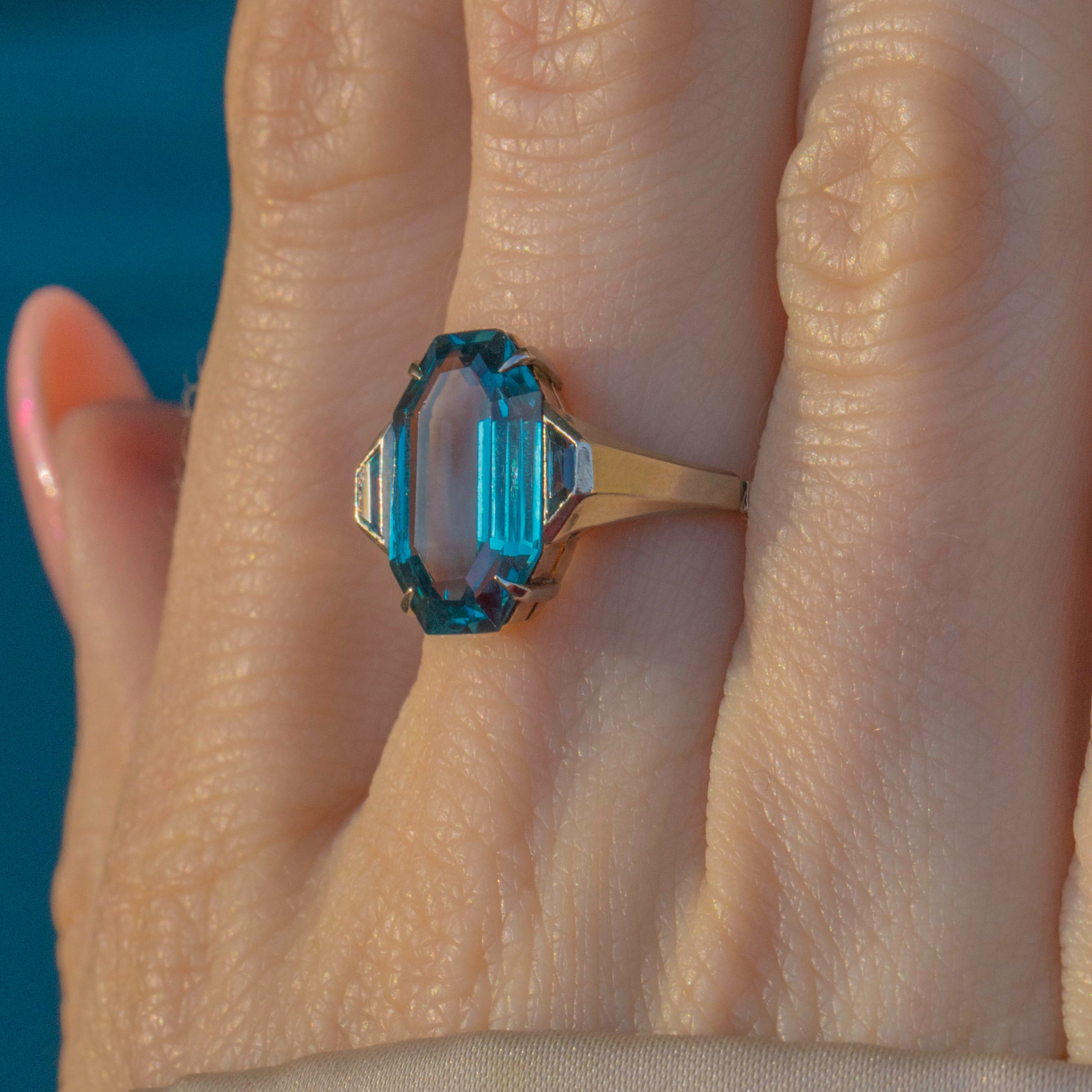 Art Deco 9ct Gold Blue Topaz Ring, 3.75ct