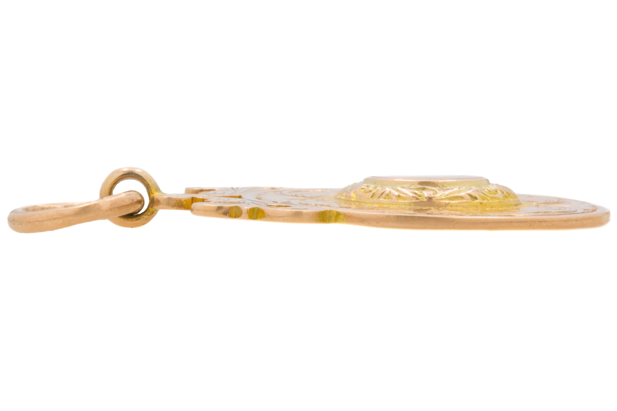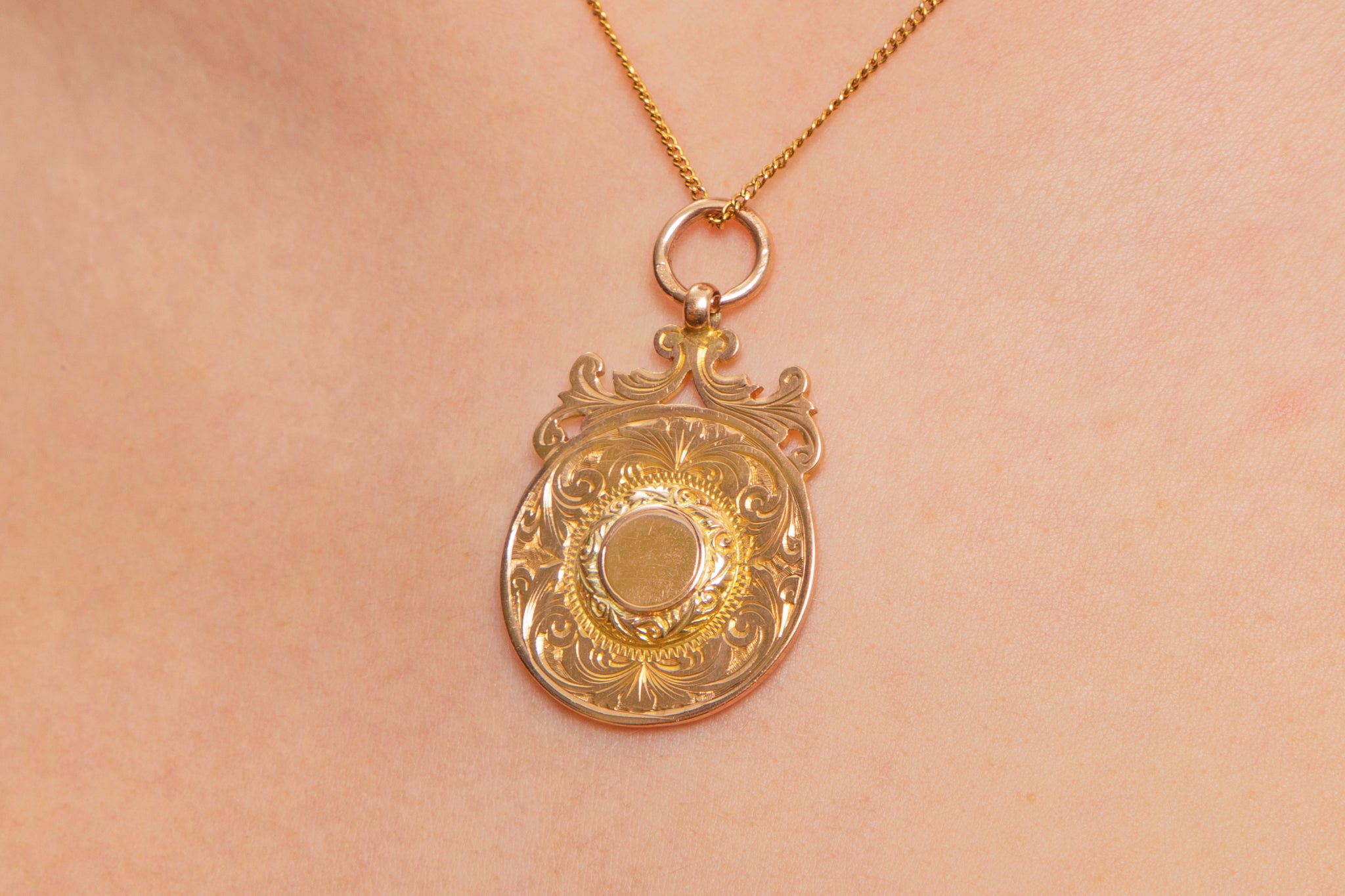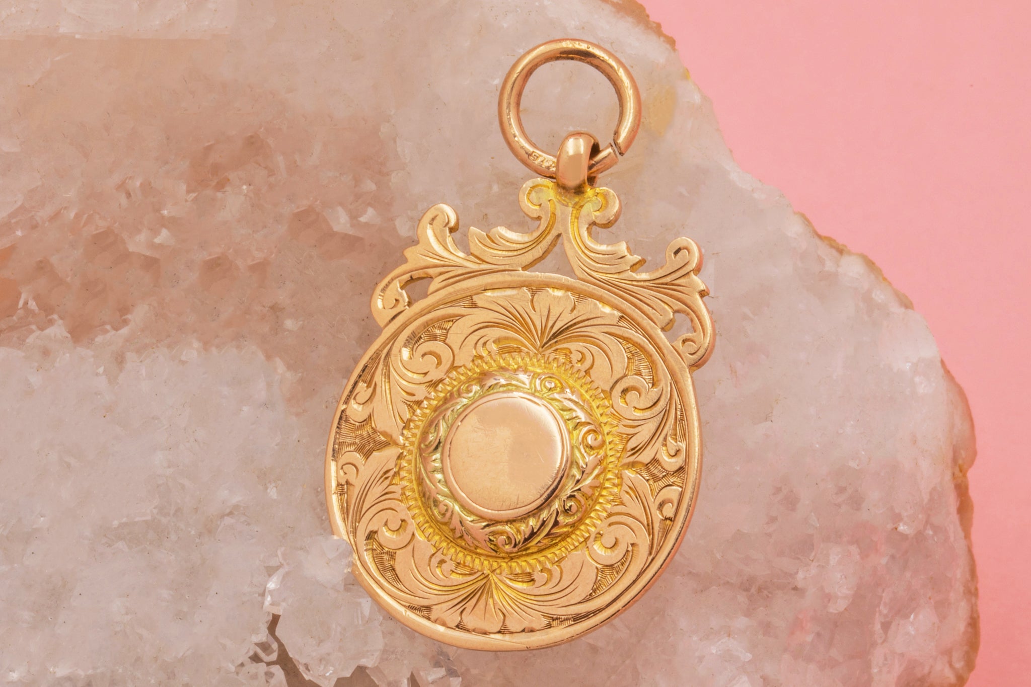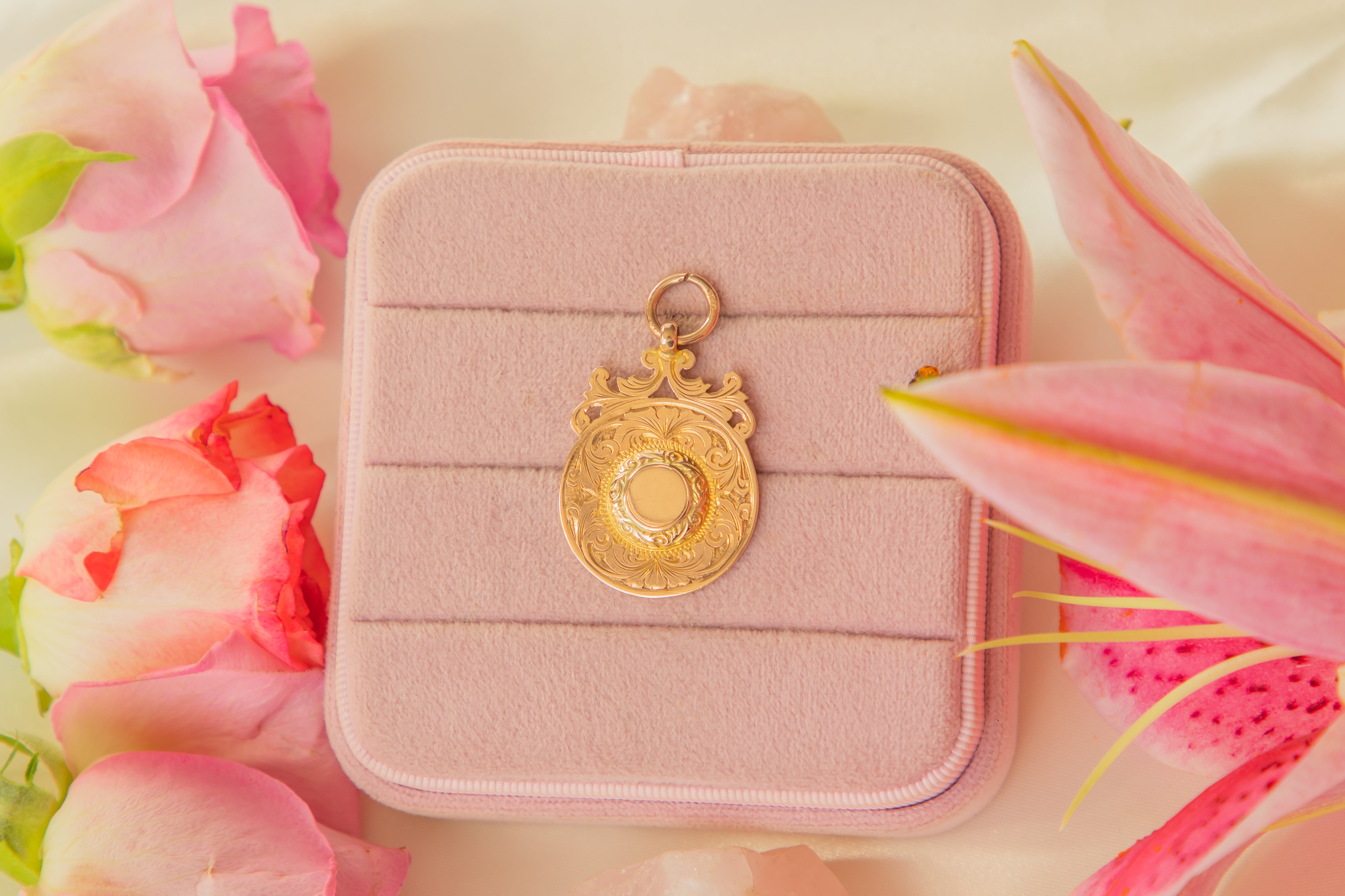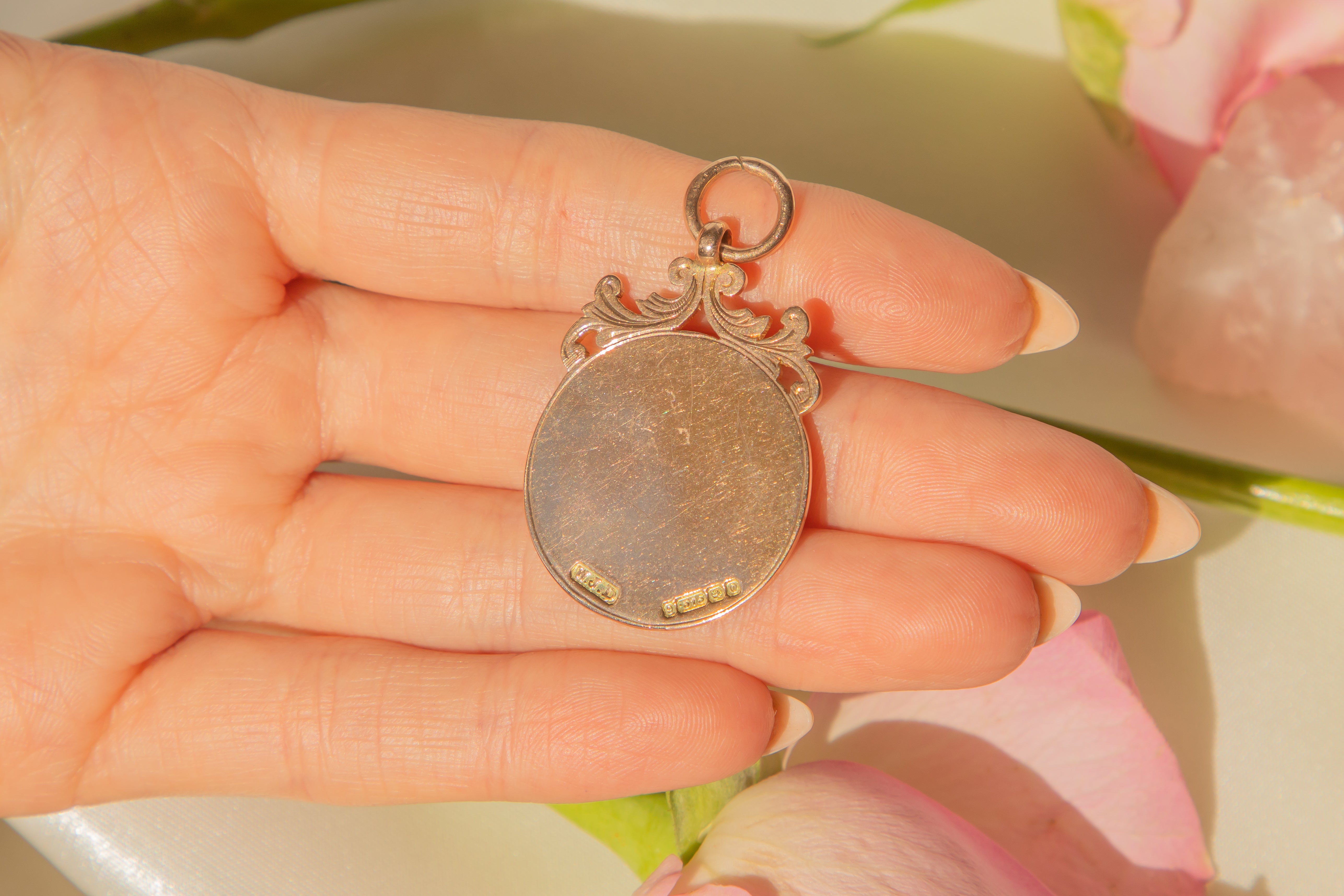 アールデコ 9ct ゴールド 彫刻メダル ペンダント