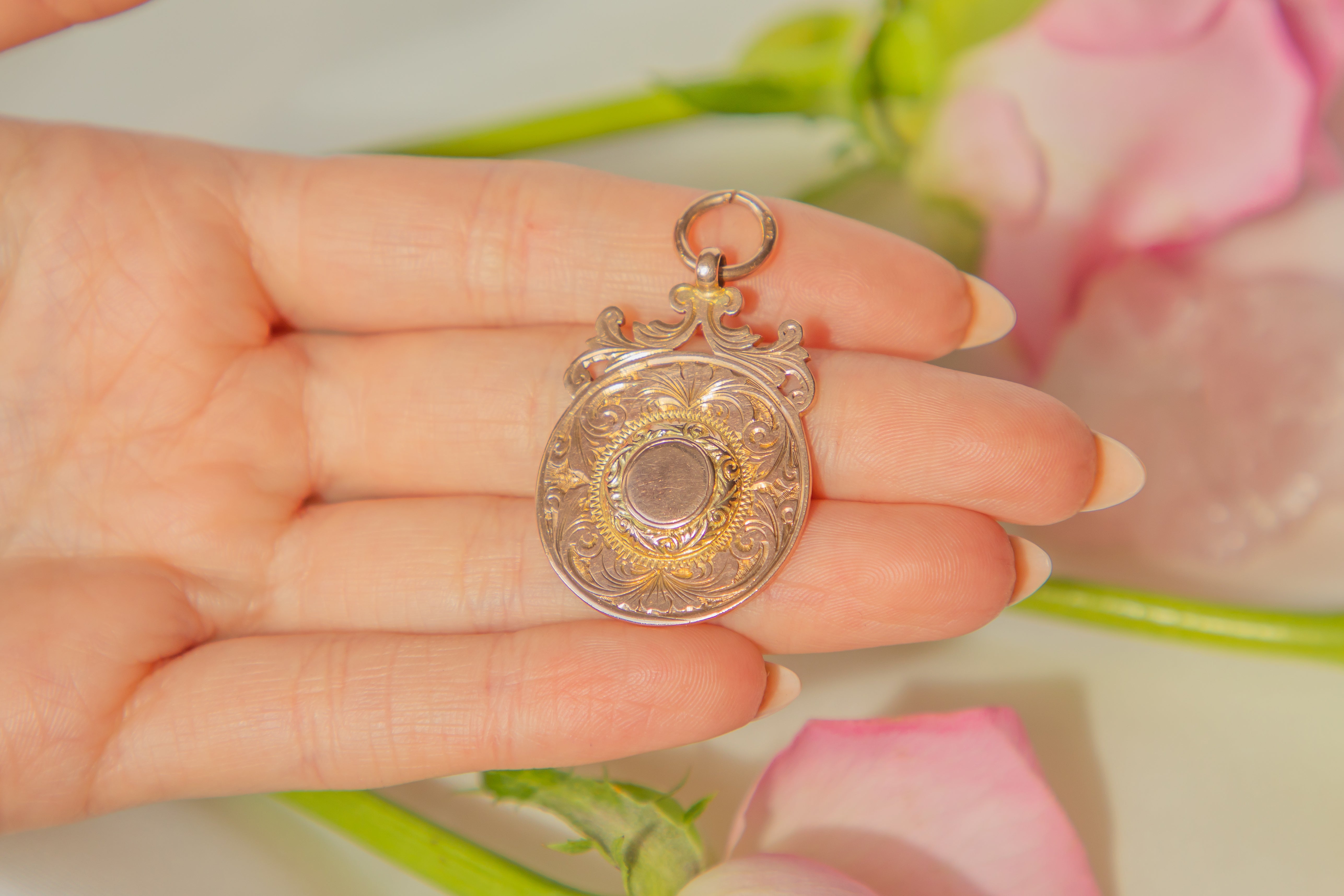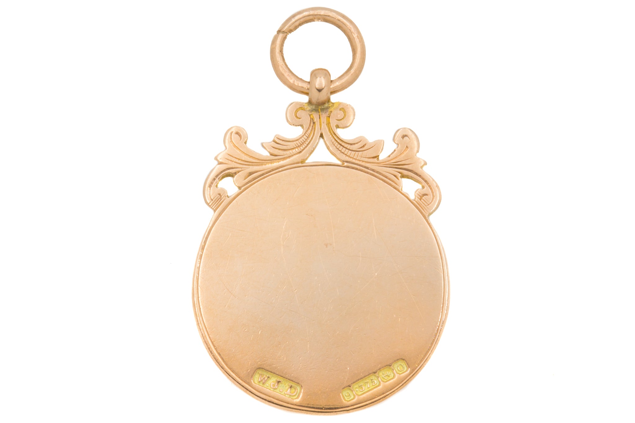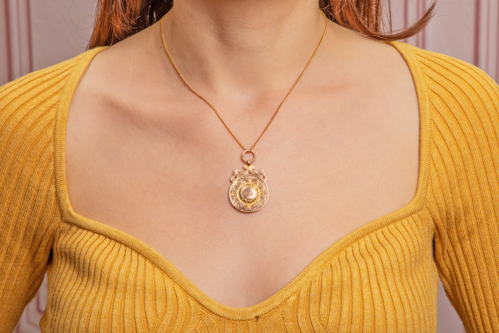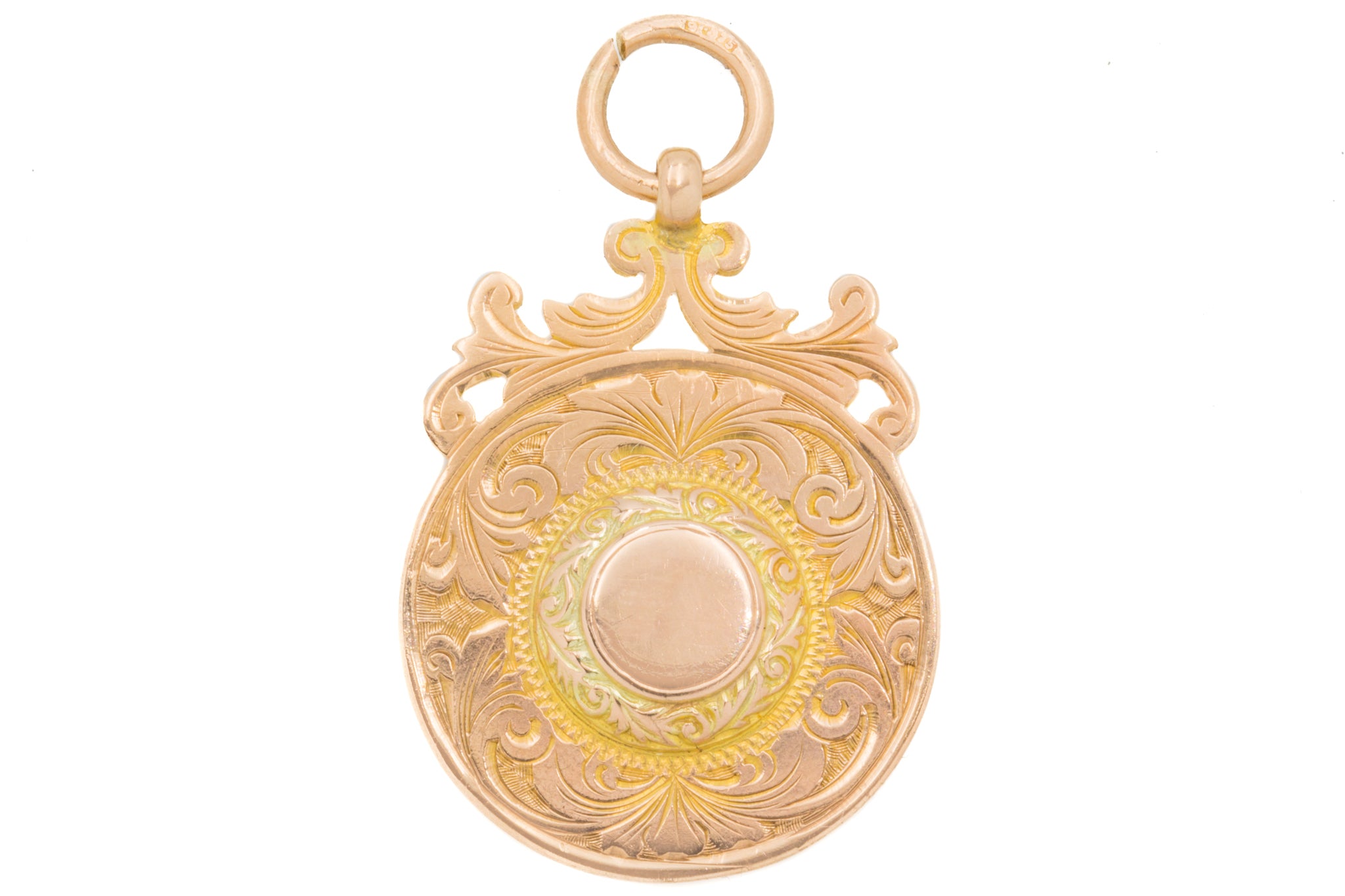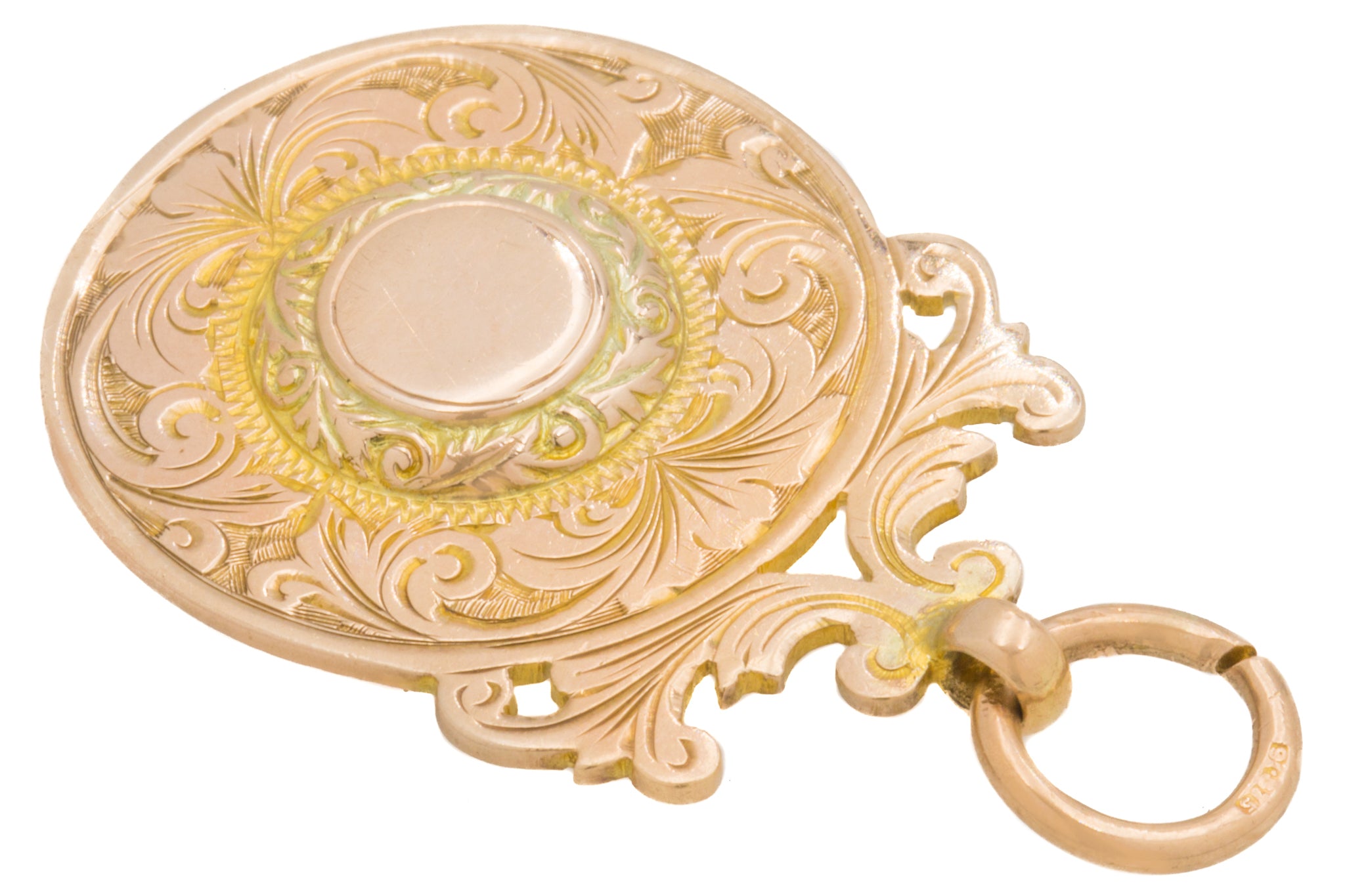 アールデコ 9ct ゴールド 彫刻メダル ペンダント