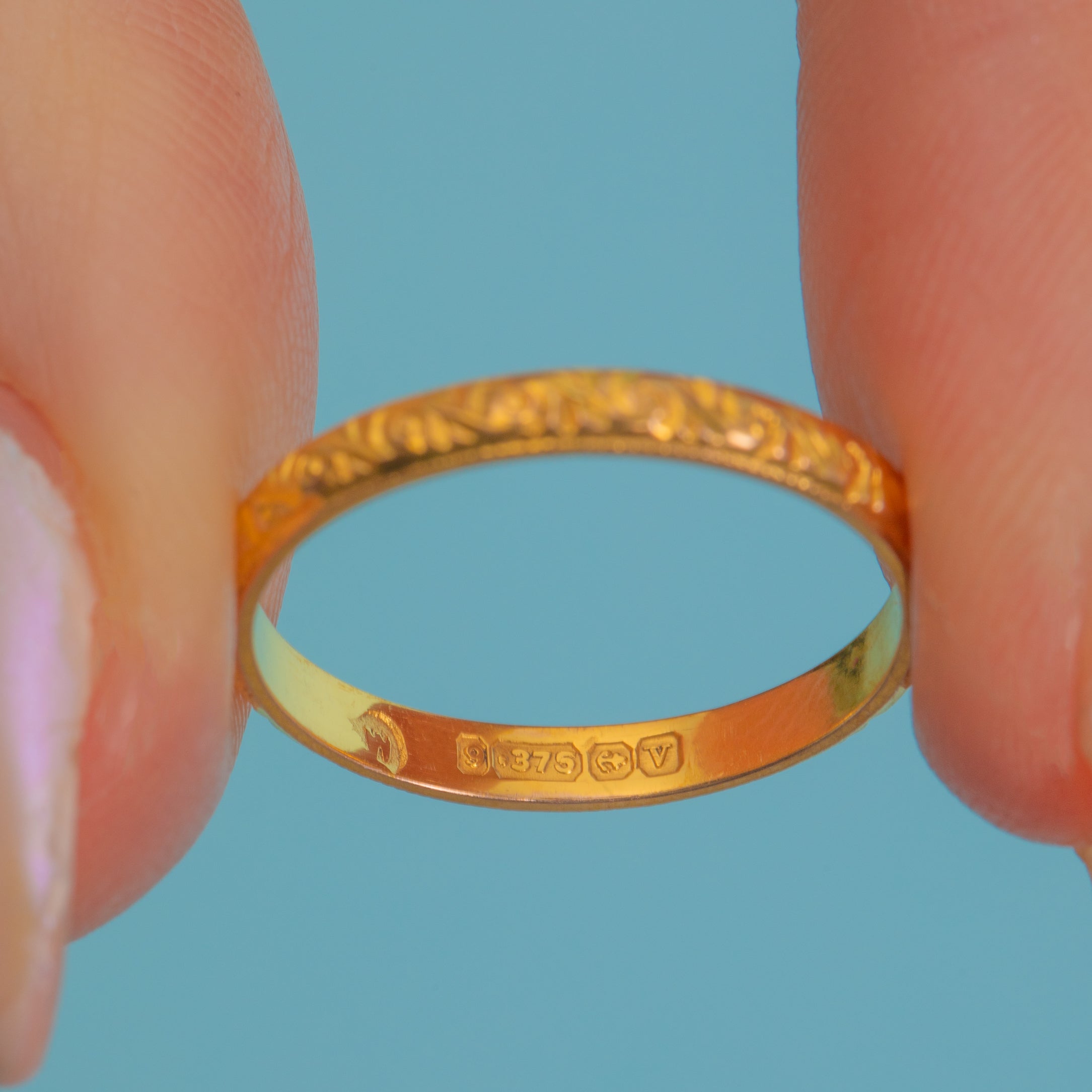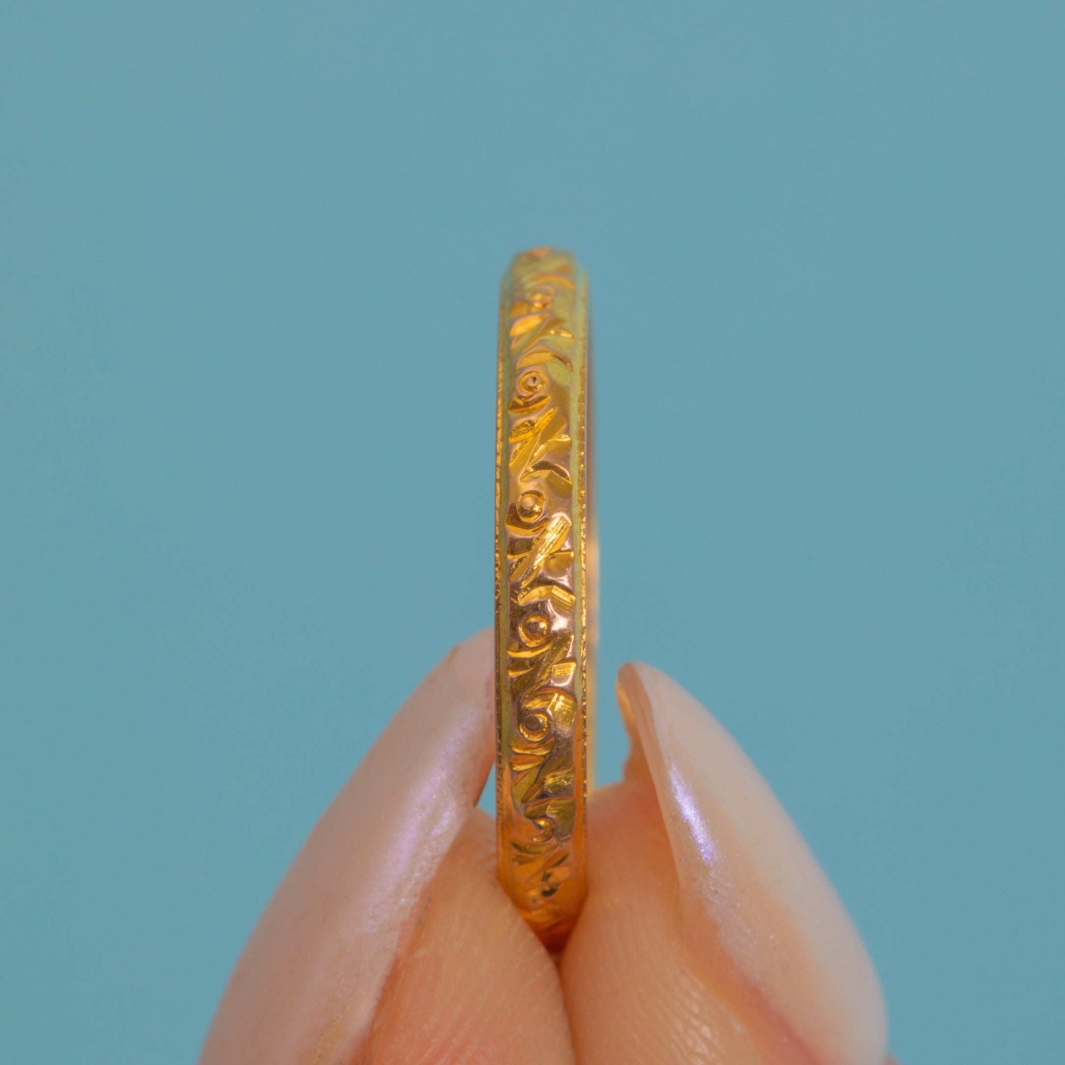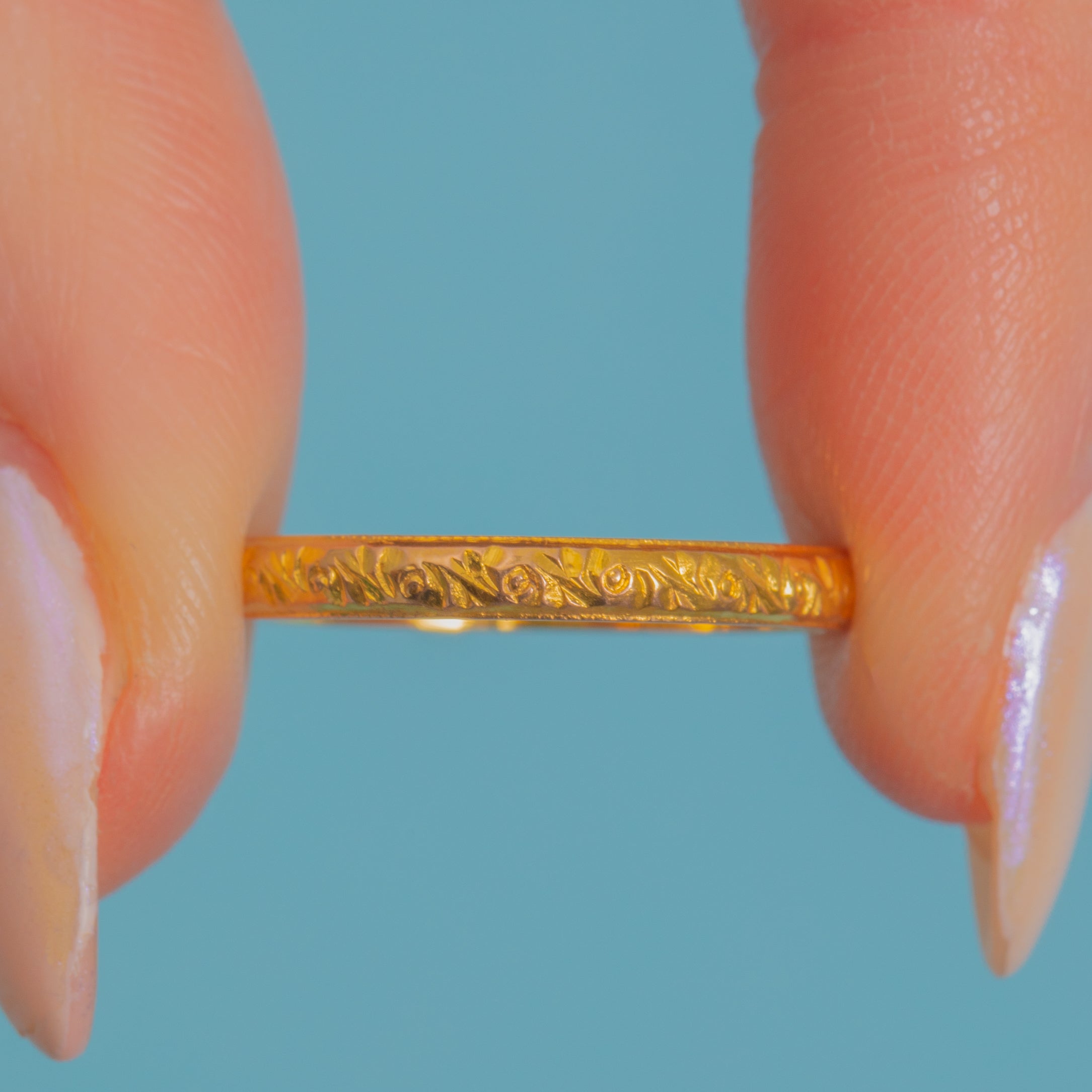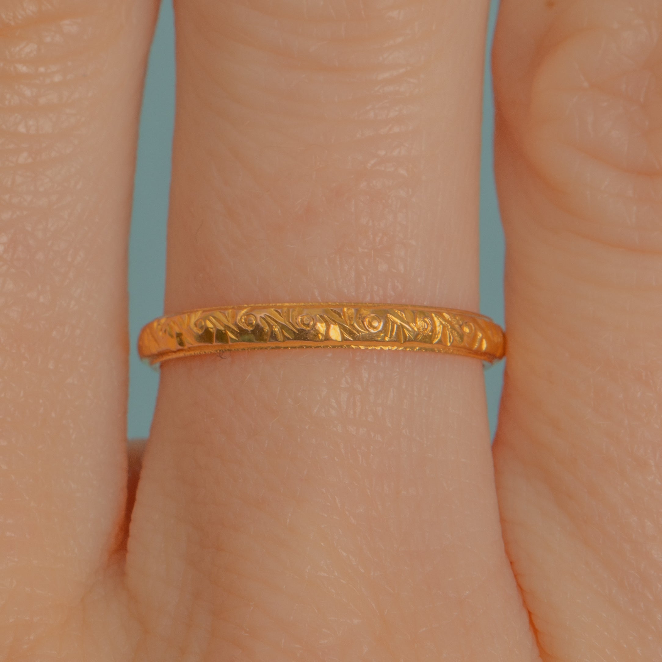 アールデコ 9ct ゴールド 彫刻入り スタッキングリング、約1920年頃