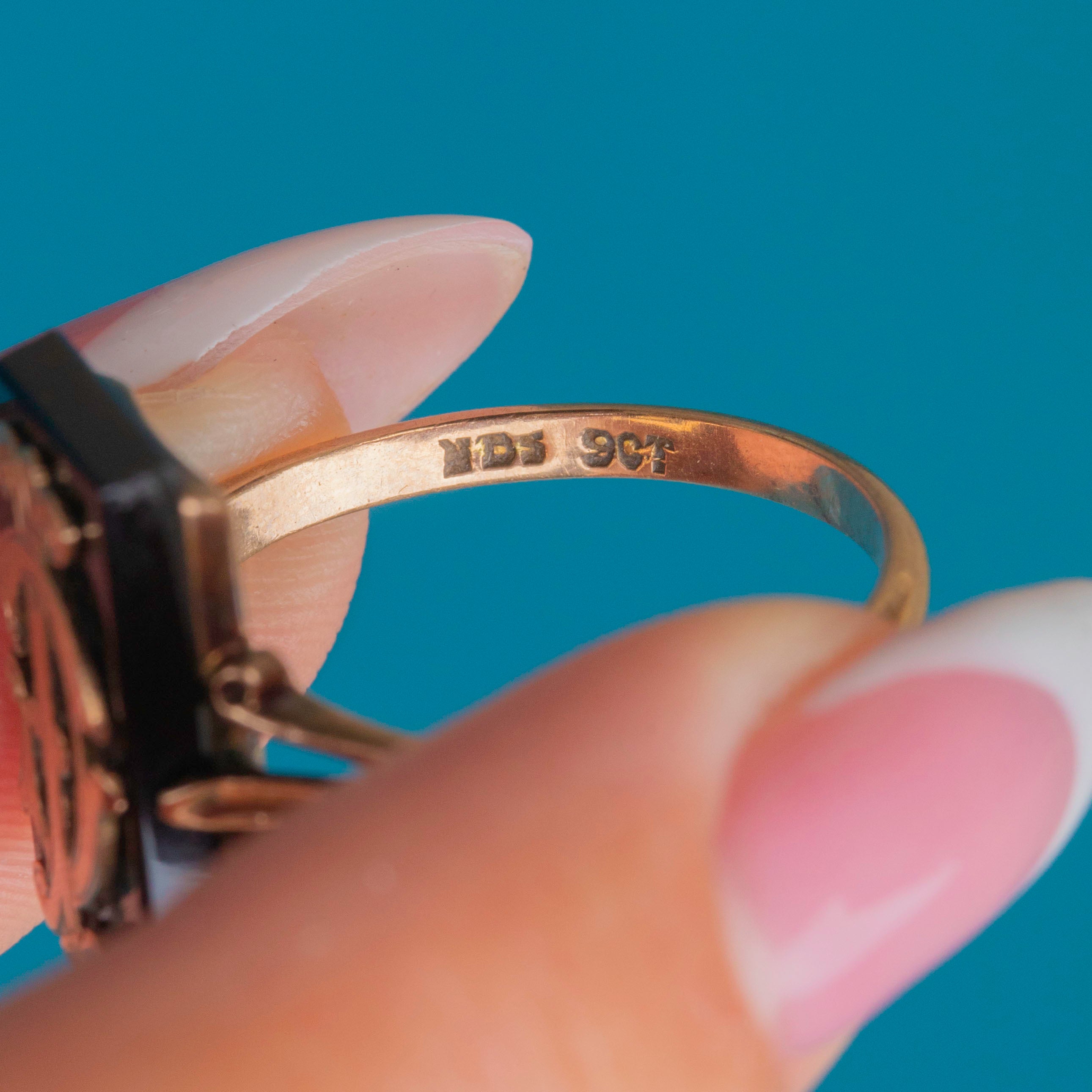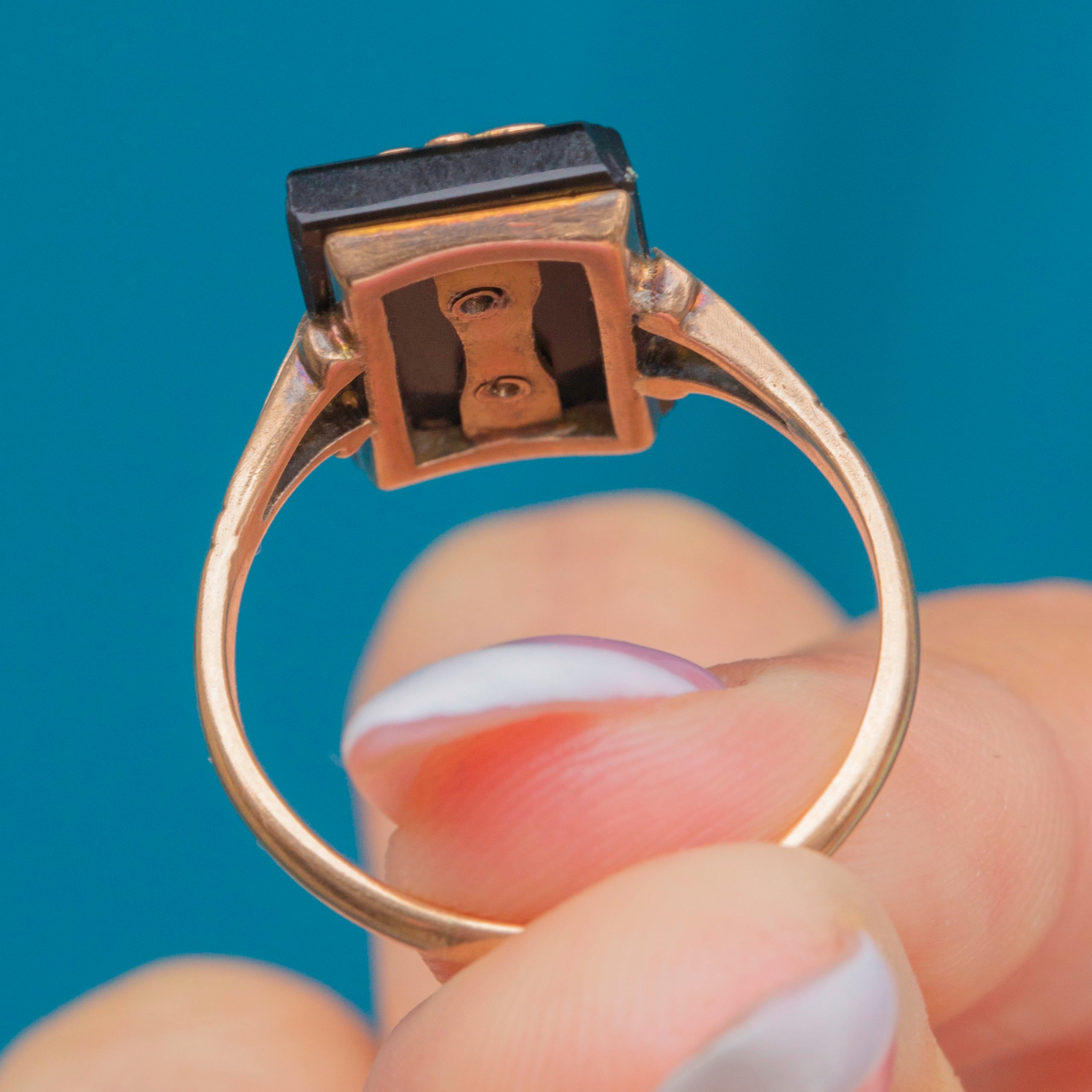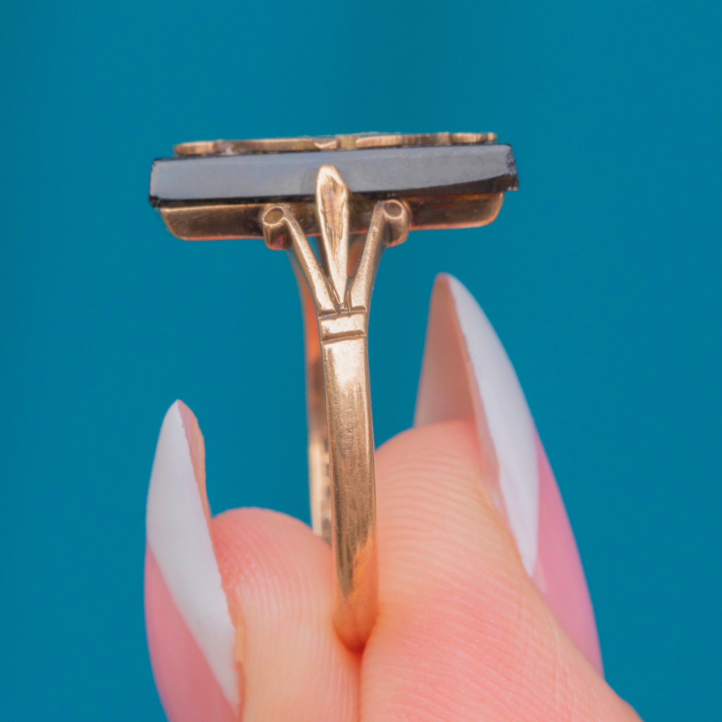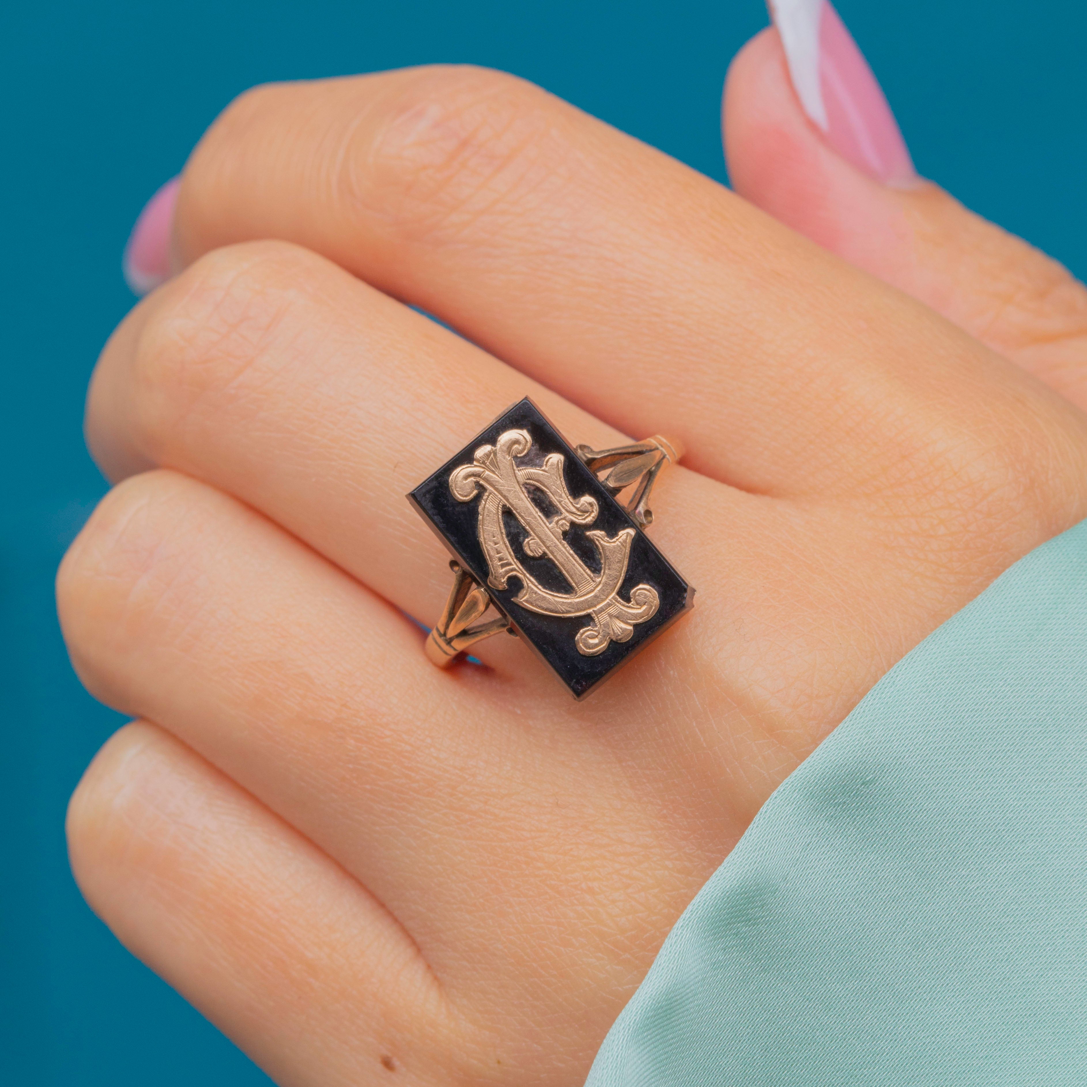 Art Deco 9ct Gold Onyx Initial C Panel Ring