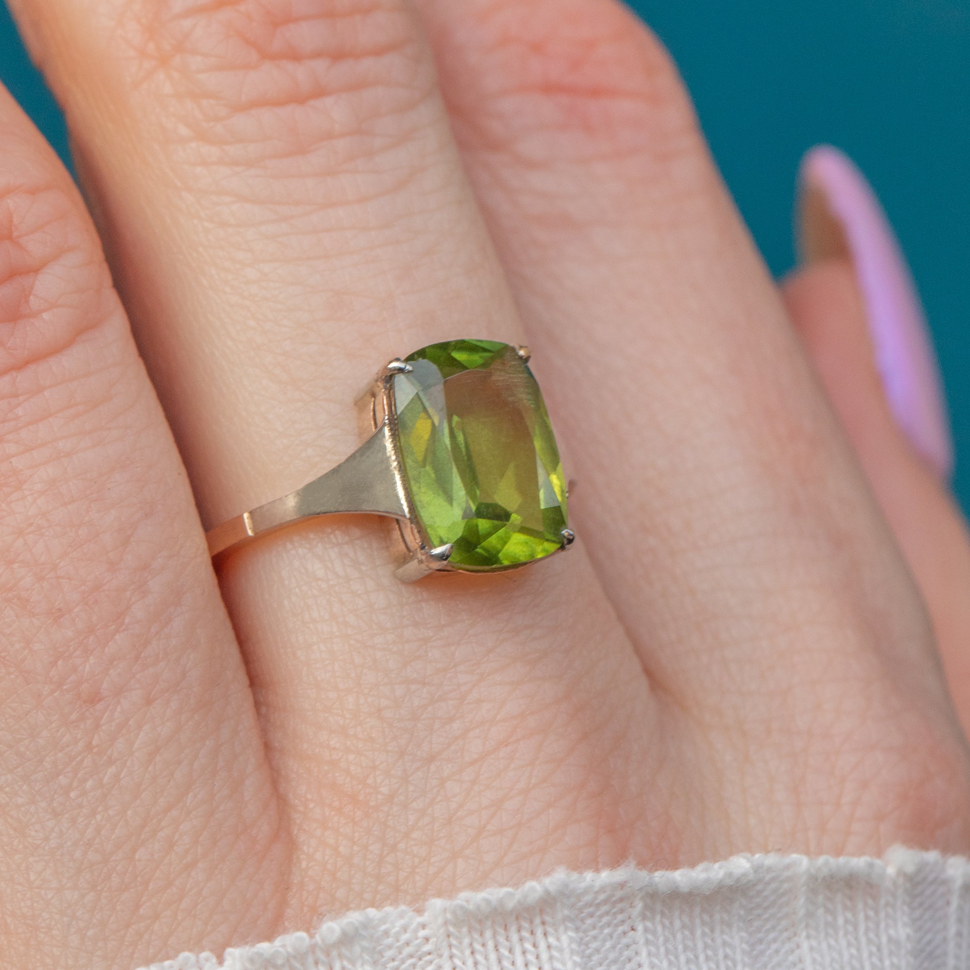 Art Deco 9ct Gold Peridot Ring, 5.45ct