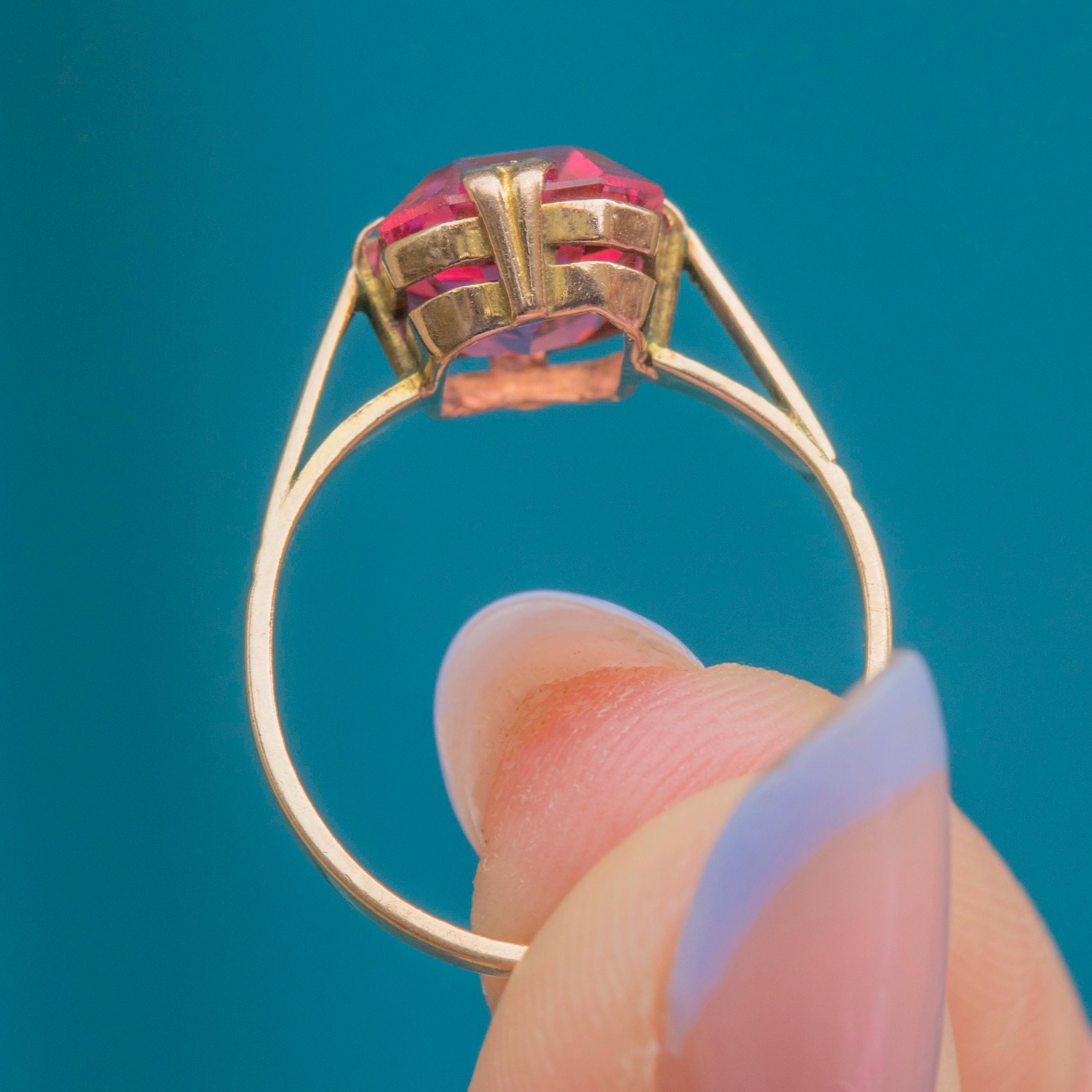 Bright, vivid and rosy, this antique 9ct Gold Ruby Paste ring will look fabulous on your finger!