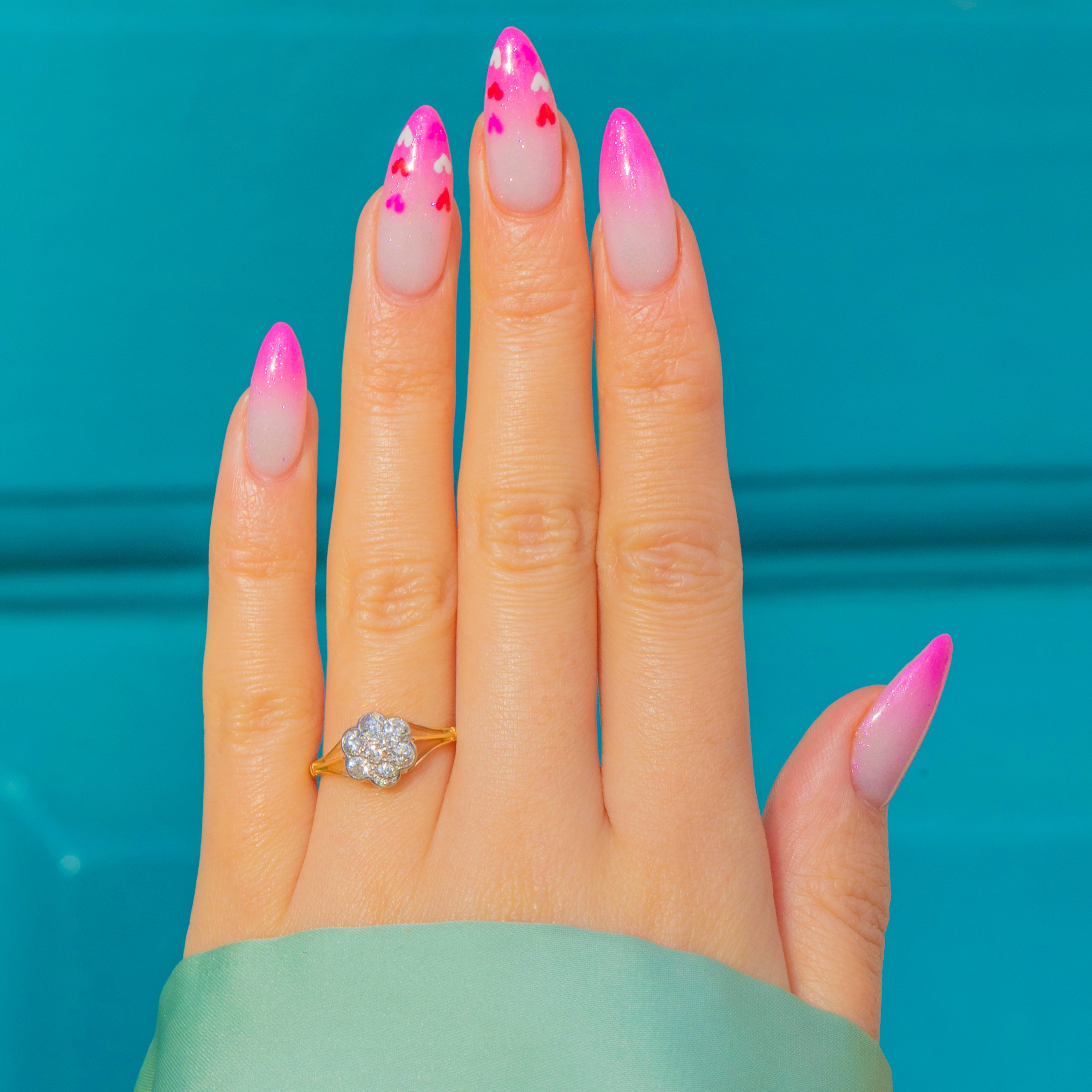 Beautifully proportioned and wonderfully wearable, the cluster glitters with approximately 0.60ct of Diamonds, each bright and well-matched. Its slender profile and crisp detailing capture the effortless romance of the era in a petite, refined silhouette.