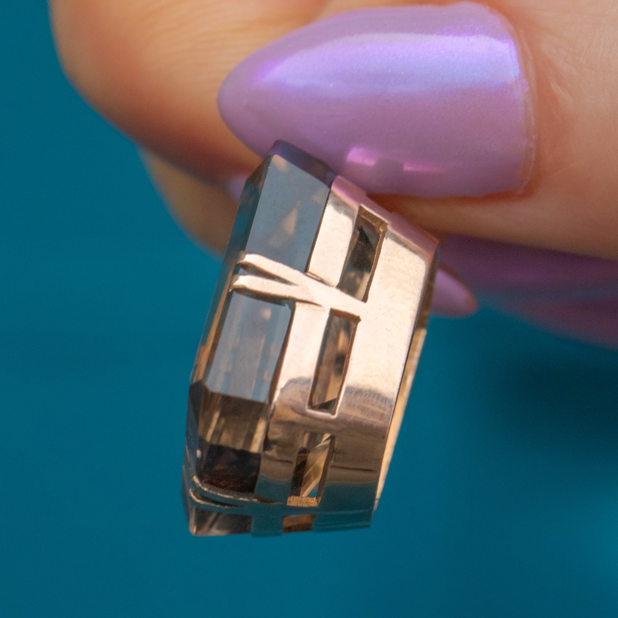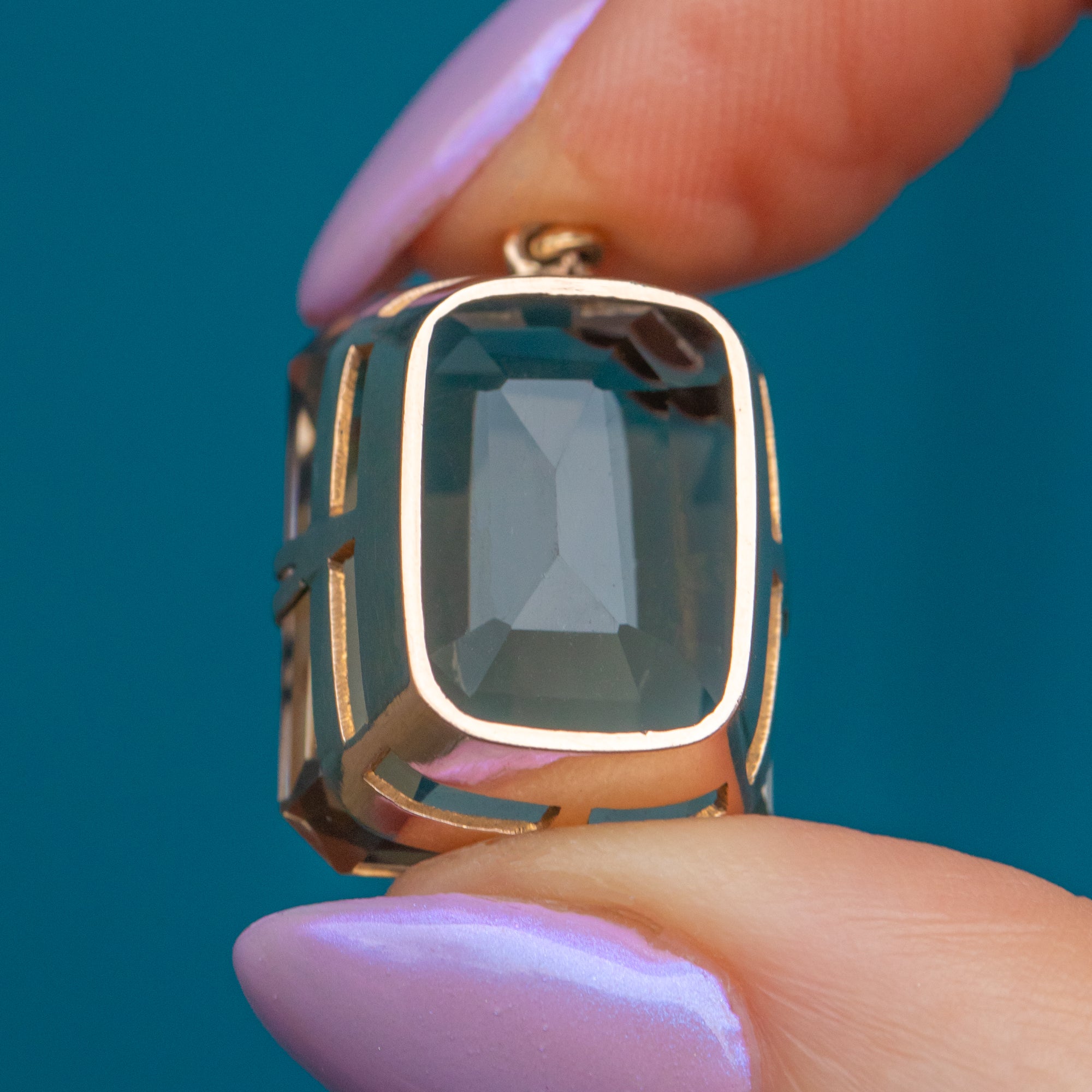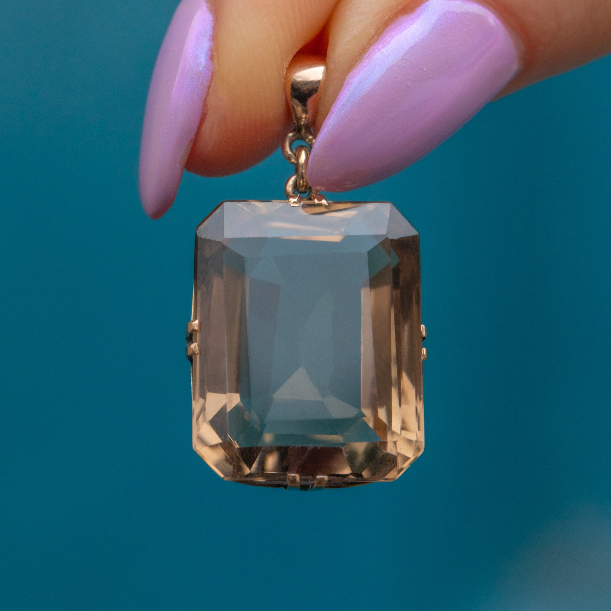 The sleek emerald-cut of the Smokey Quartz marries perfectly with her stylistic double claw settings, crafted from buttery 9ct Gold. This showstopping Art Deco pendant is the perfect standalone piece!