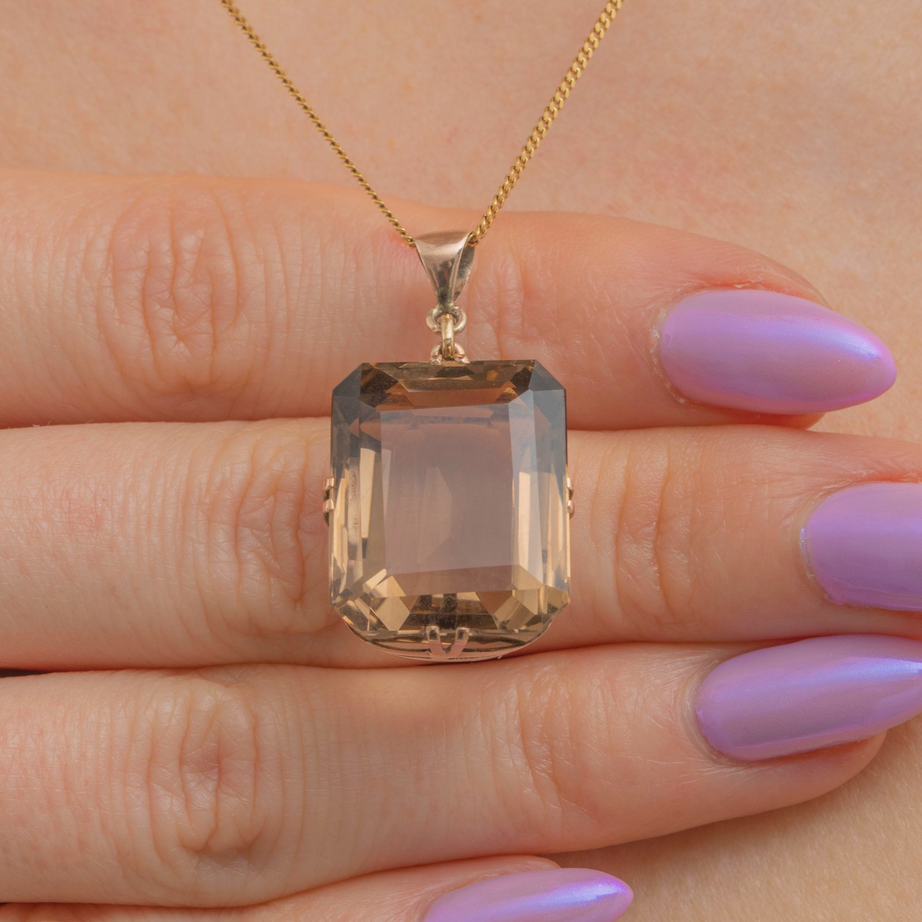 Art Deco 9ct Gold Smokey Quartz Pendant, 30.00ct