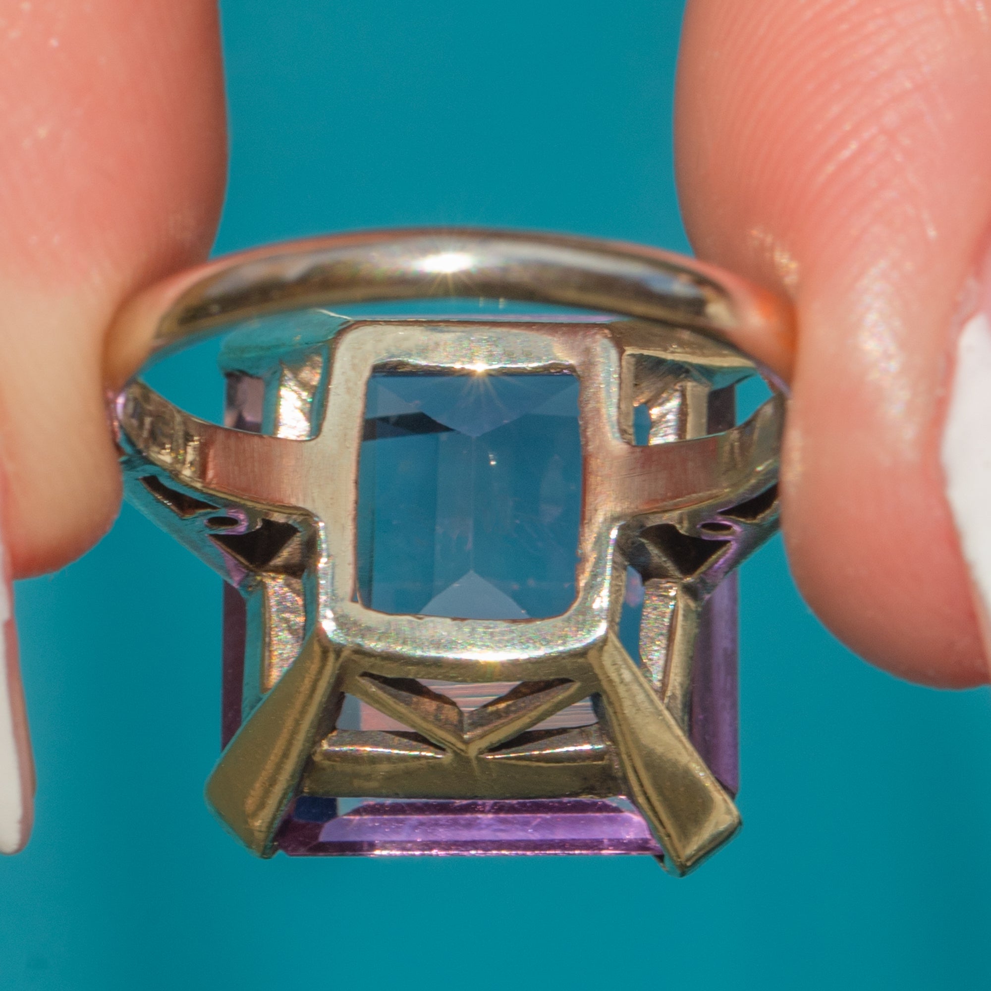 Art Deco 9ct White Gold Emerald-Cut Amethyst Cocktail Ring