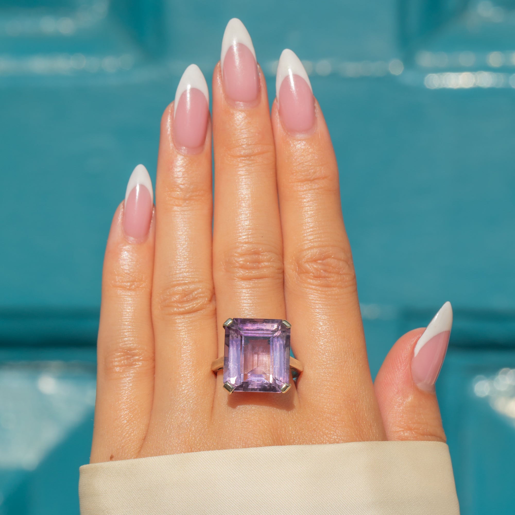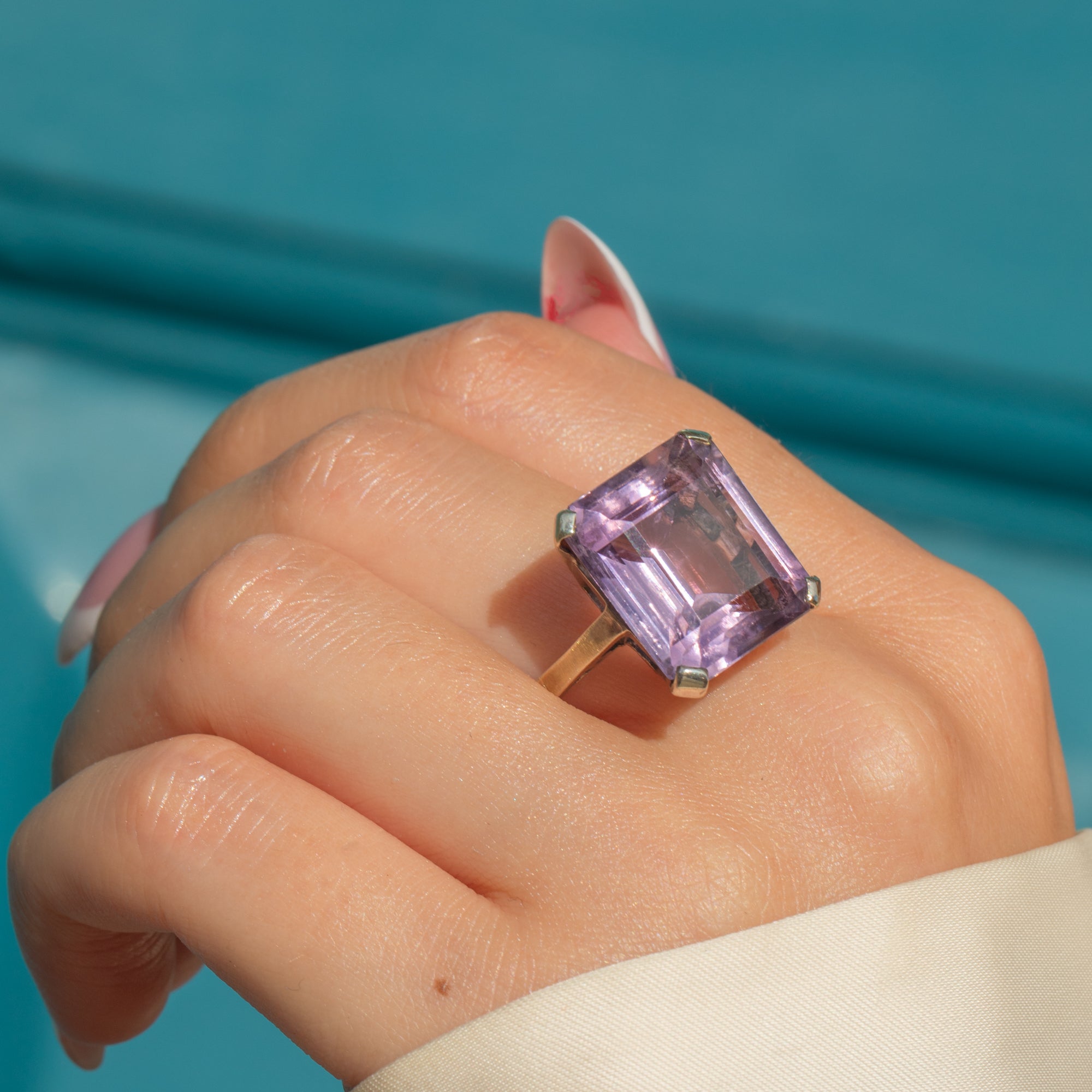 True to the glamour of the Art Deco era, the ring’s architectural simplicity allows the gemstone to take centre stage, creating a statement piece that’s both elegant and impactful. A fabulous choice for evening wear or as a dramatic daytime accessory.