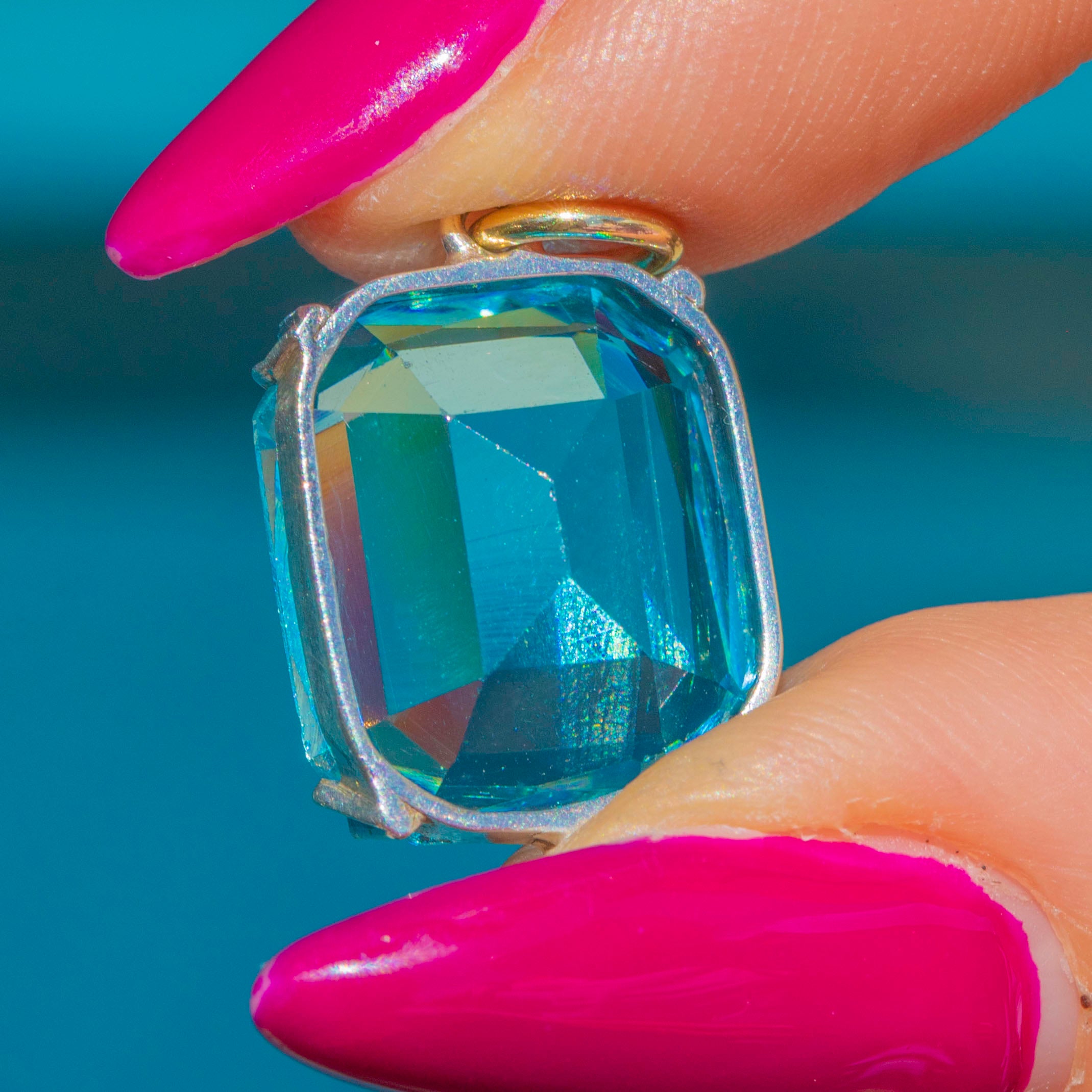 Add a refreshing pop of colour to your antique jewellery collection with this Art Deco blue Paste pendant! Vivacious sparkles emanate from the perfectly cut facets of her arctic blue Paste, creating an eye-catching display as they catch the light.