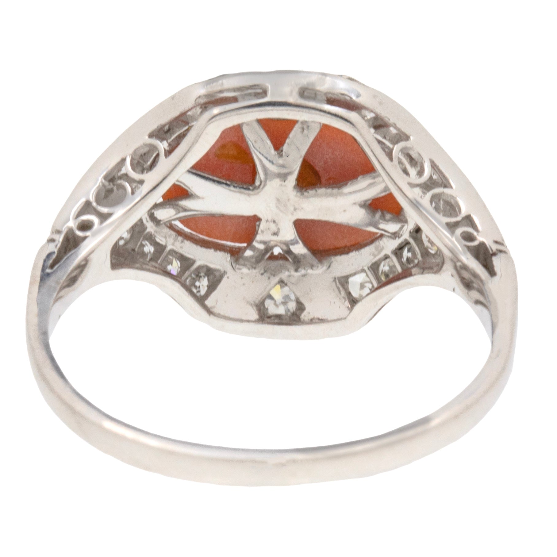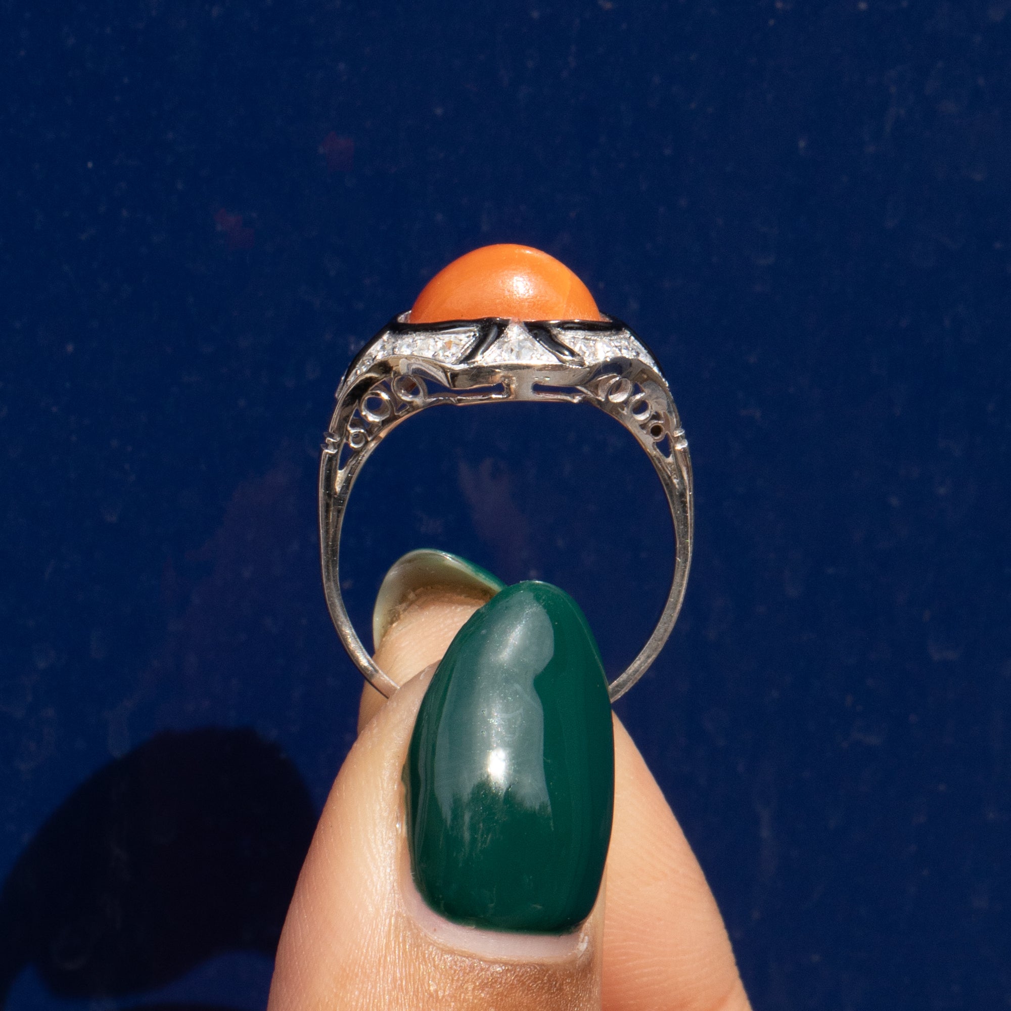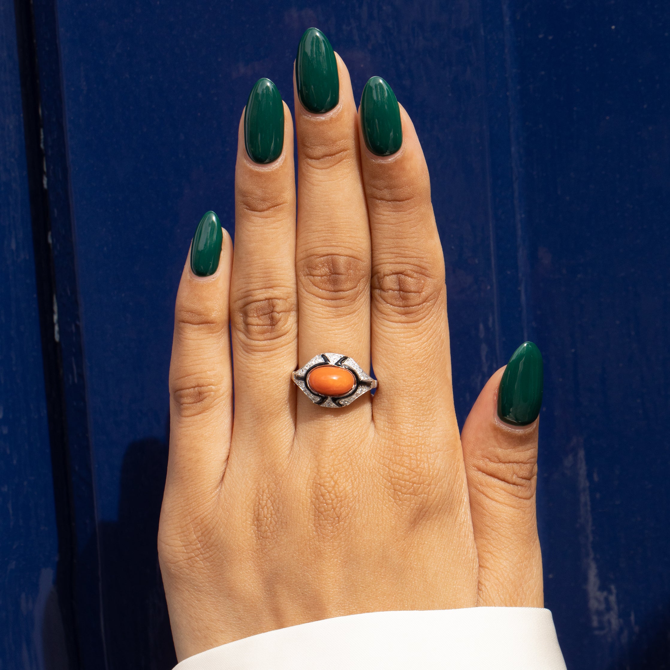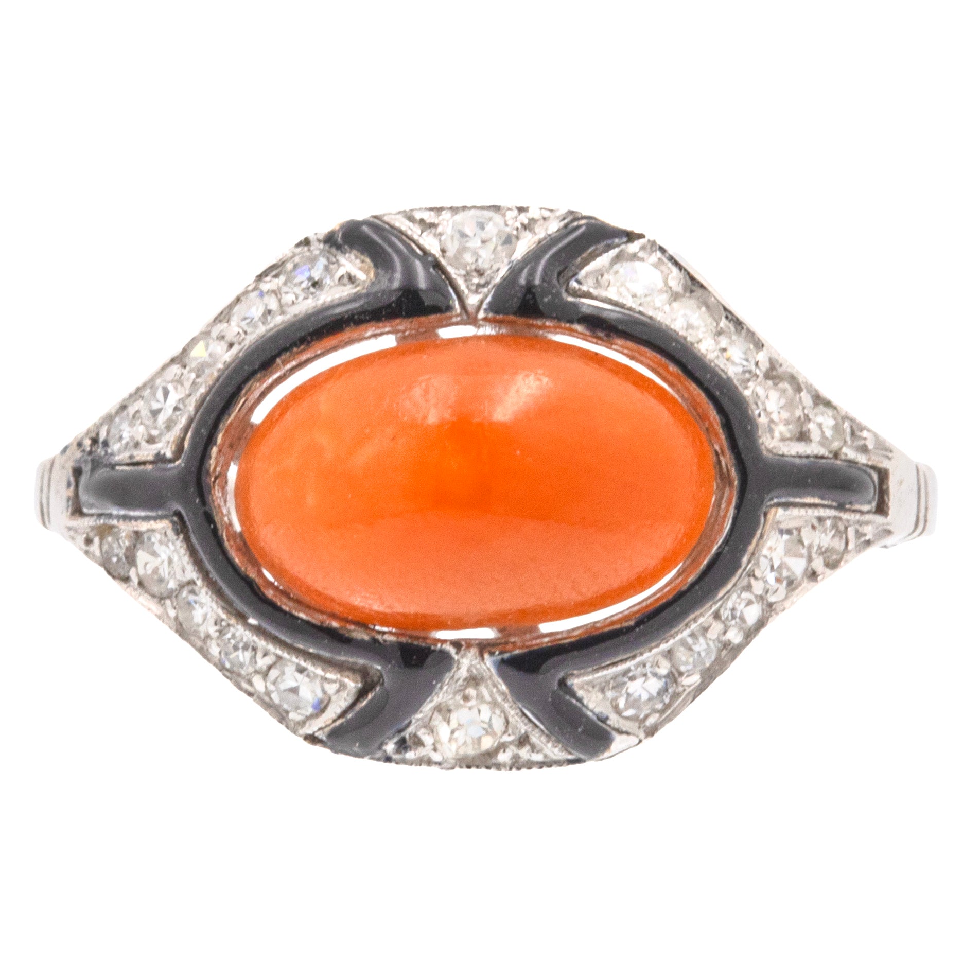 アールデコ コーラル&ブラックエナメル ダイヤモンドリング