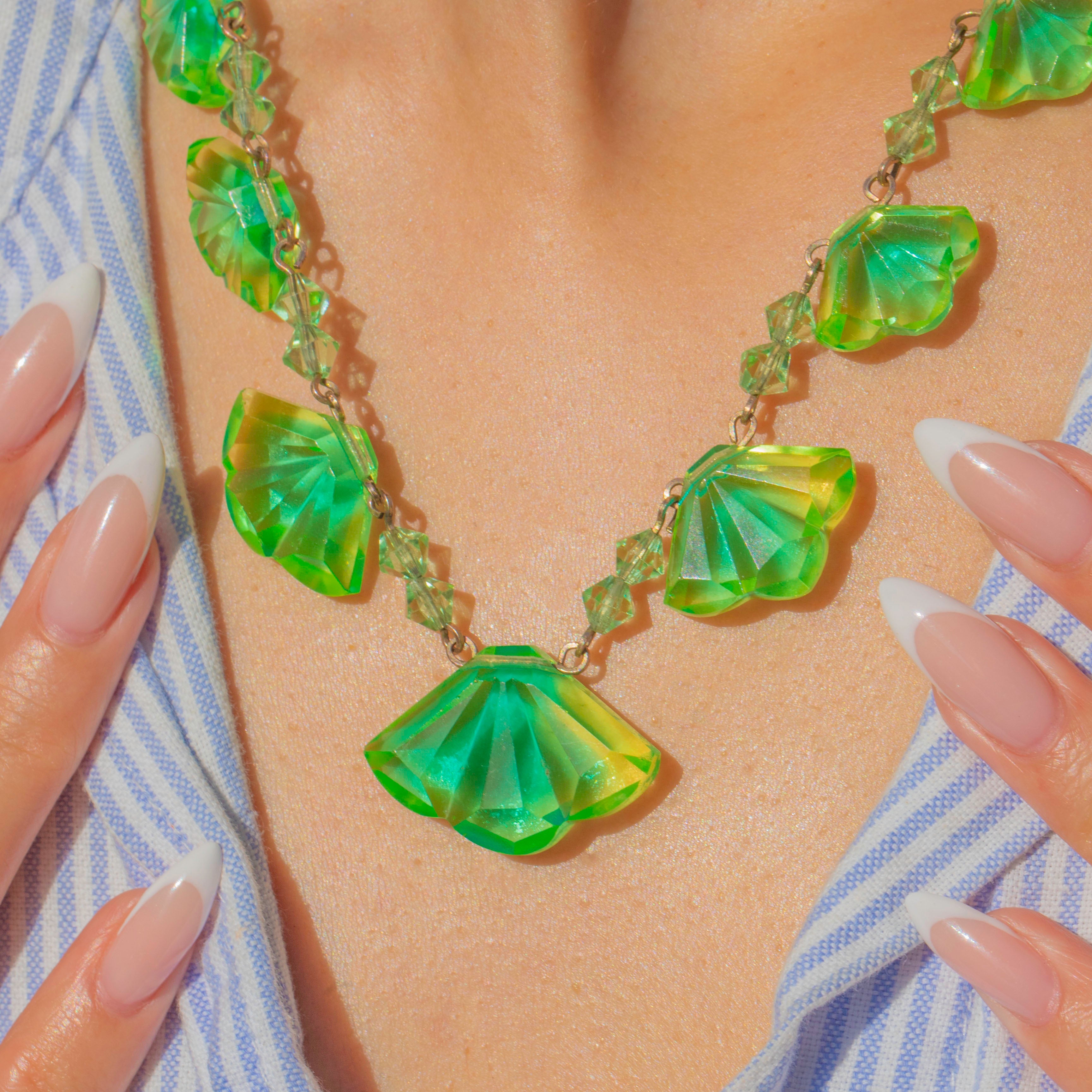 Art Deco Fan-Shaped Uranium Glass Necklace