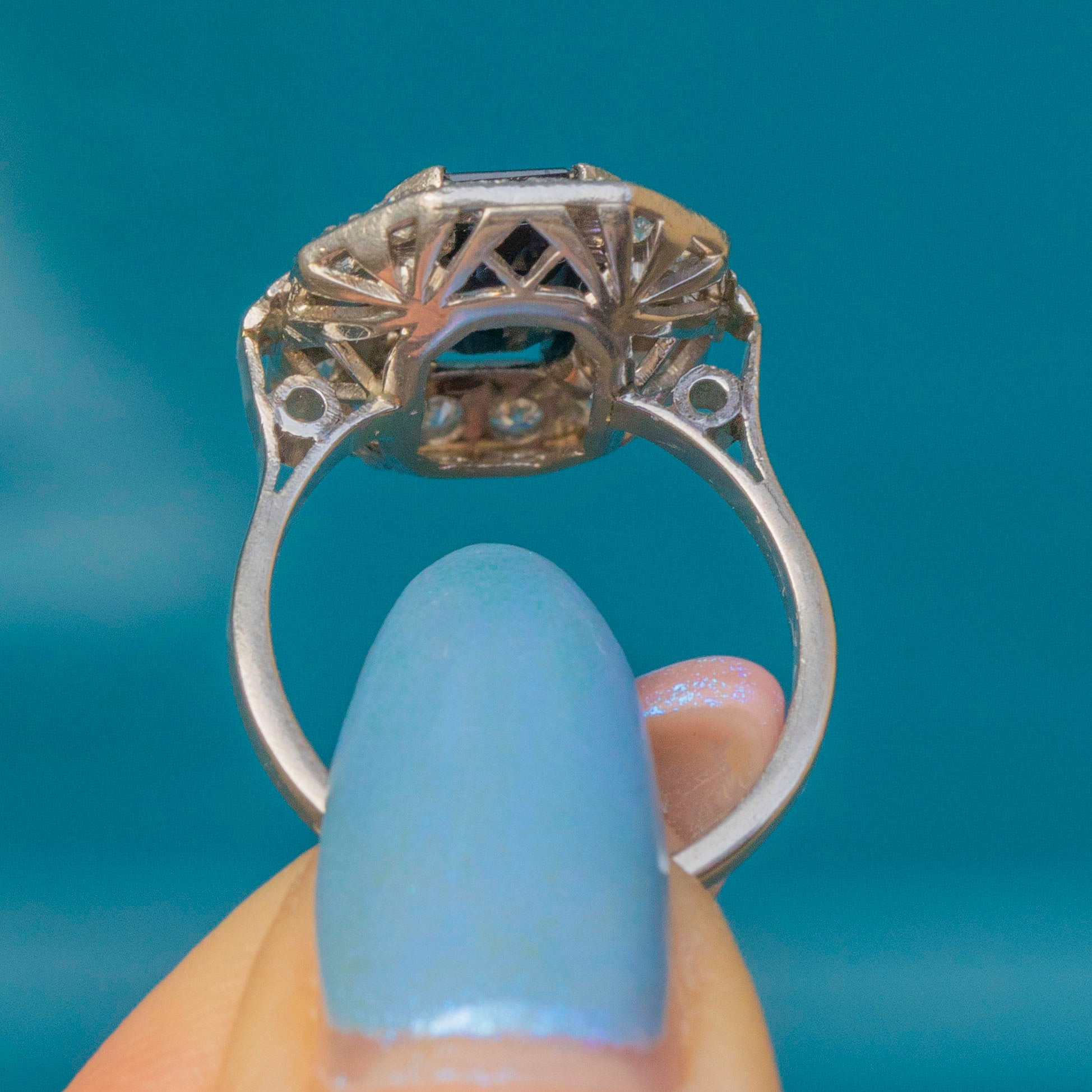 This Art Deco French natural Sapphire Diamond cluster ring is simply magnificent.